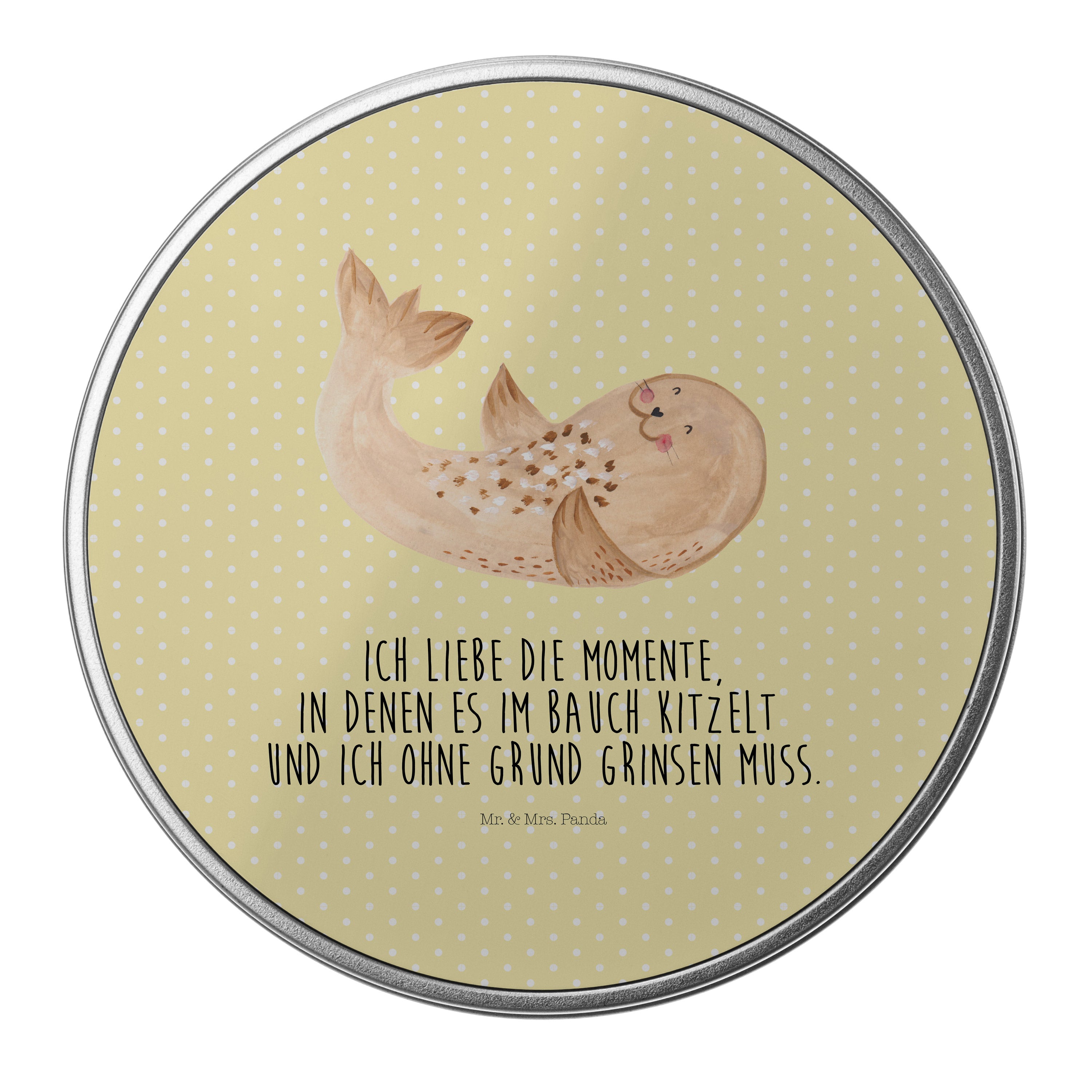 Blechdose rund Robbe liegend Metalldose, Keksdose, Dose, Vorratsdose, Geschenkbox, Tiermotive, Gute Laune, lustige Sprüche, Tiere, Robbe, Robben, Seehund, Strand, Meerestier, Ostsee, Nordsee, Lachen, Freude