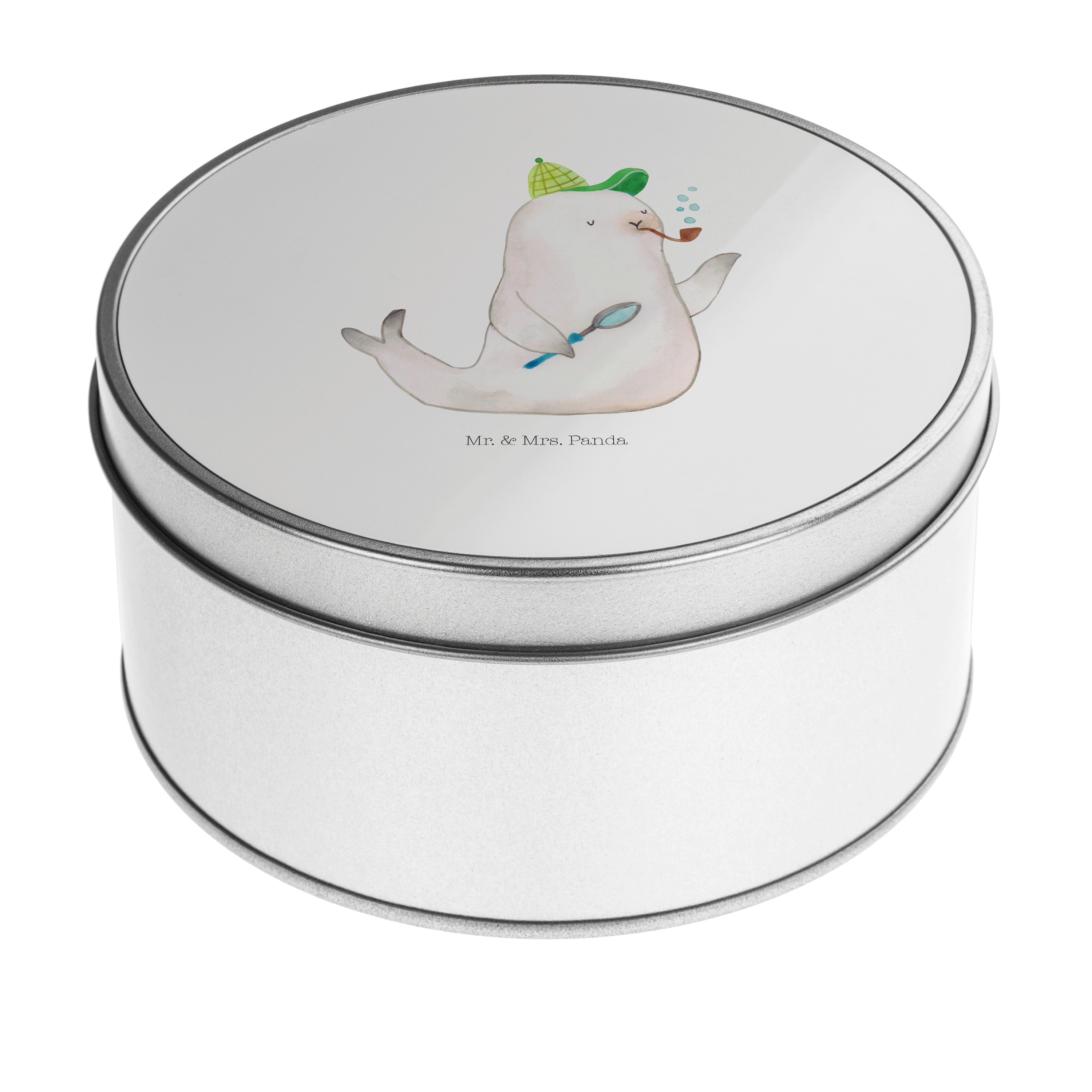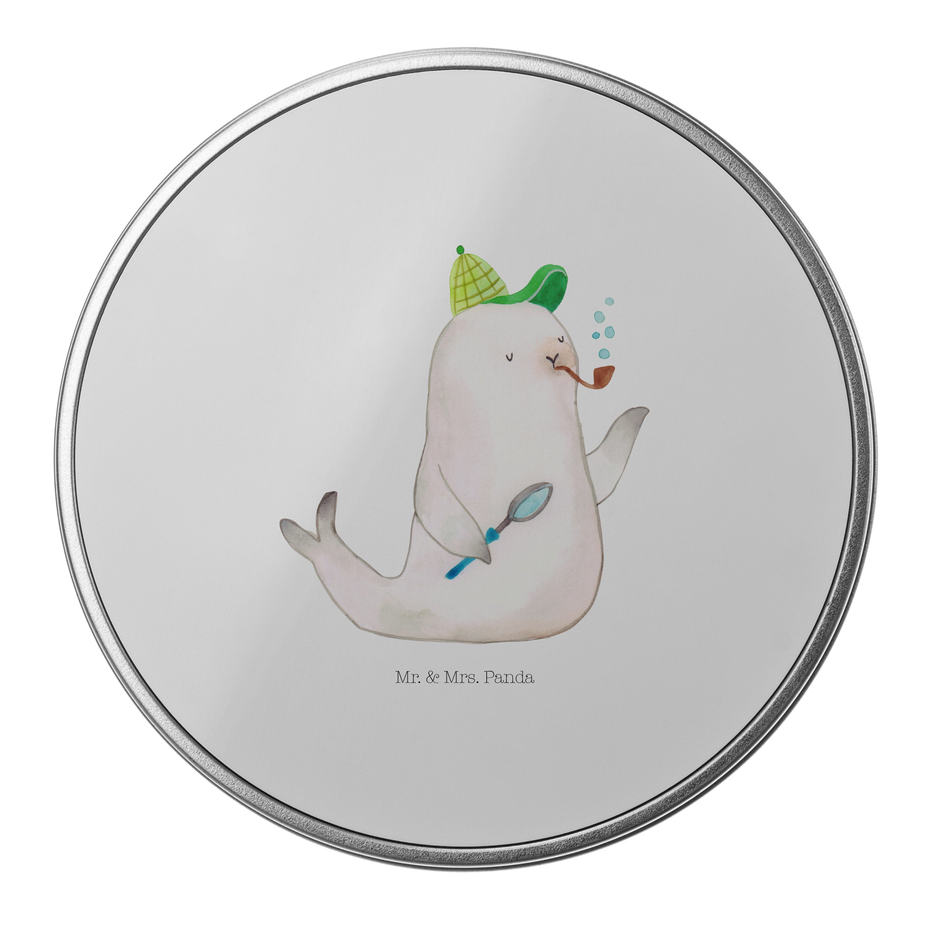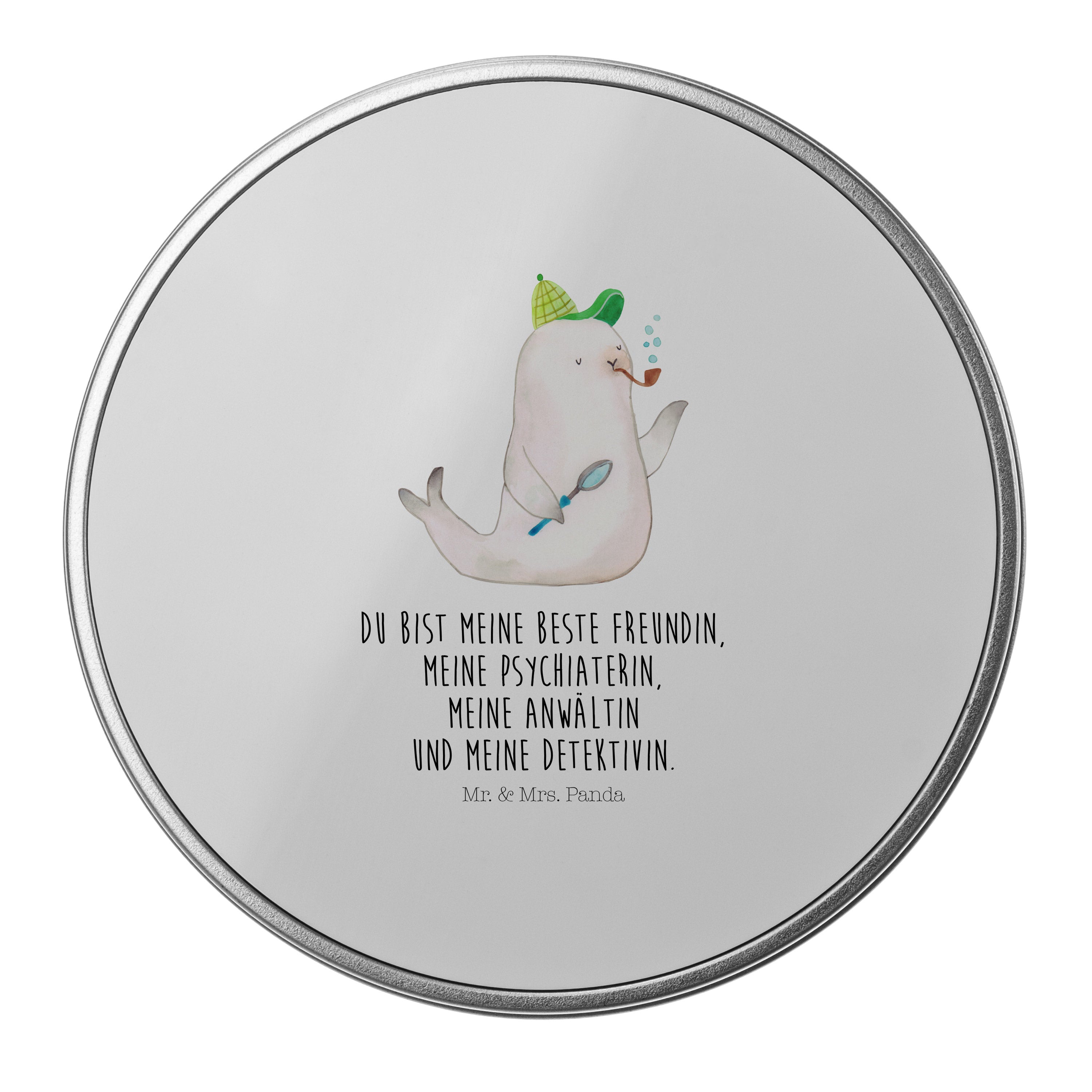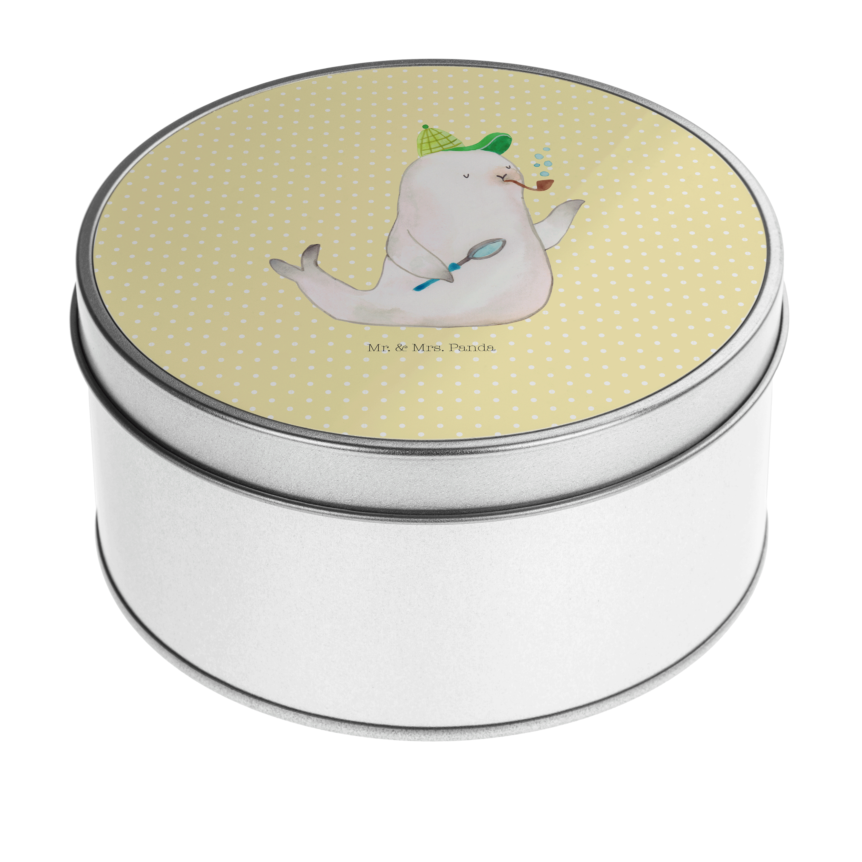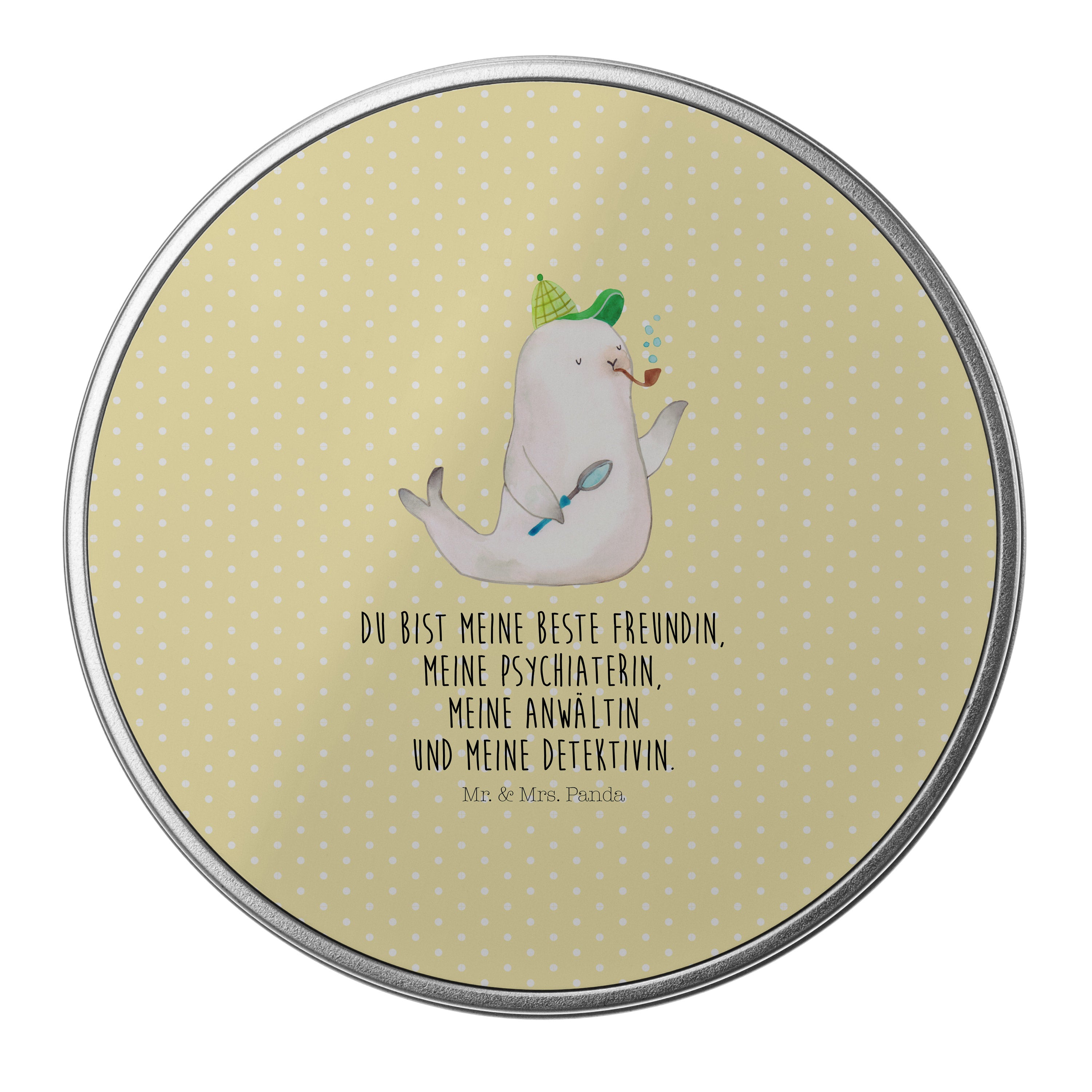 Blechdose rund Robbe Sherlock - mit Spruch - Gelb Pastell