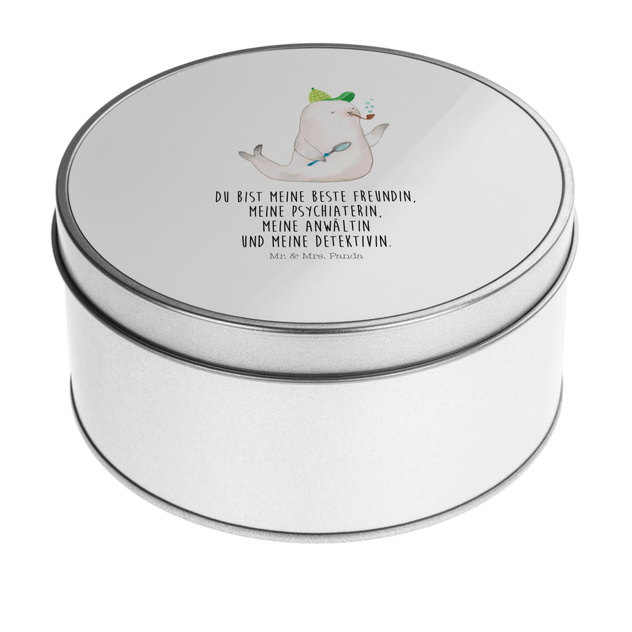 Blechdose rund Robbe Sherlock - mit Spruch - Weiß
