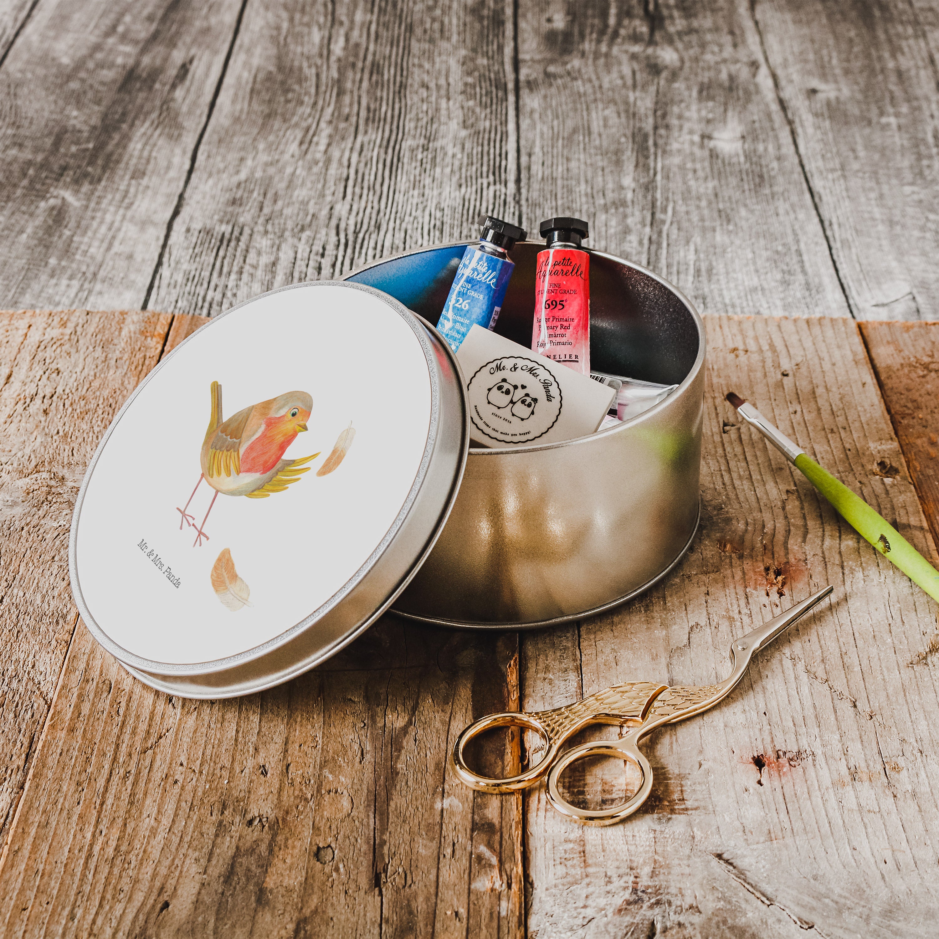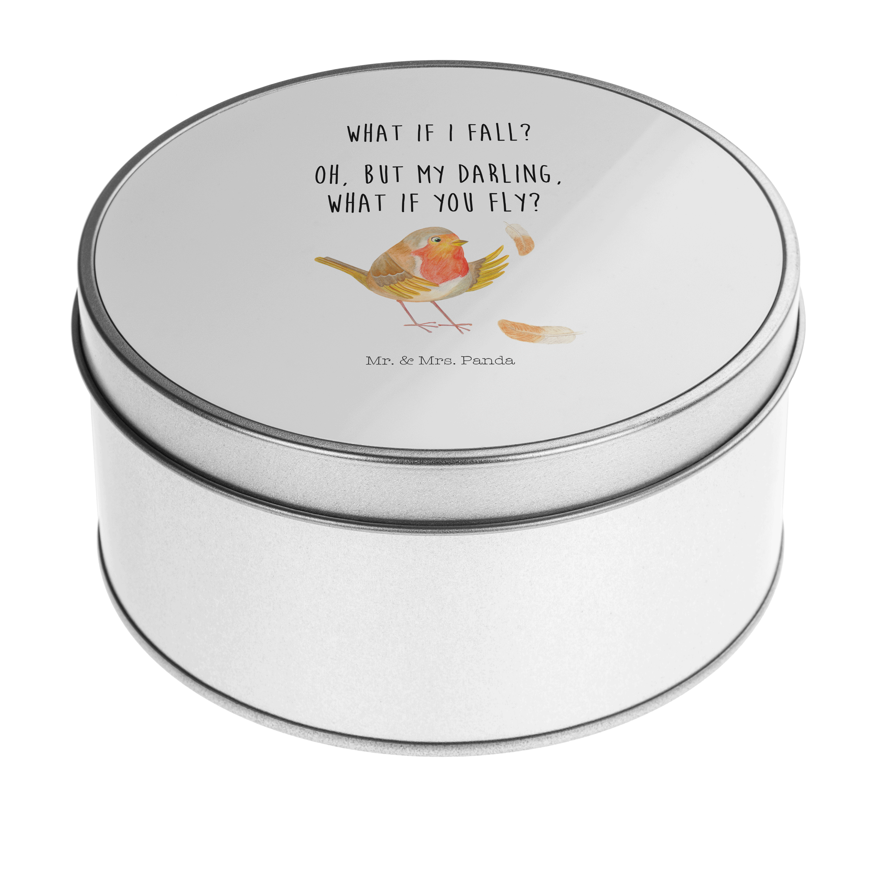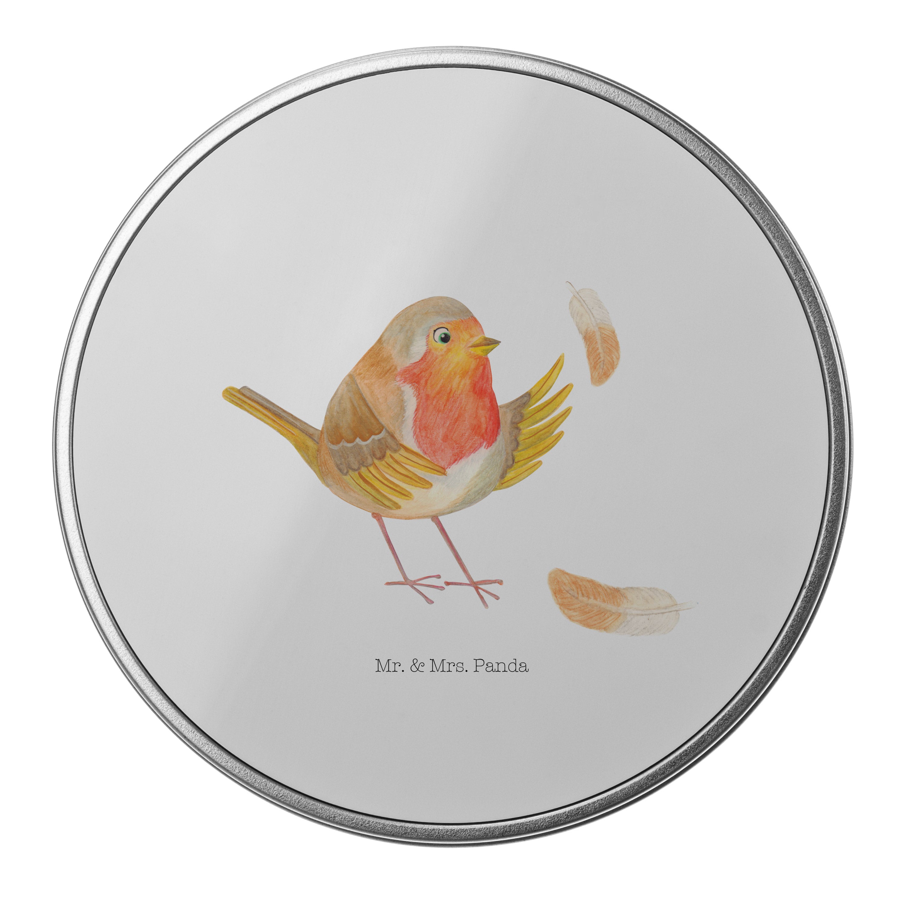 Blechdose rund Rotkehlchen mit Federn - mit Spruch - Gelb Pastell