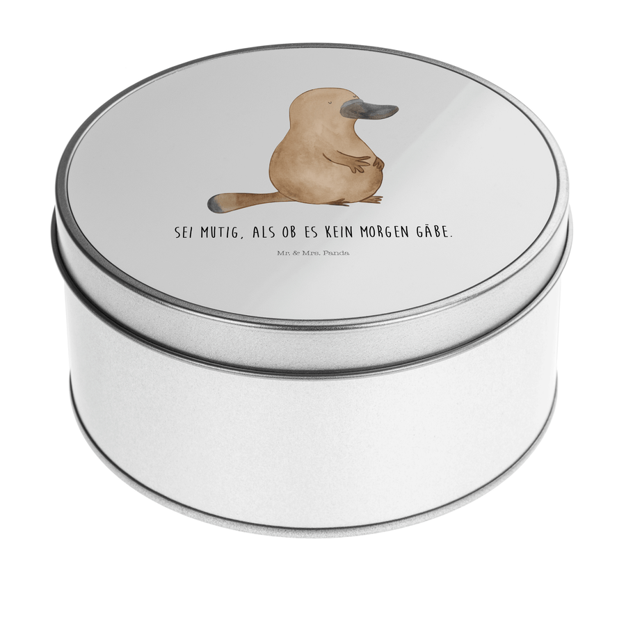 Blechdose rund Schnabeltier mutig - mit Spruch - Weiß