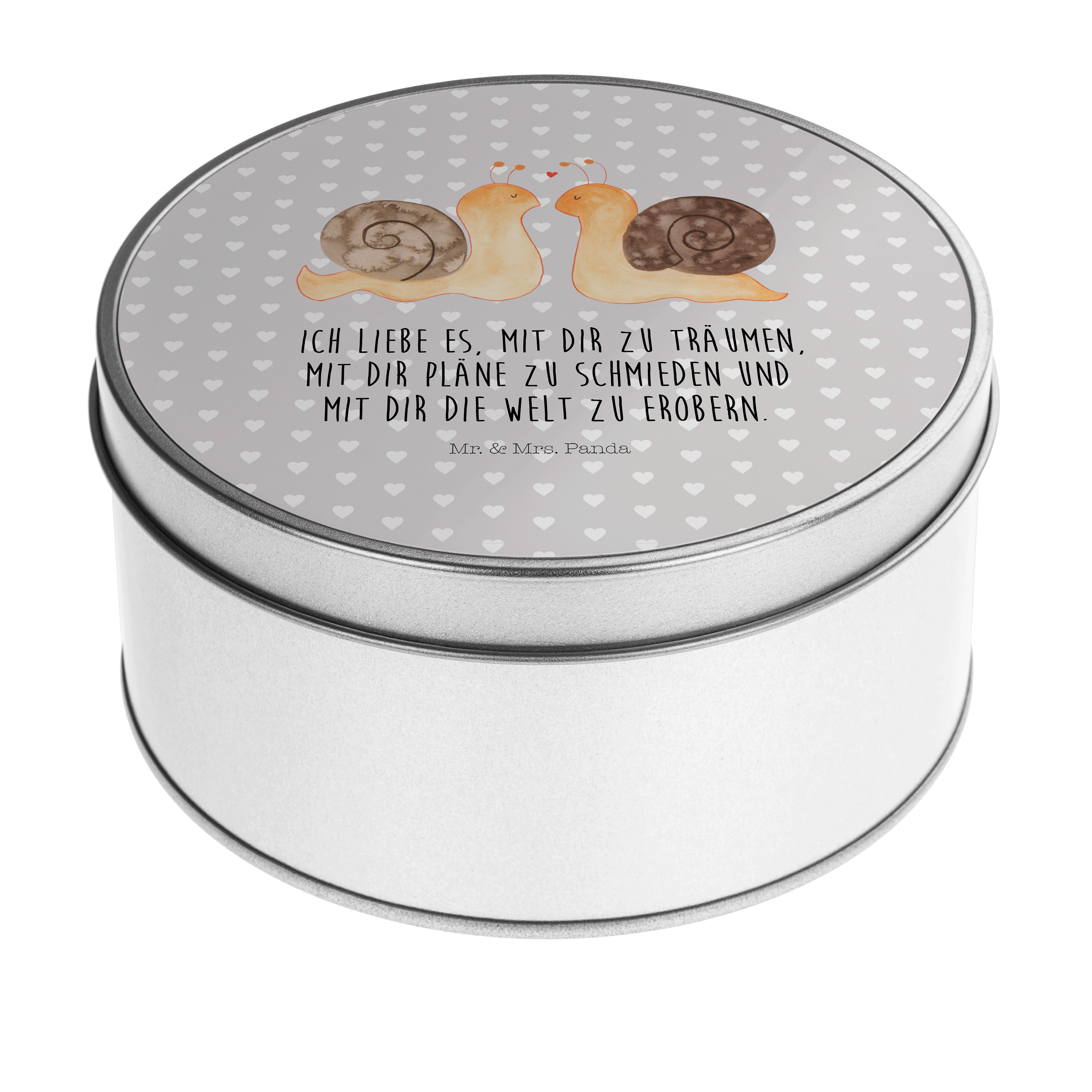 Blechdose rund Schnecken Liebe - mit Spruch - Grau Pastell