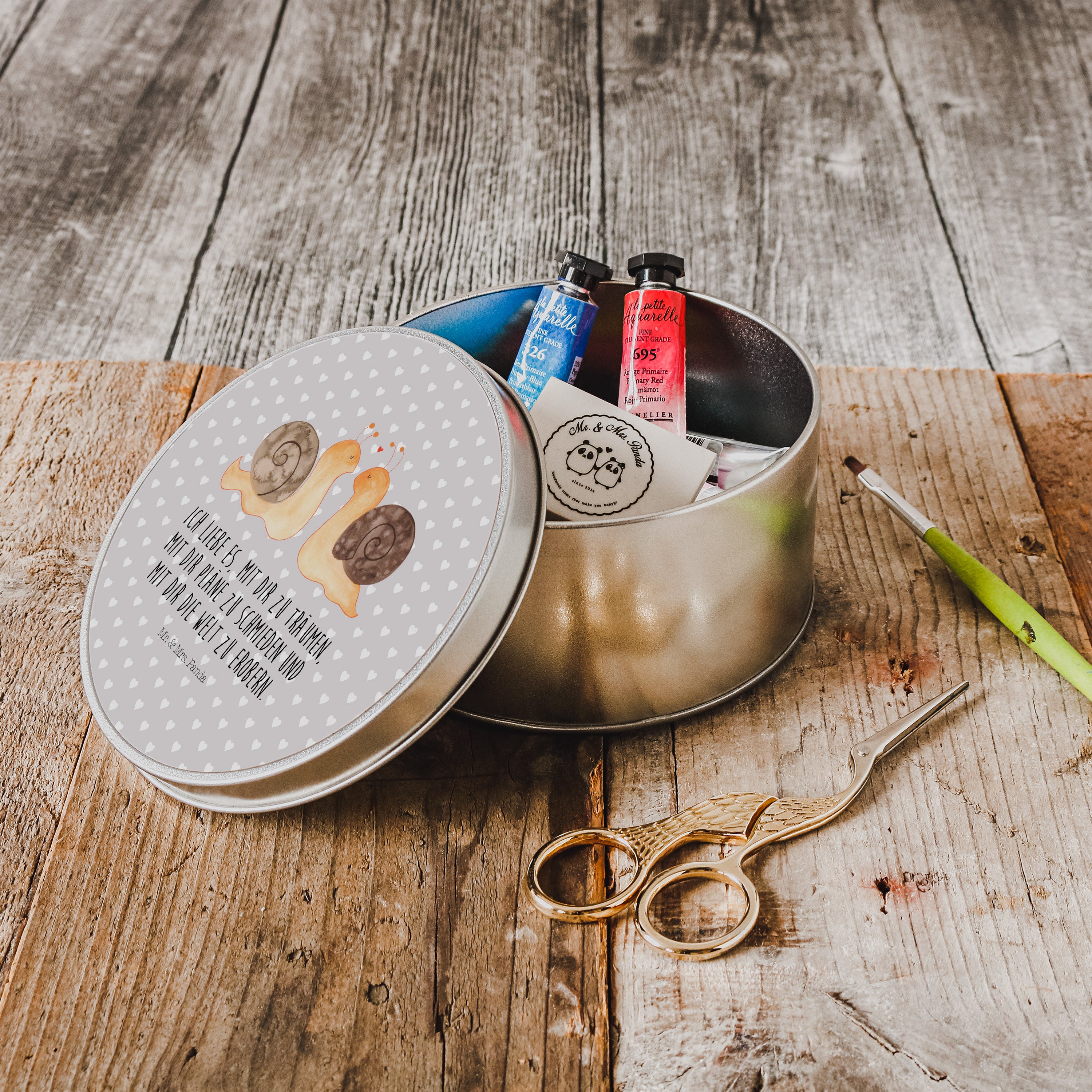 Blechdose rund Schnecken Liebe Metalldose, Keksdose, Dose, Vorratsdose, Geschenkbox, Liebe, Partner, Freund, Freundin, Ehemann, Ehefrau, Heiraten, Verlobung, Heiratsantrag, Liebesgeschenk, Jahrestag, Hocheitstag