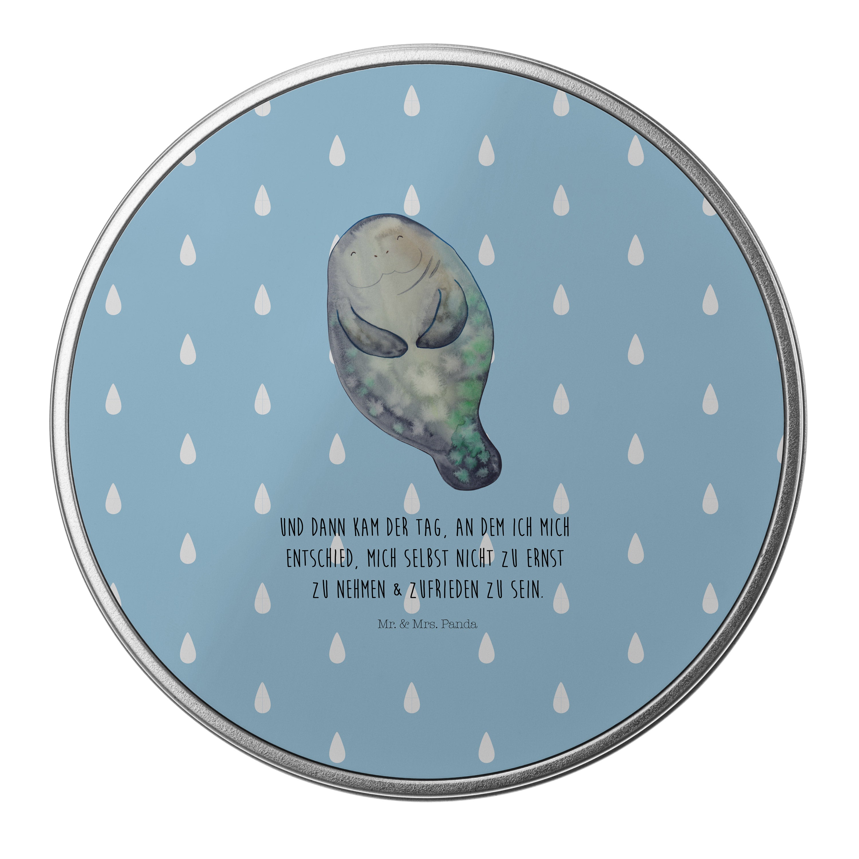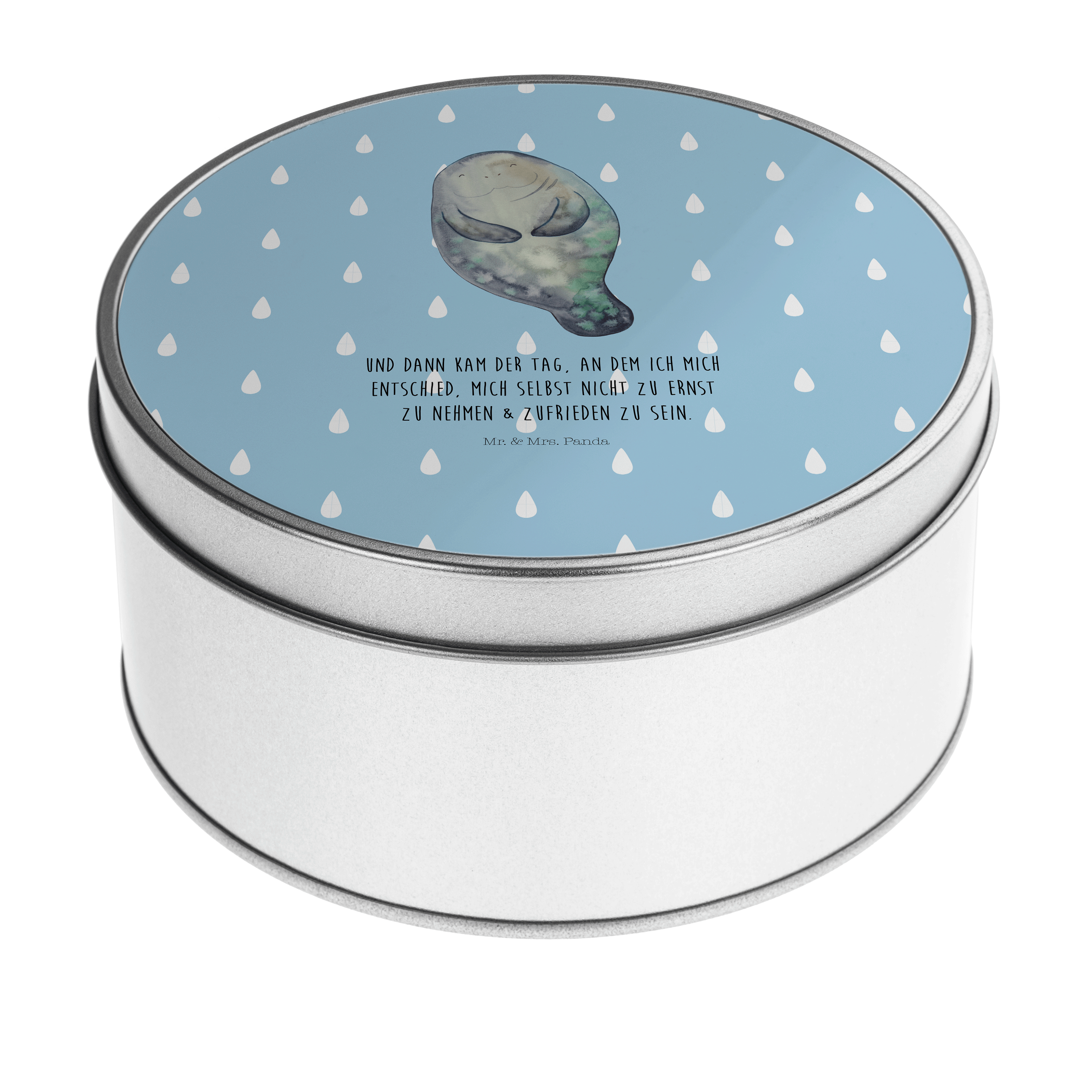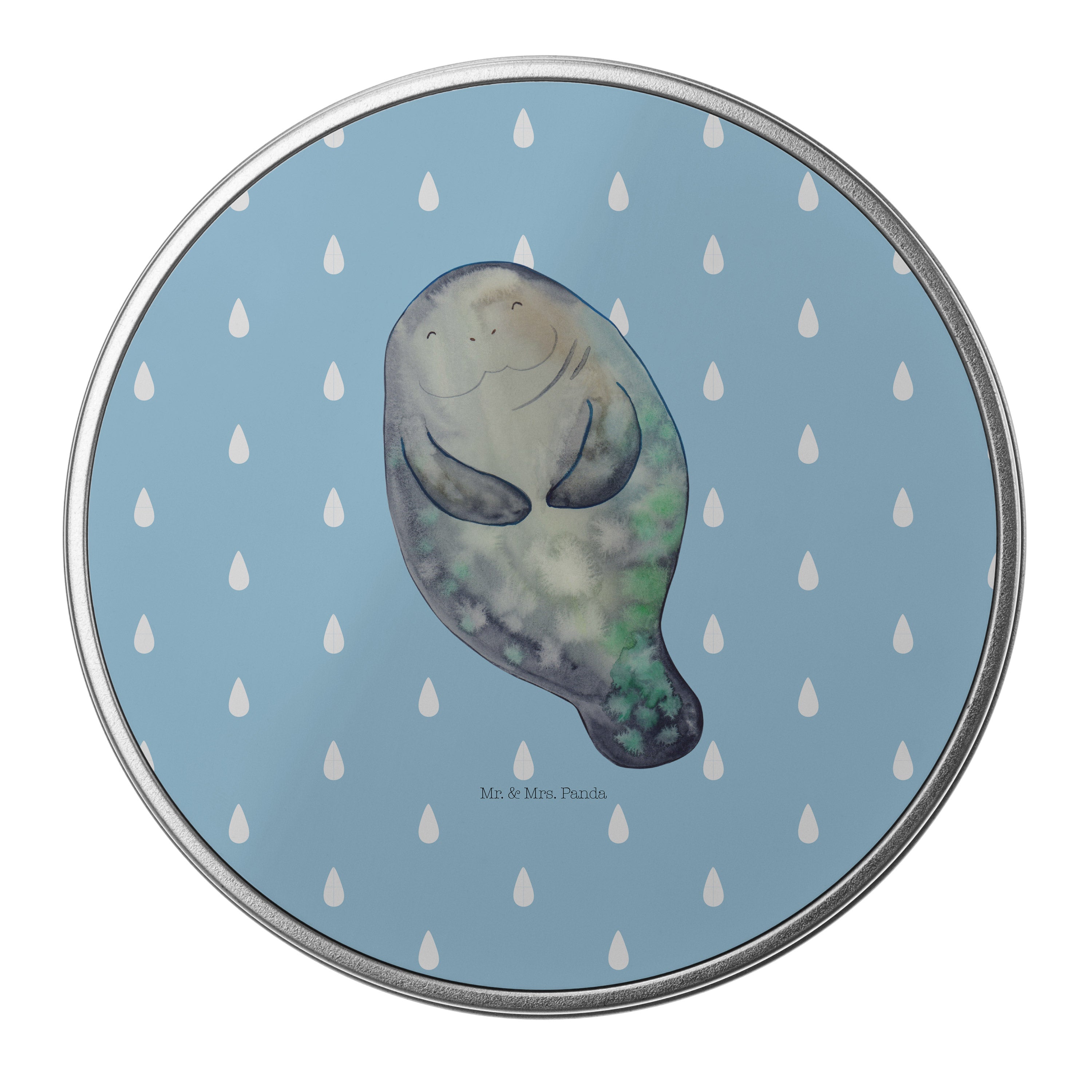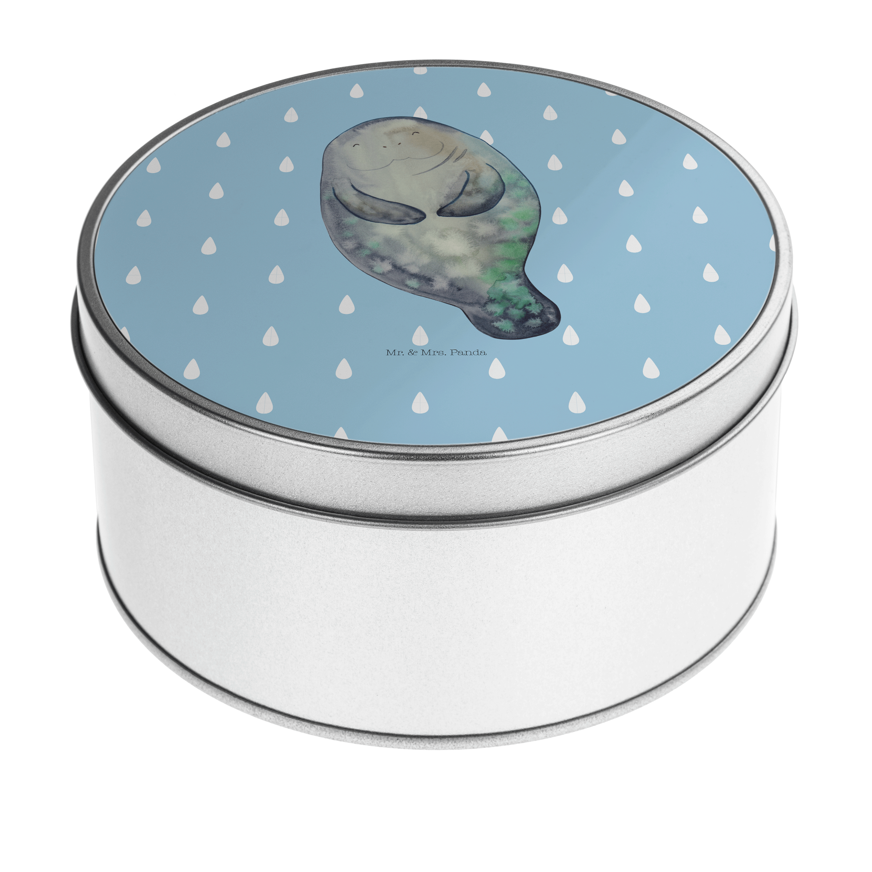 Blechdose rund Seekuh happy - mit Spruch - Blau Pastell