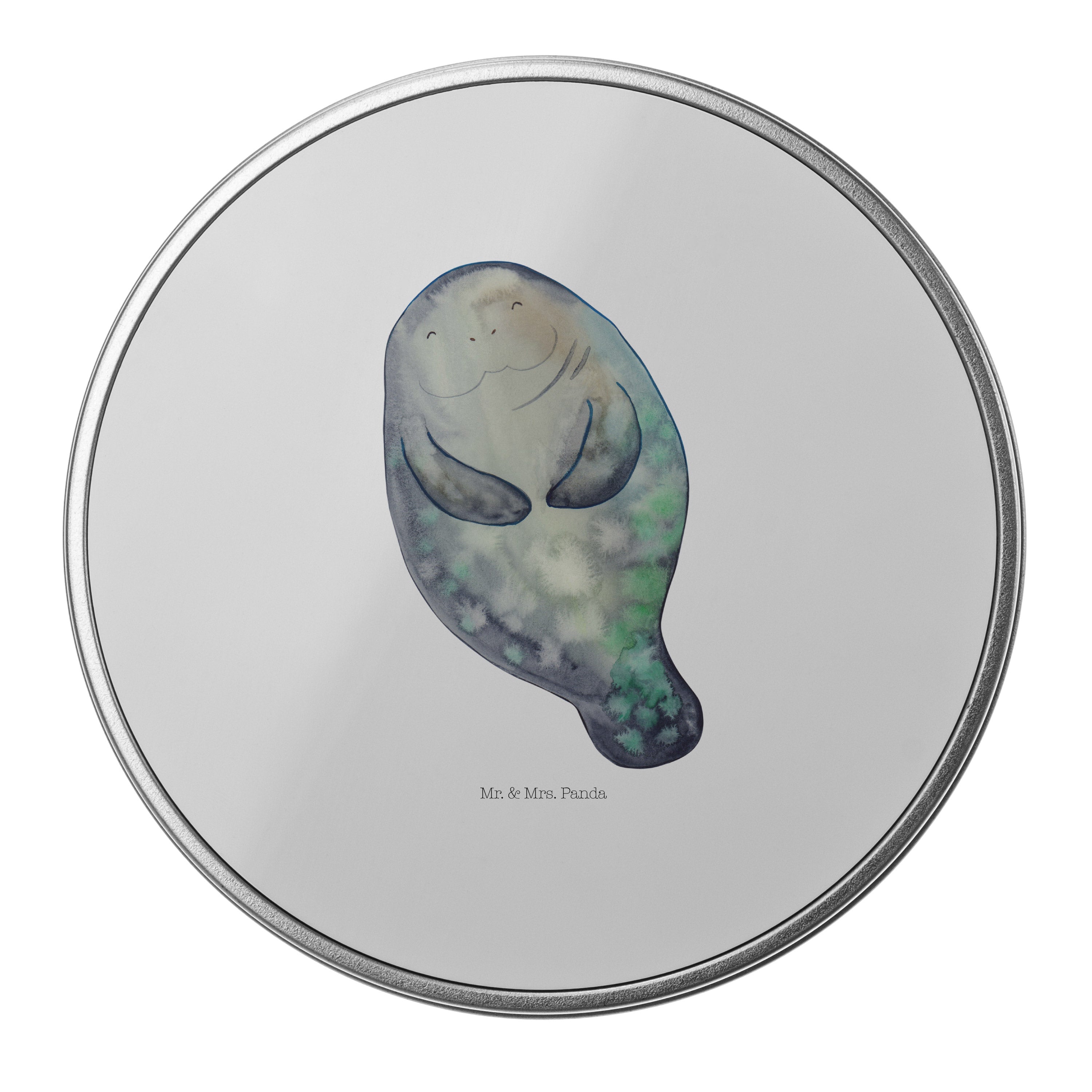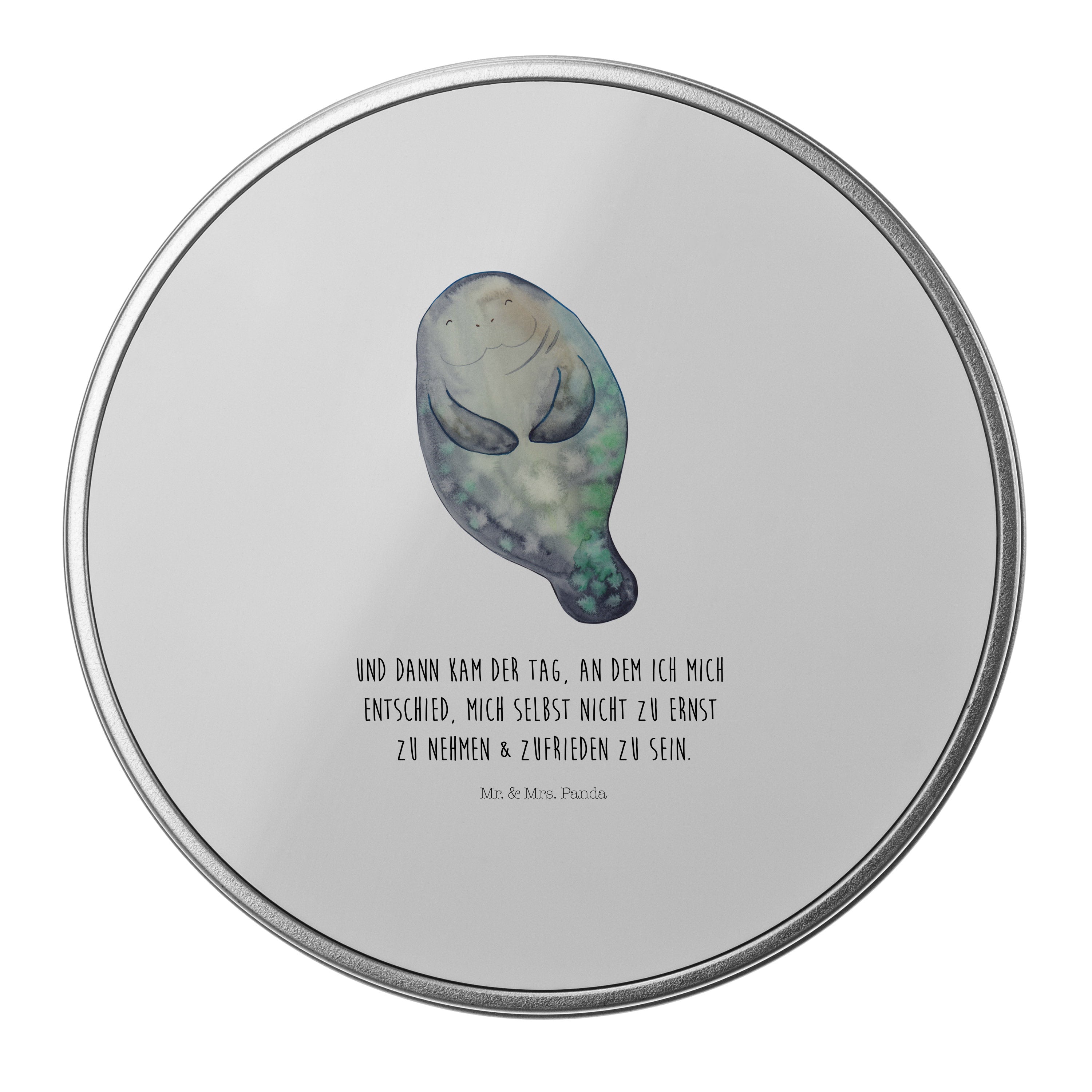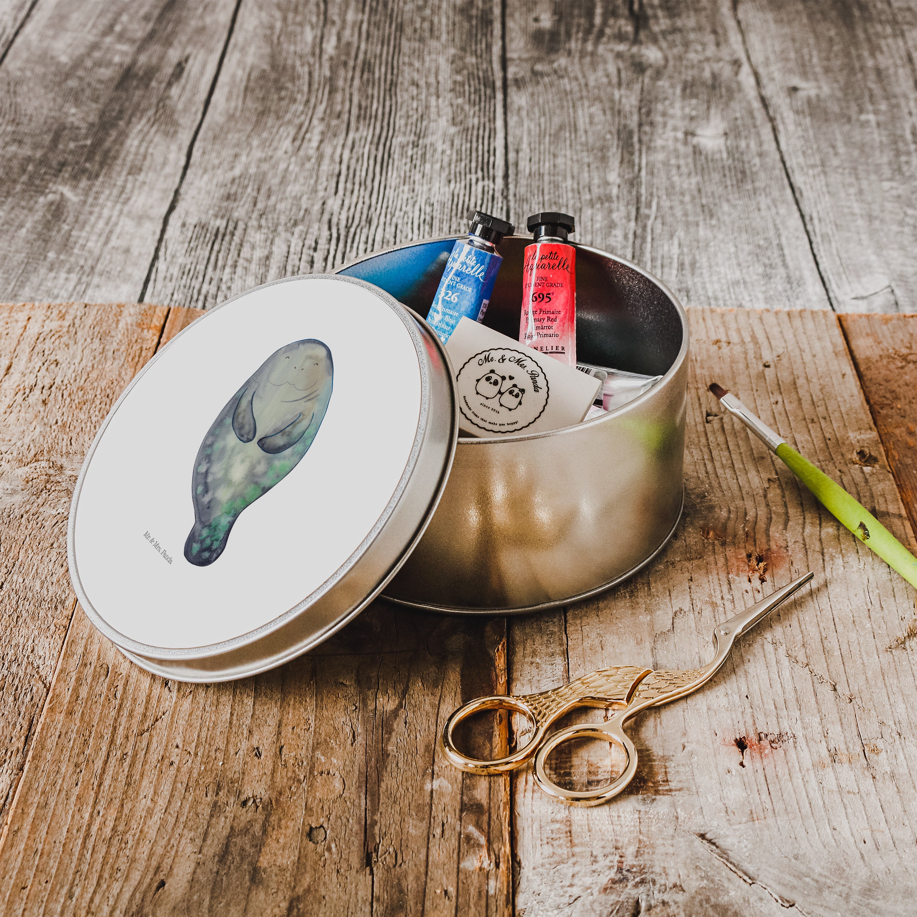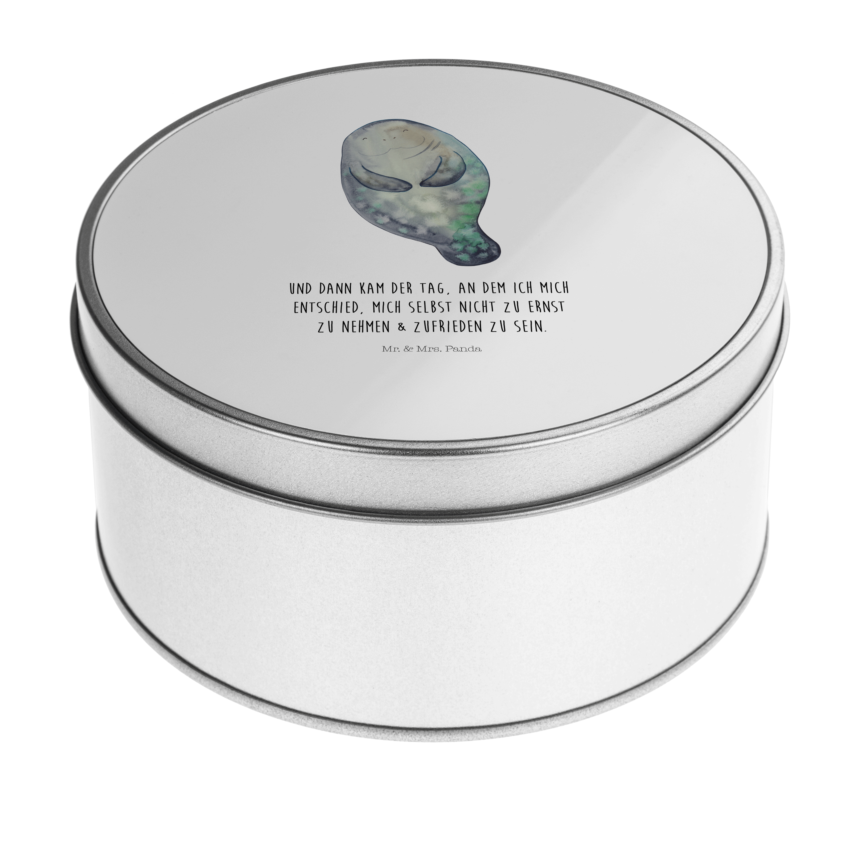 Blechdose rund Seekuh happy - mit Spruch - Blau Pastell