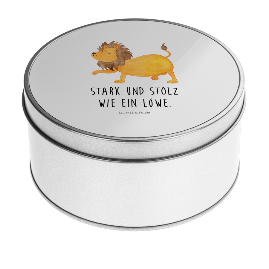 Blechdose rund Sternzeichen Löwe - mit Spruch - Weiß