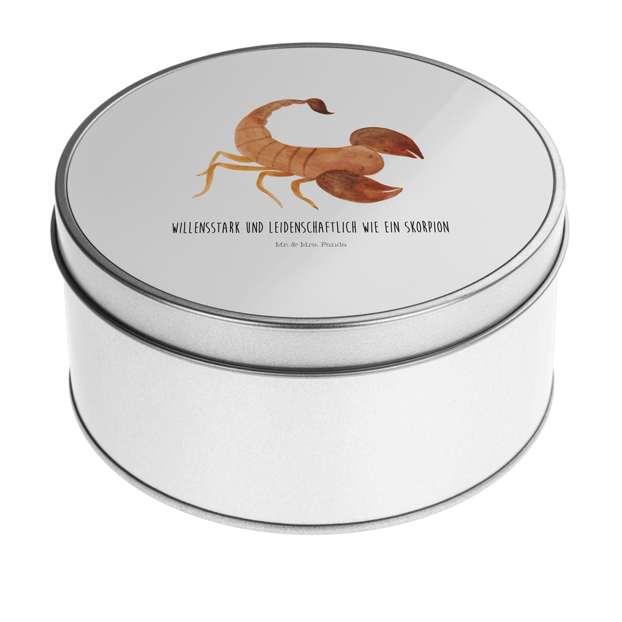 Blechdose rund Sternzeichen Skorpion - mit Spruch - Weiß