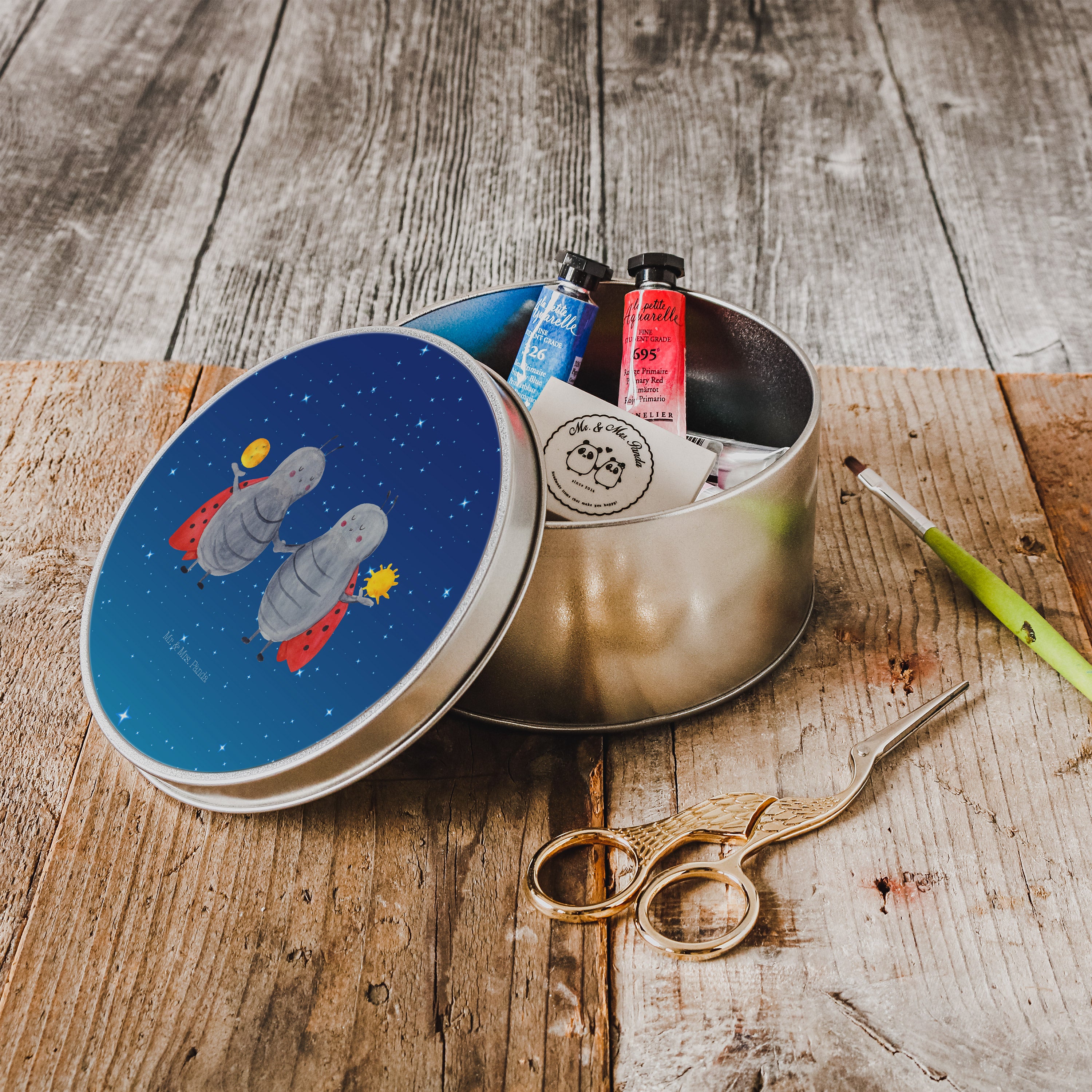 Blechdose rund Sternzeichen Zwilling - mit Spruch - Sternenhimmel Blau