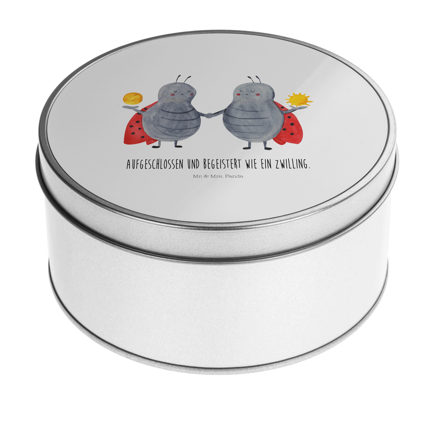 Blechdose rund Sternzeichen Zwilling - mit Spruch - Weiß