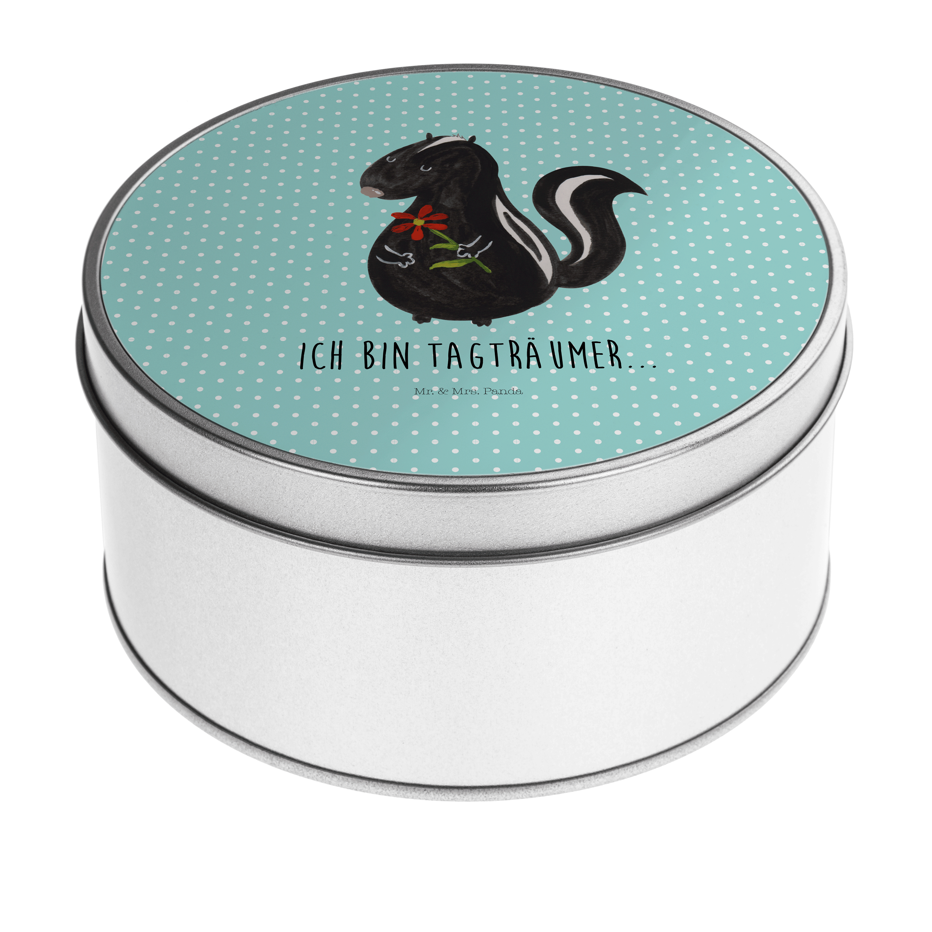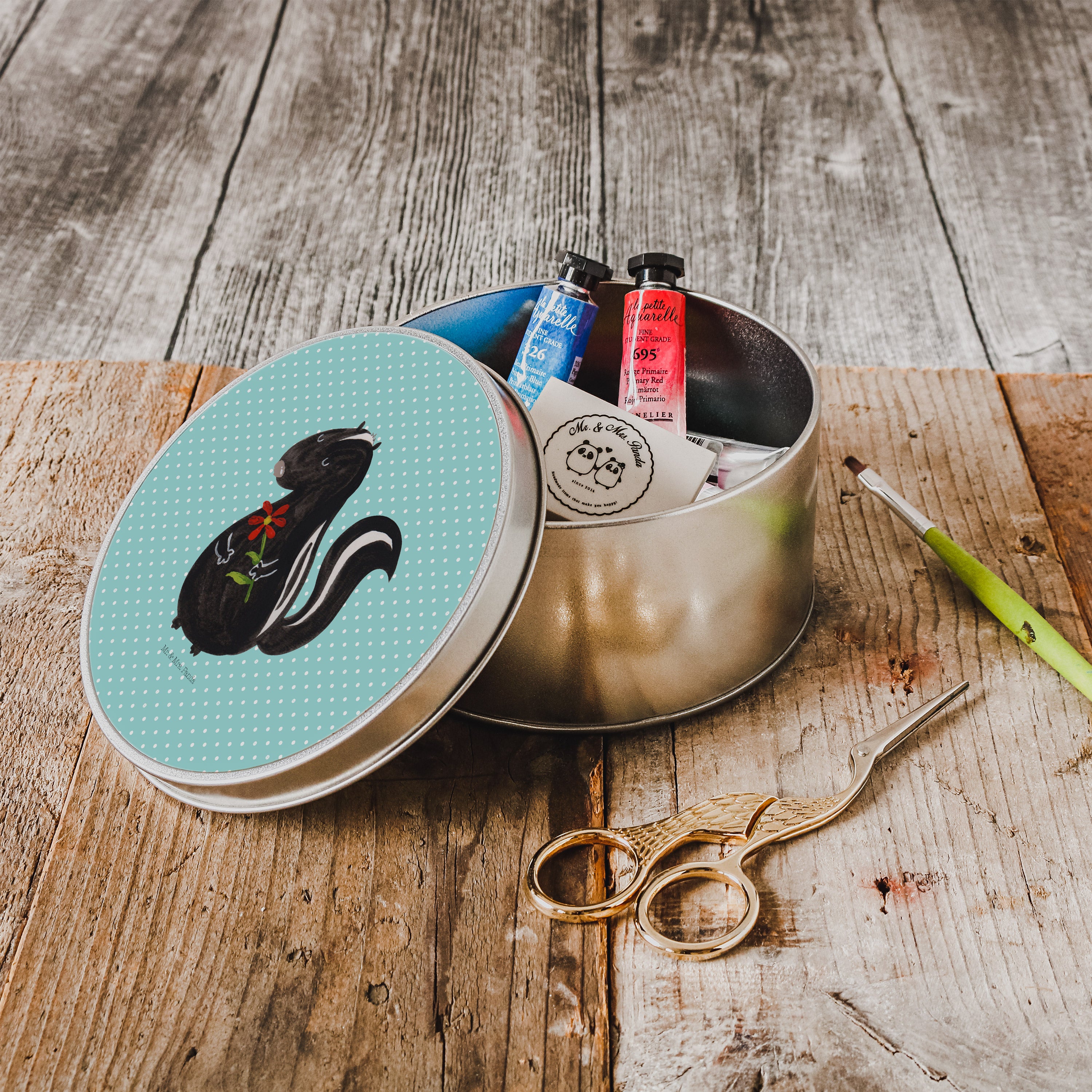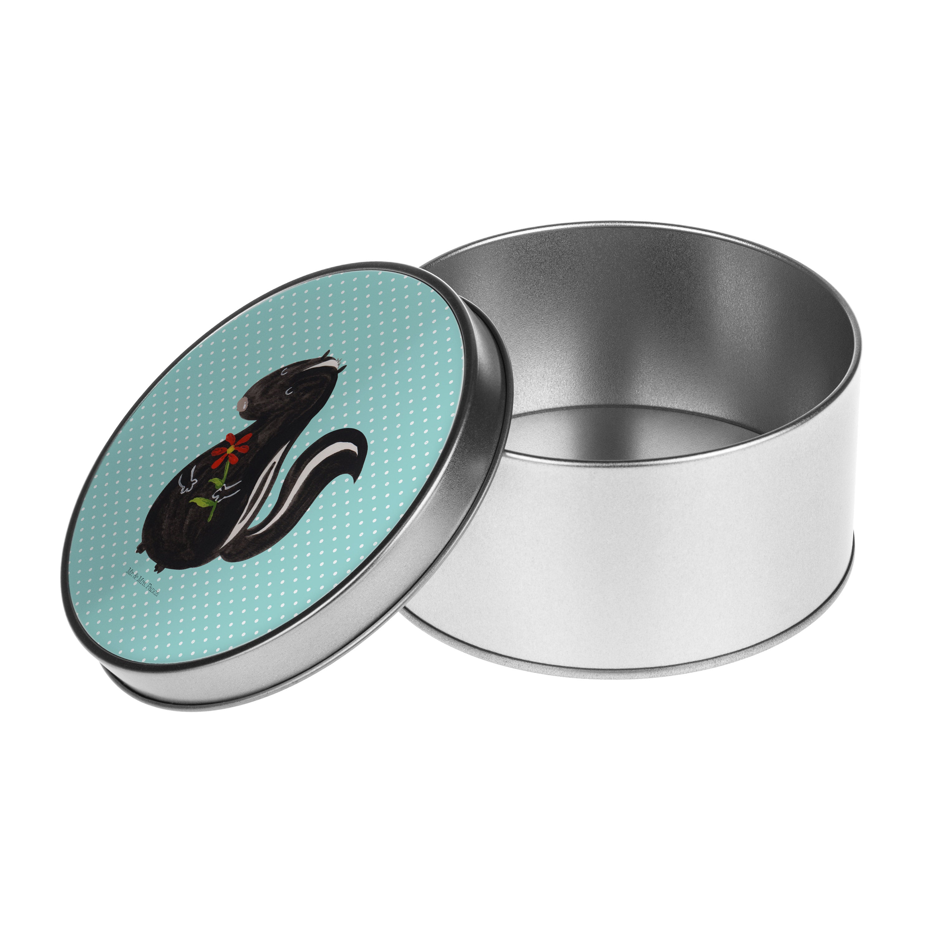 Blechdose rund Stinktier Blume - mit Spruch - Türkis Pastell