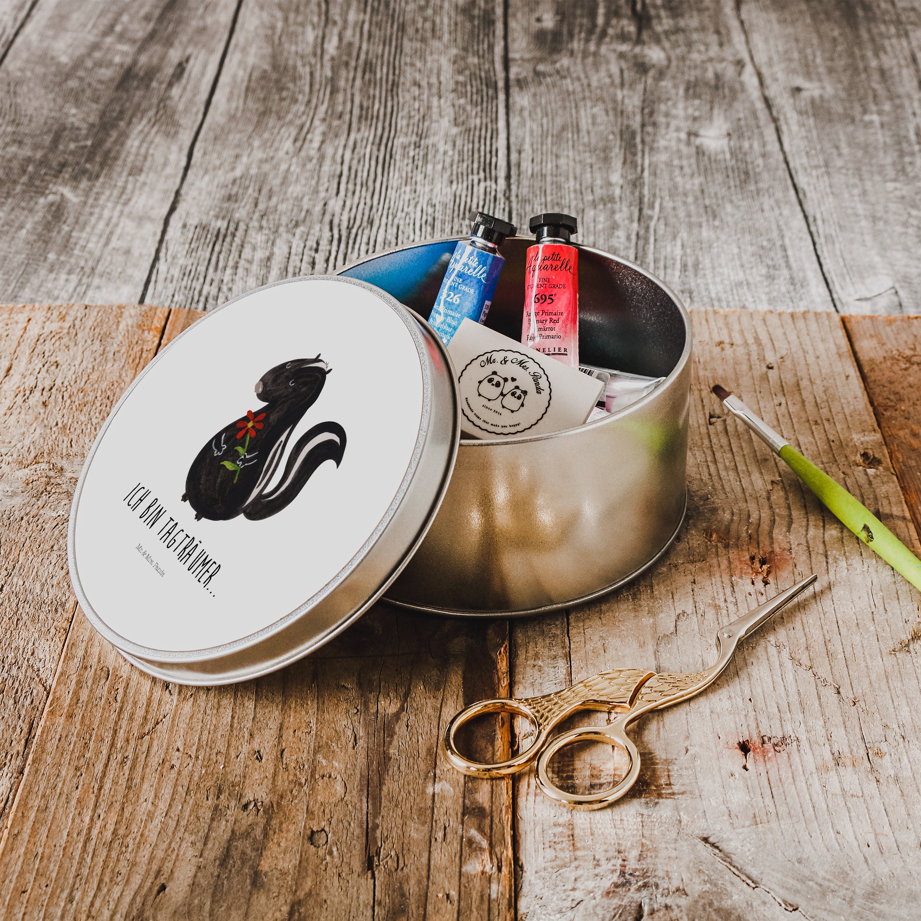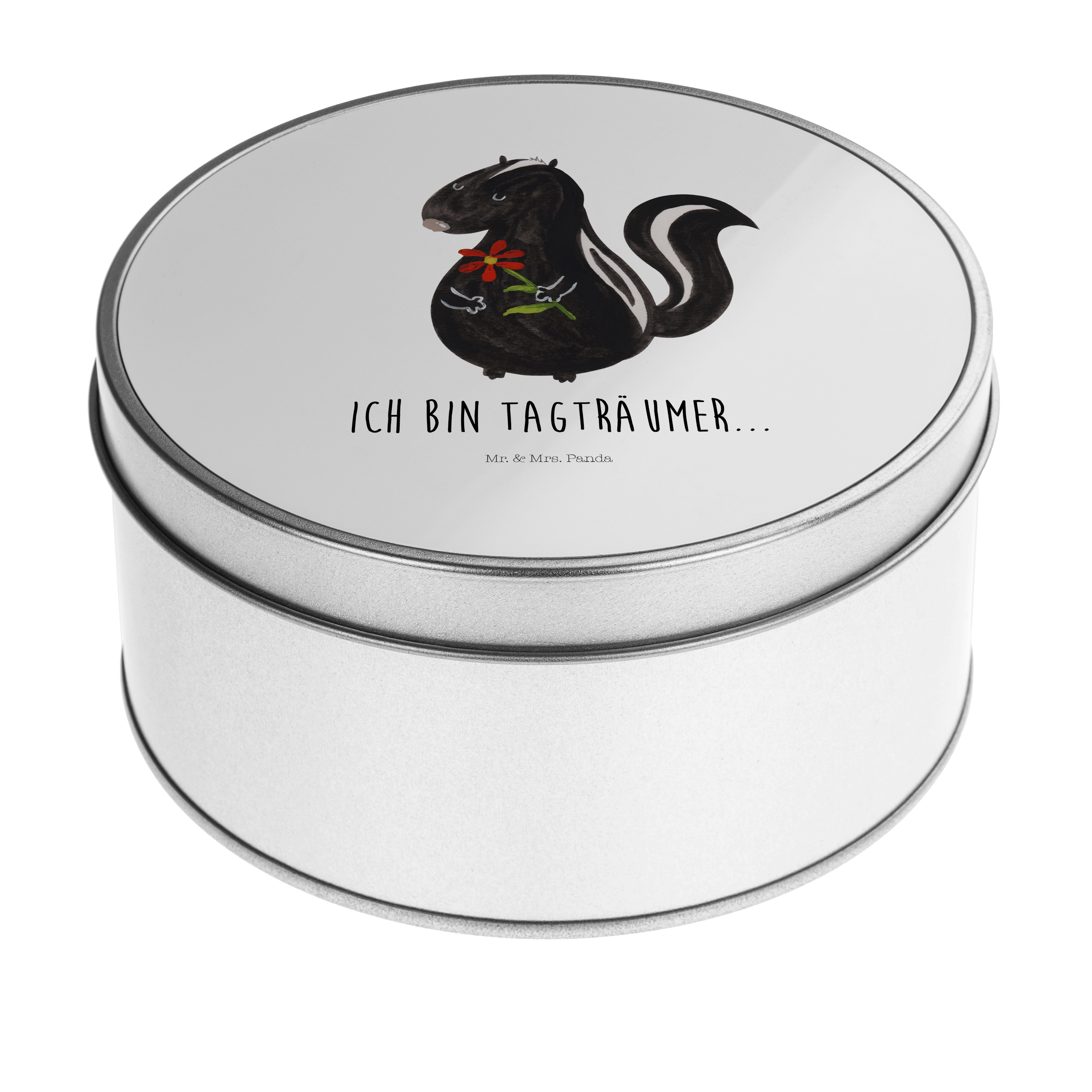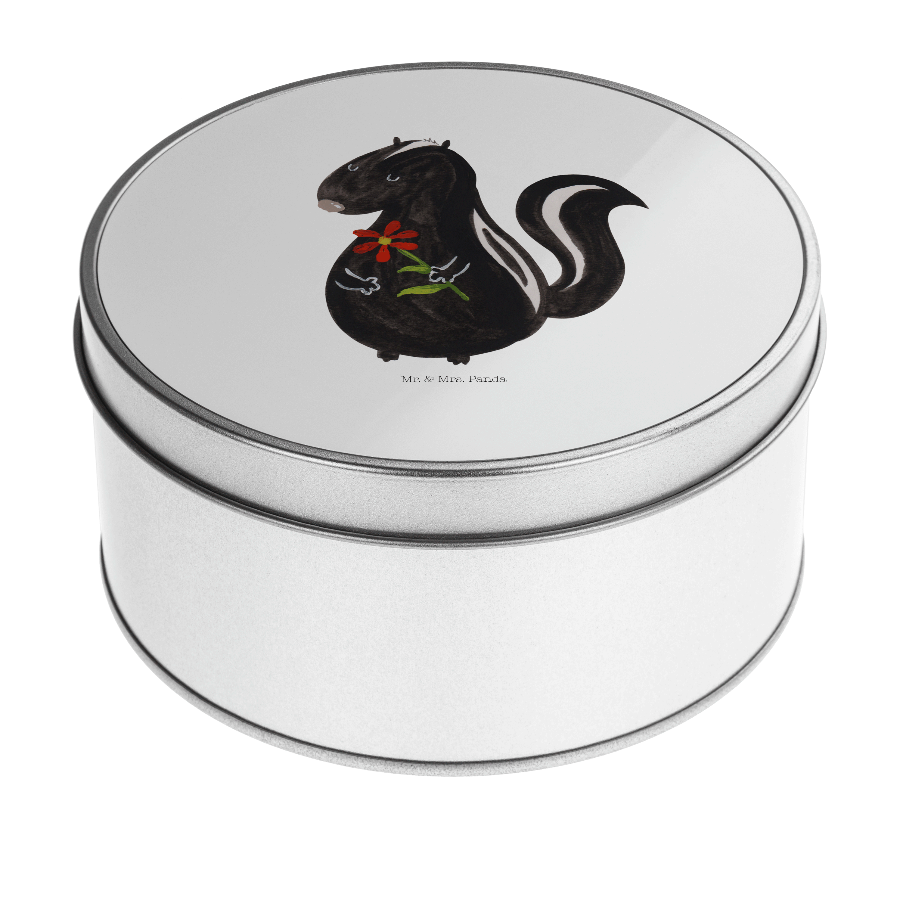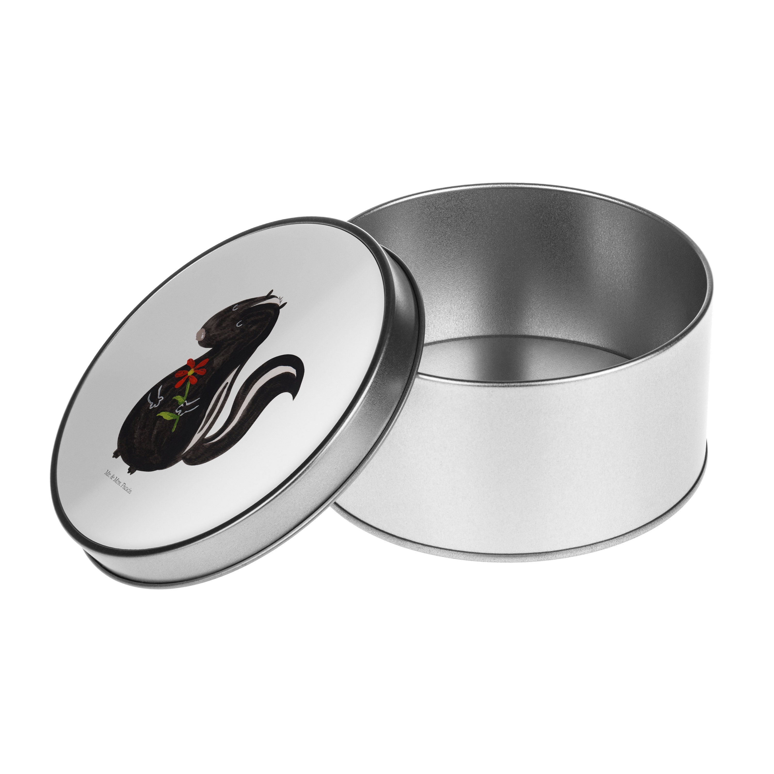Blechdose rund Stinktier Blume - mit Spruch - Türkis Pastell