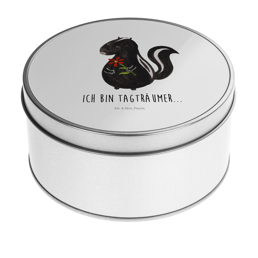Blechdose rund Stinktier Blume - mit Spruch - Weiß