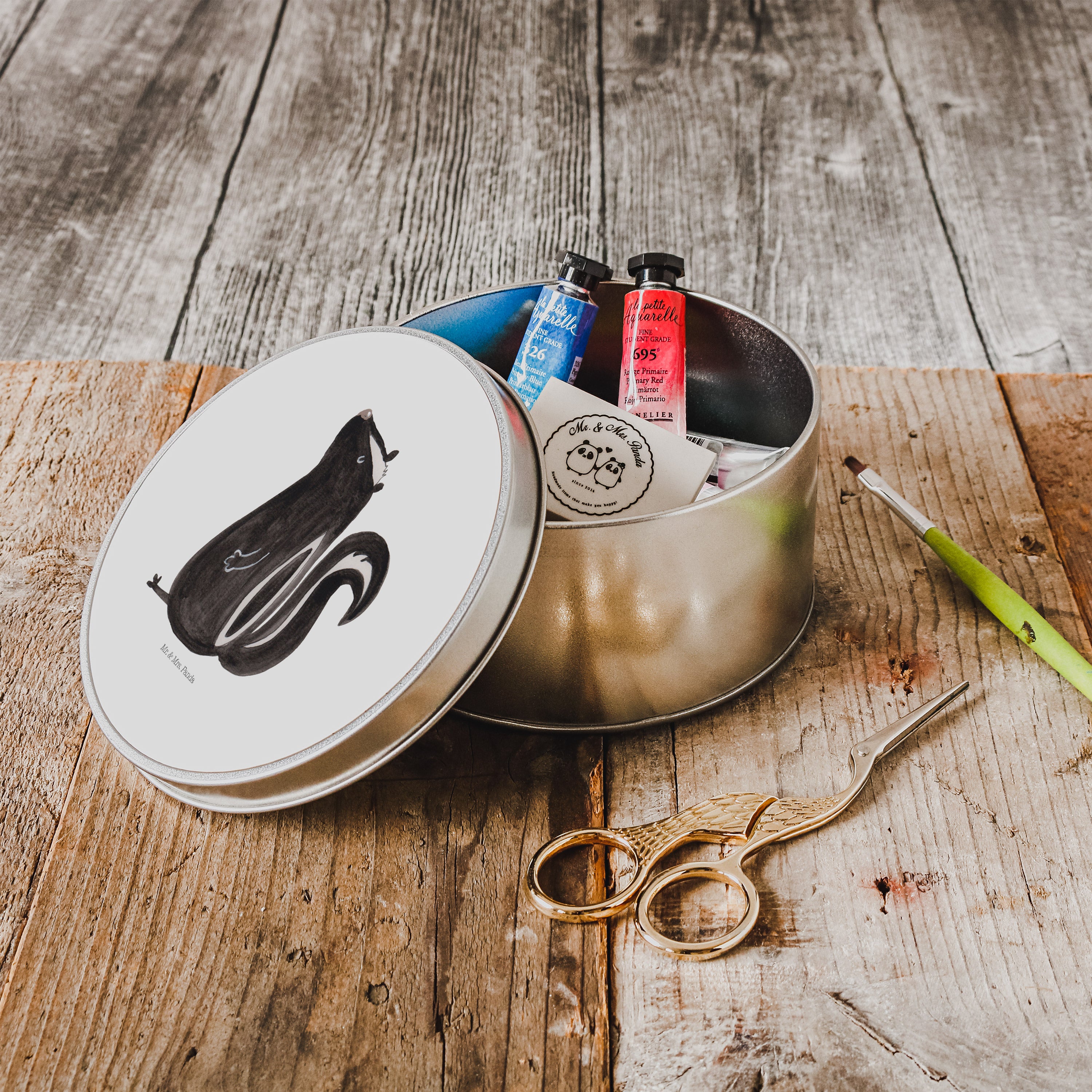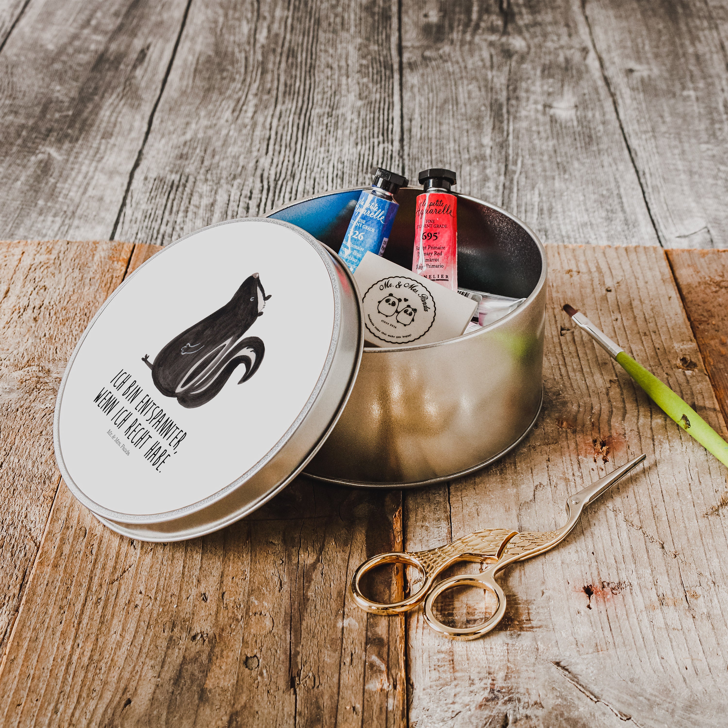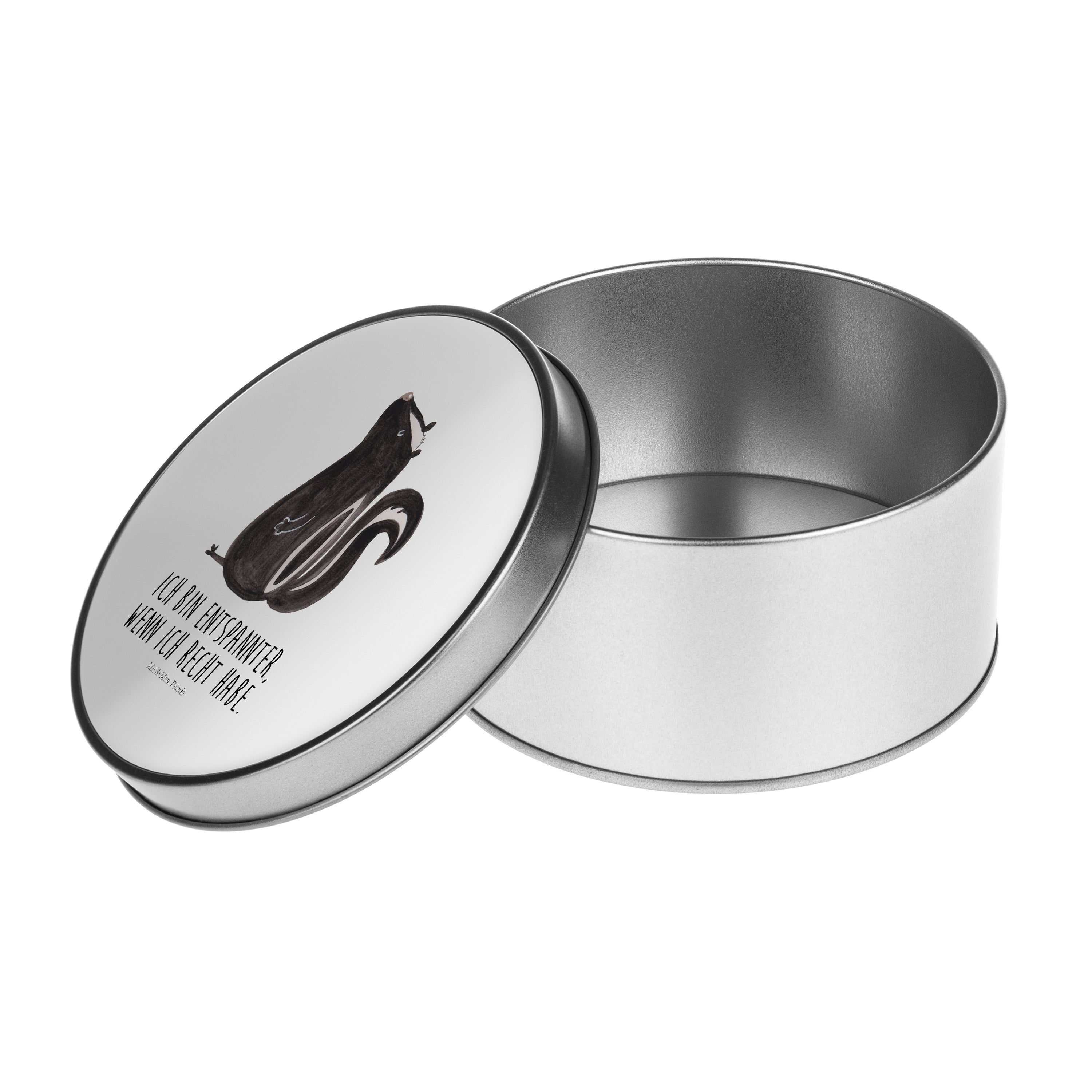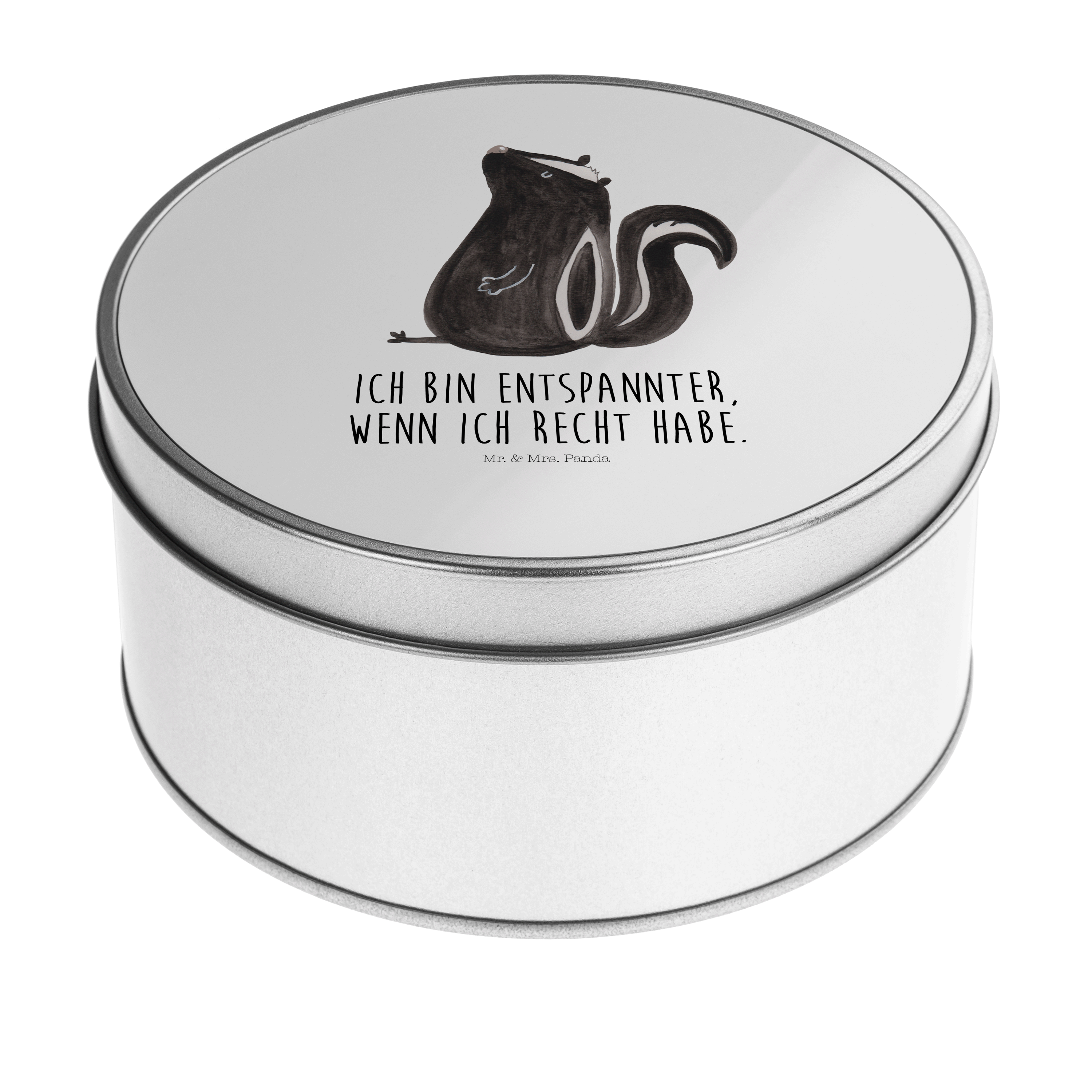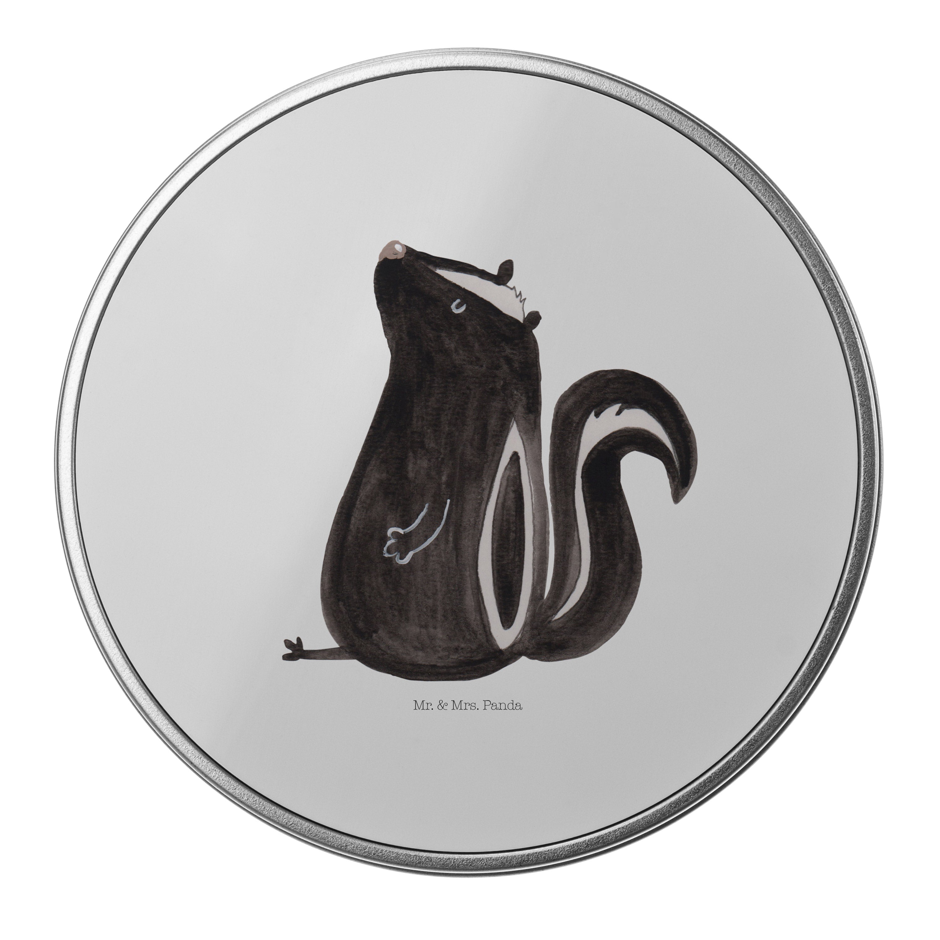 Blechdose rund Stinktier sitzend - mit Spruch - Türkis Pastell