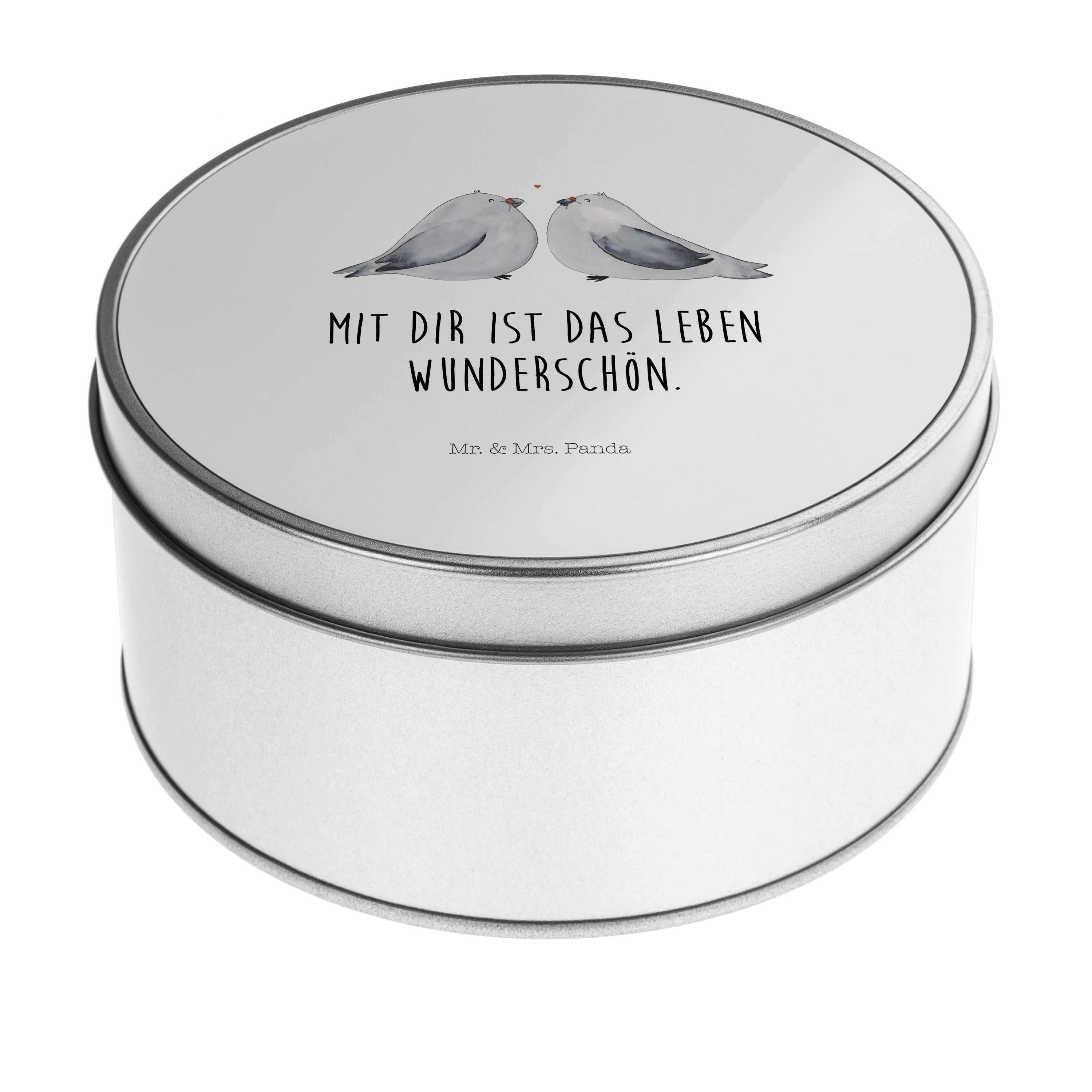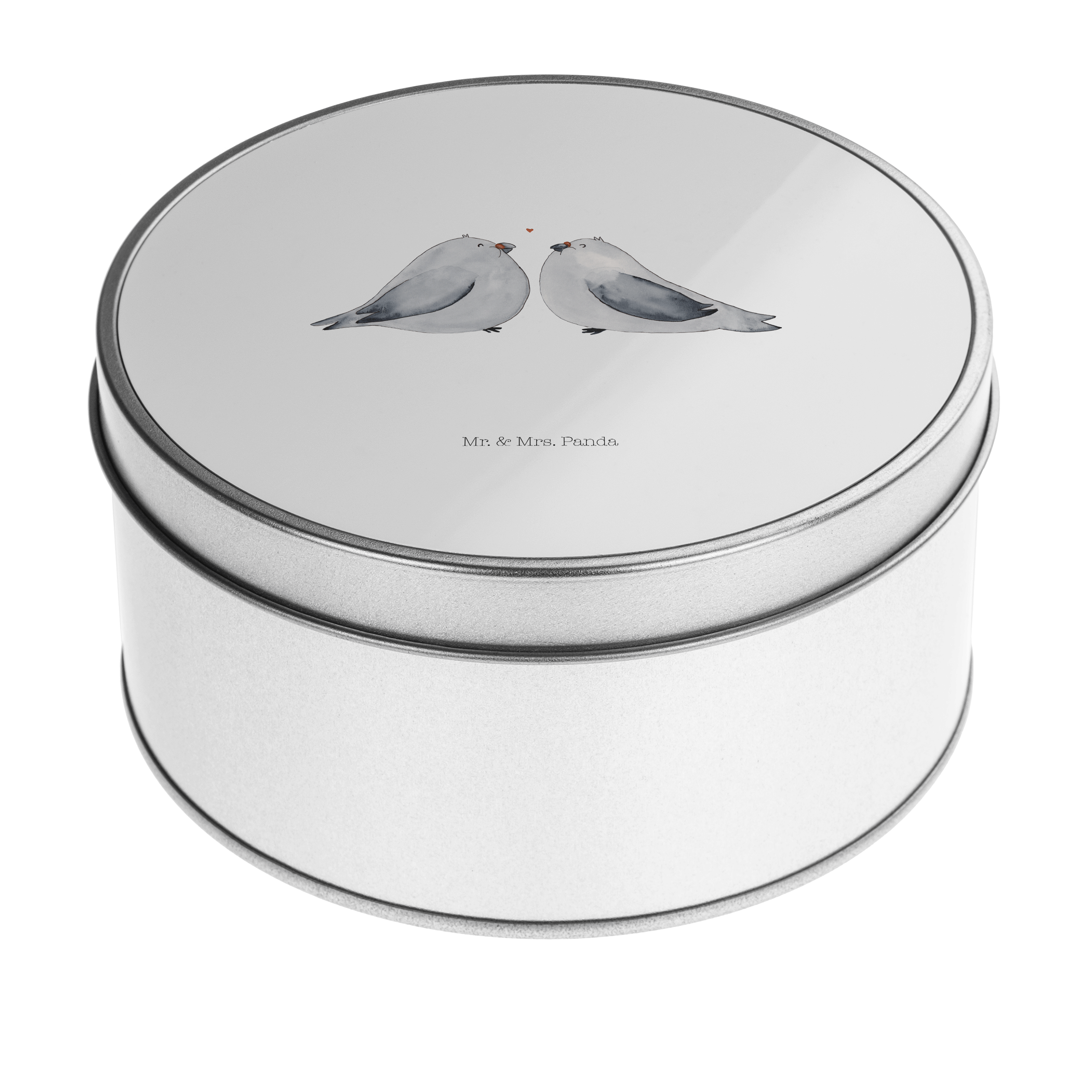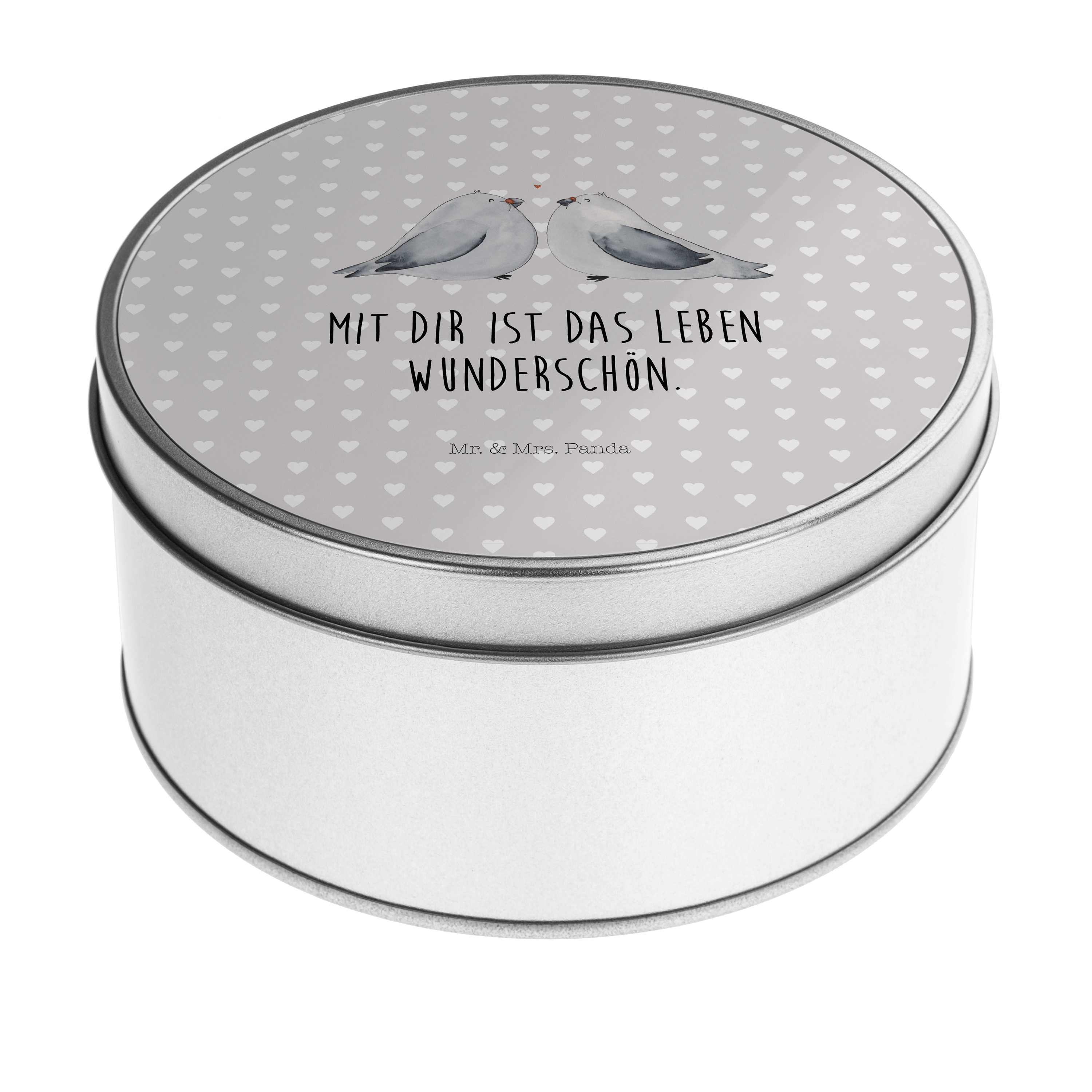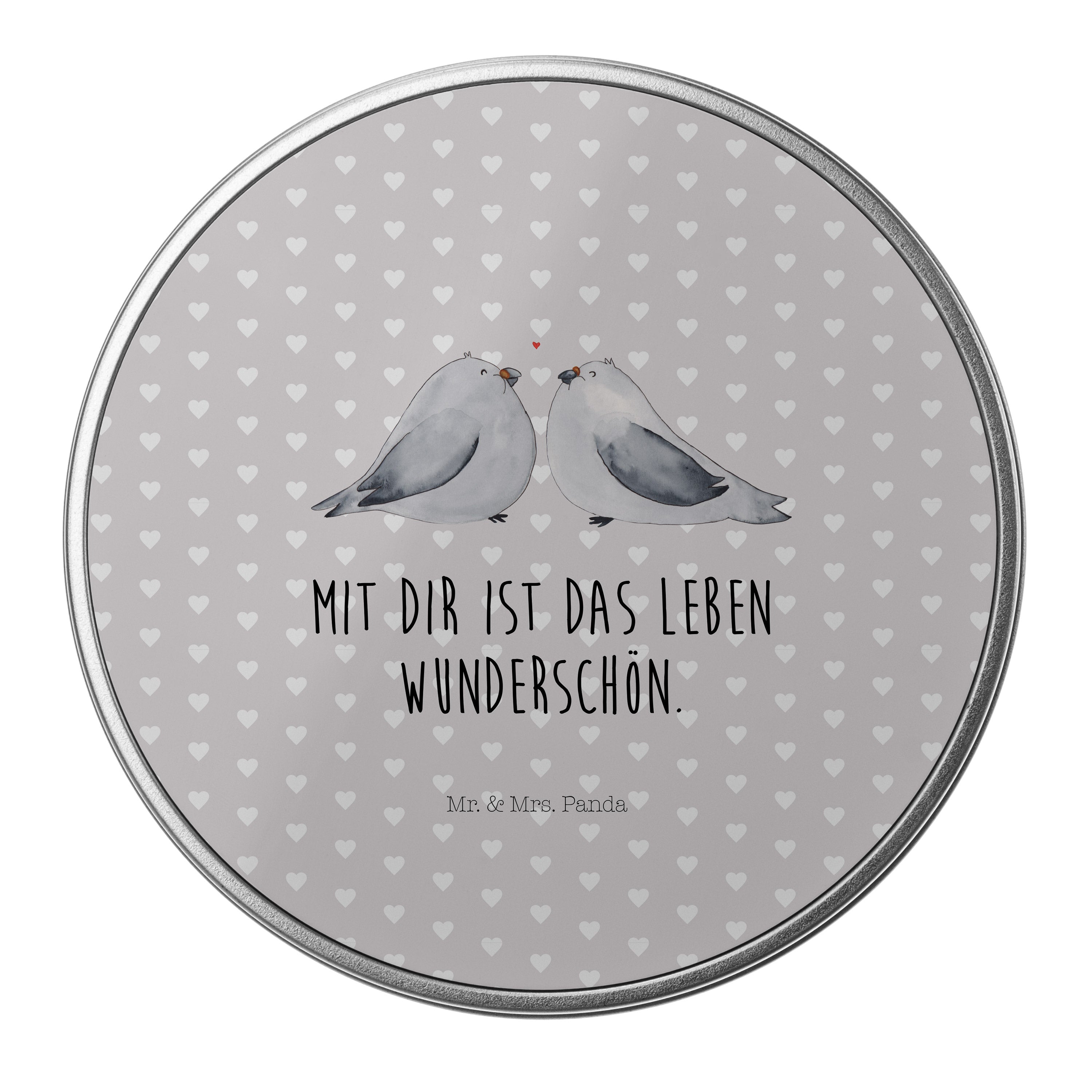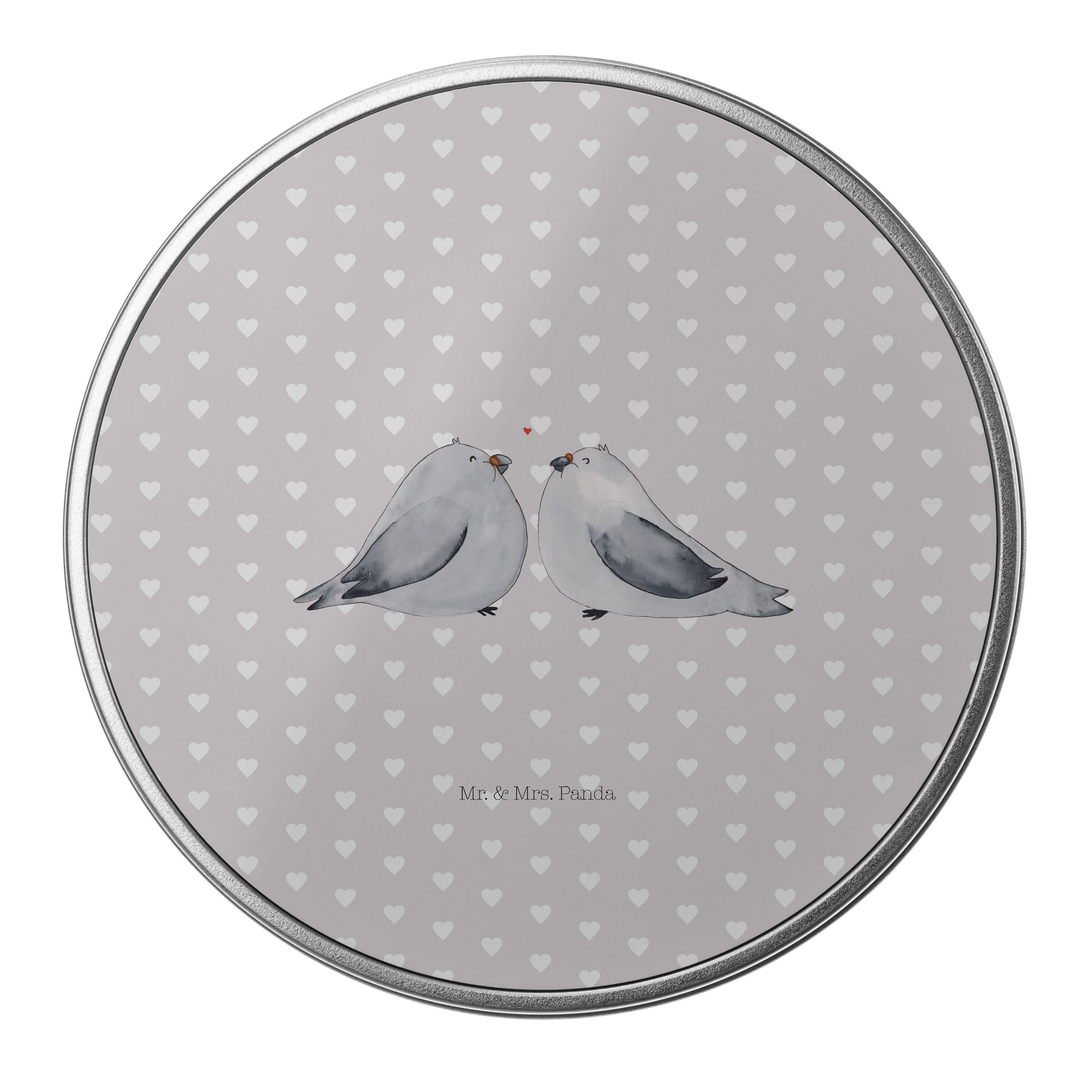 Blechdose rund Turteltauben Liebe - mit Spruch - Grau Pastell