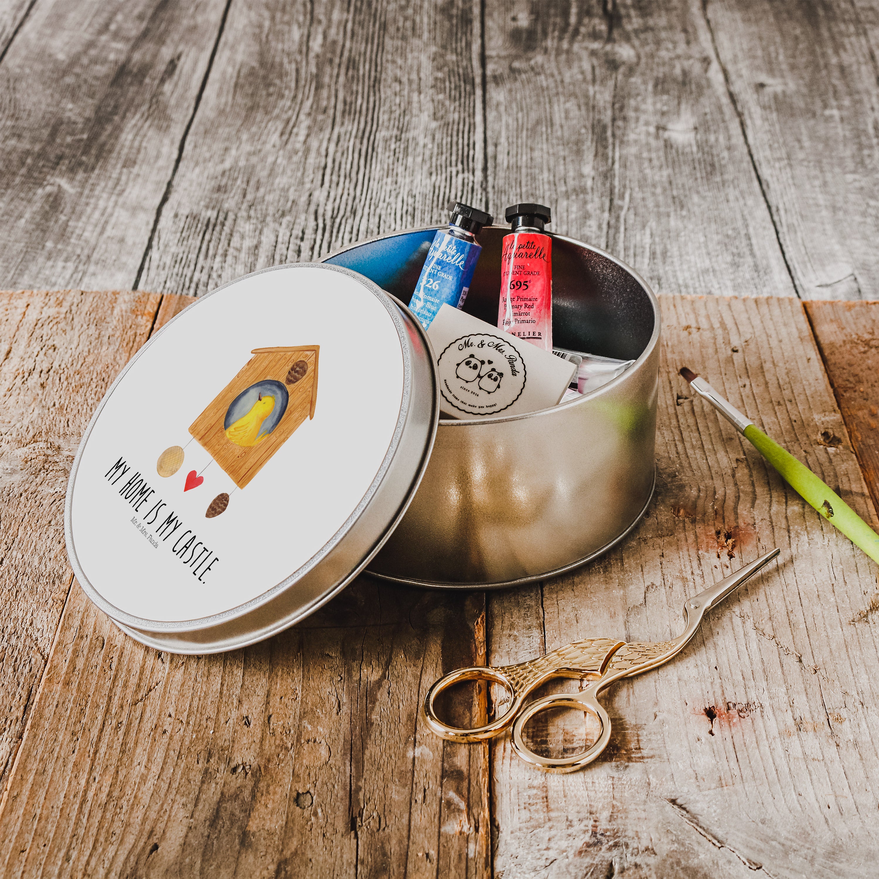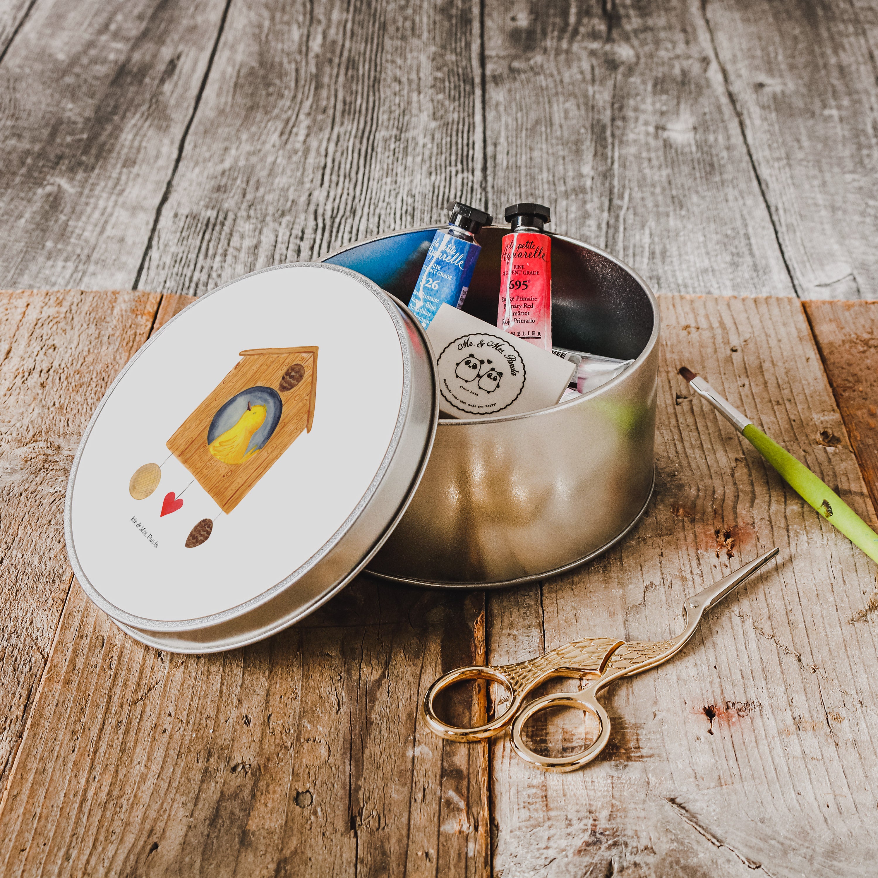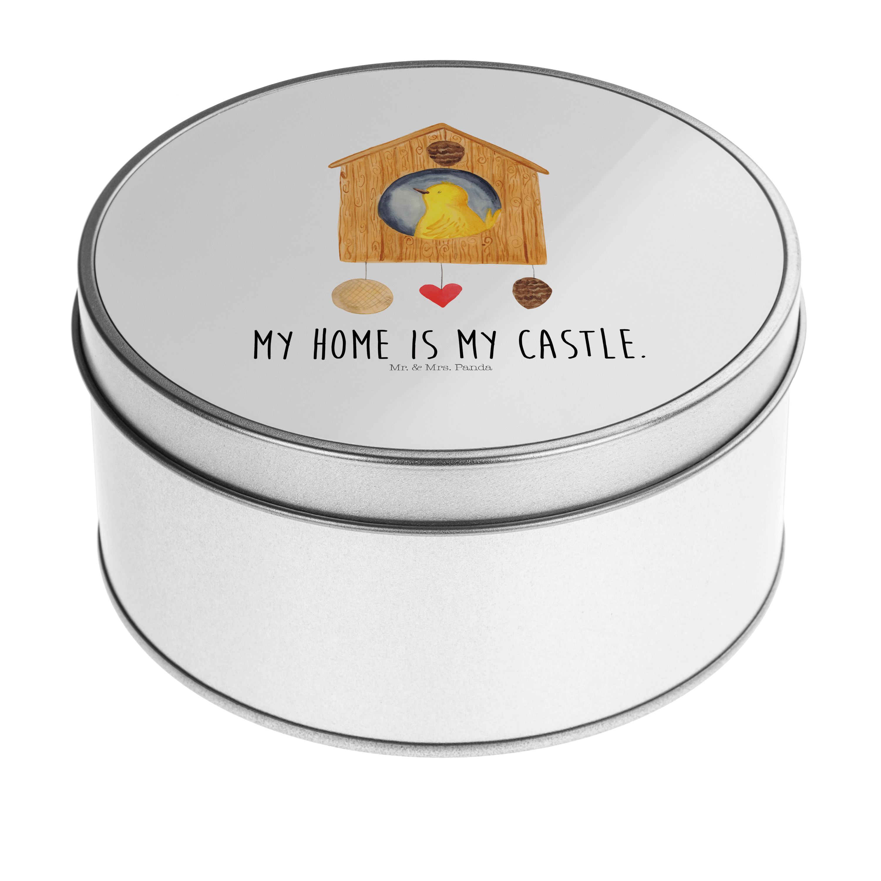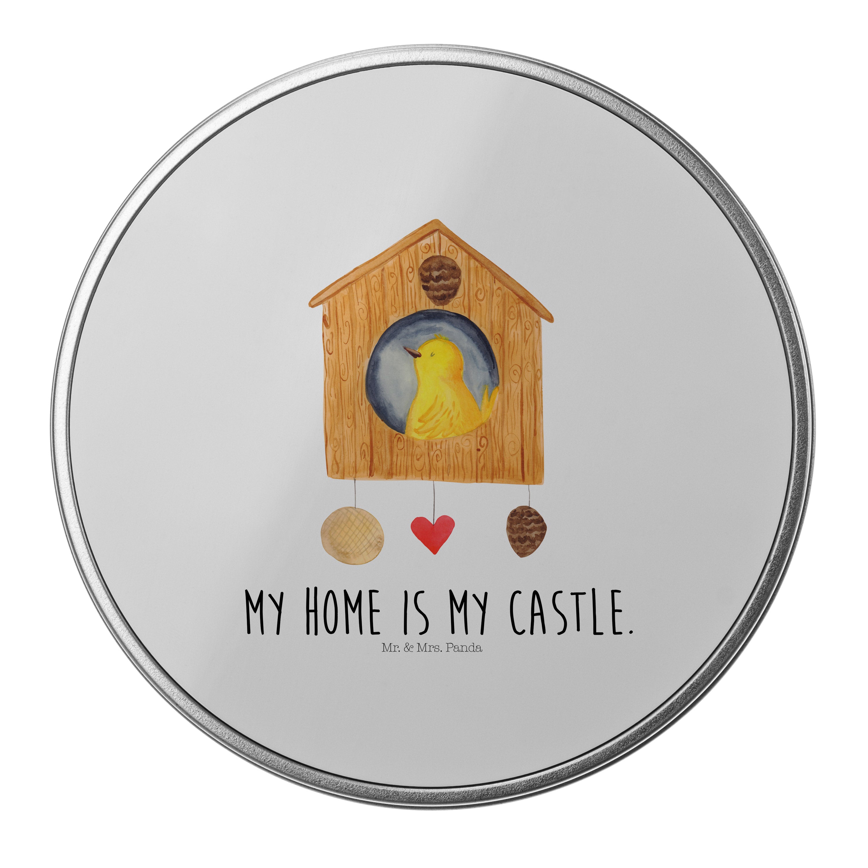Blechdose rund Vogelhaus - mit Spruch - Gelb Pastell