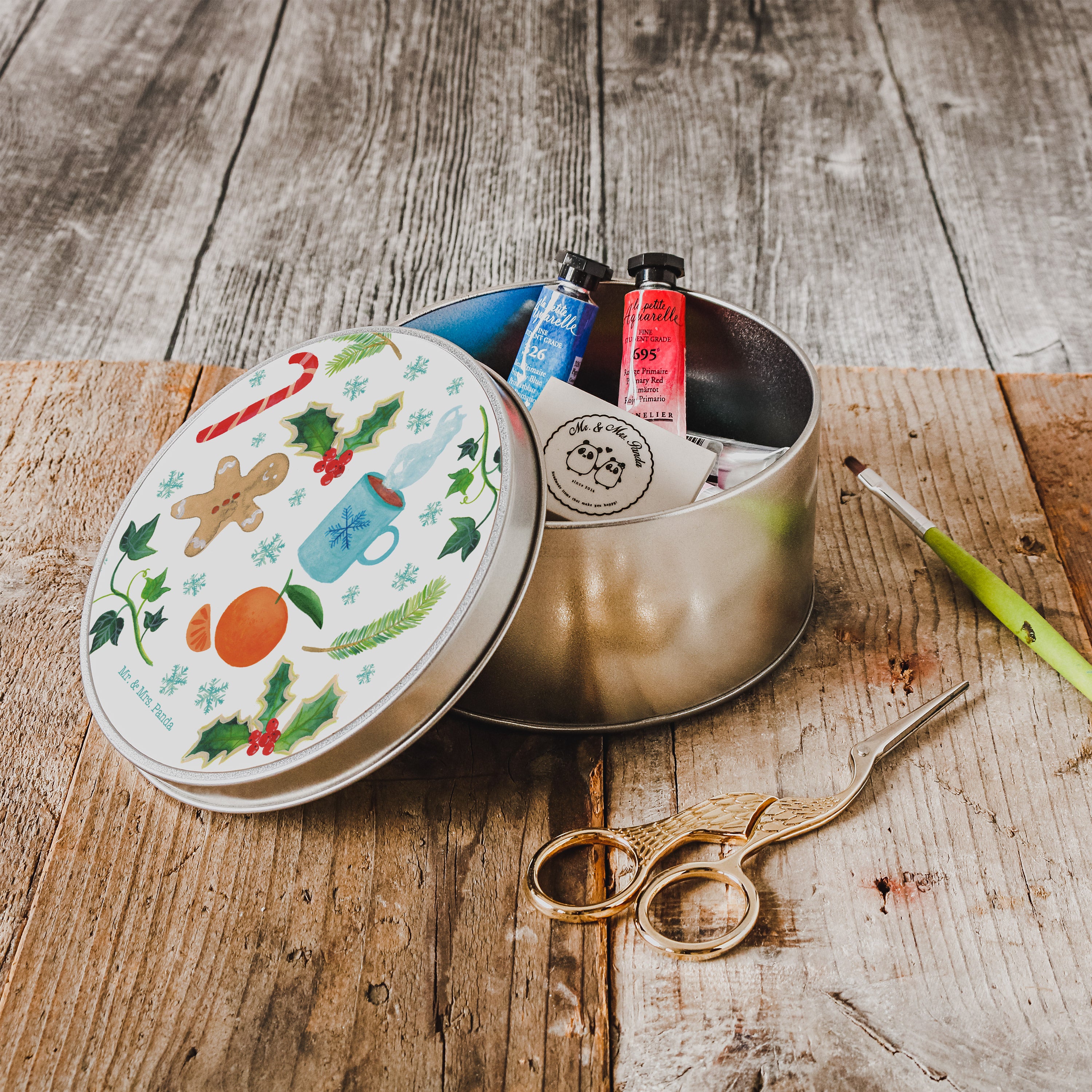 Die Dose kann als Keksdose für die selbstgebackenen Plätzchen während der Weihnachtszeit dienen, als Aufbewahrungsbox für schöne Erinnerungsstücke, als Vorratsdose für Lebensmittel oder als nachhaltige Geschenkbox zum Verschenken verwendet werden.