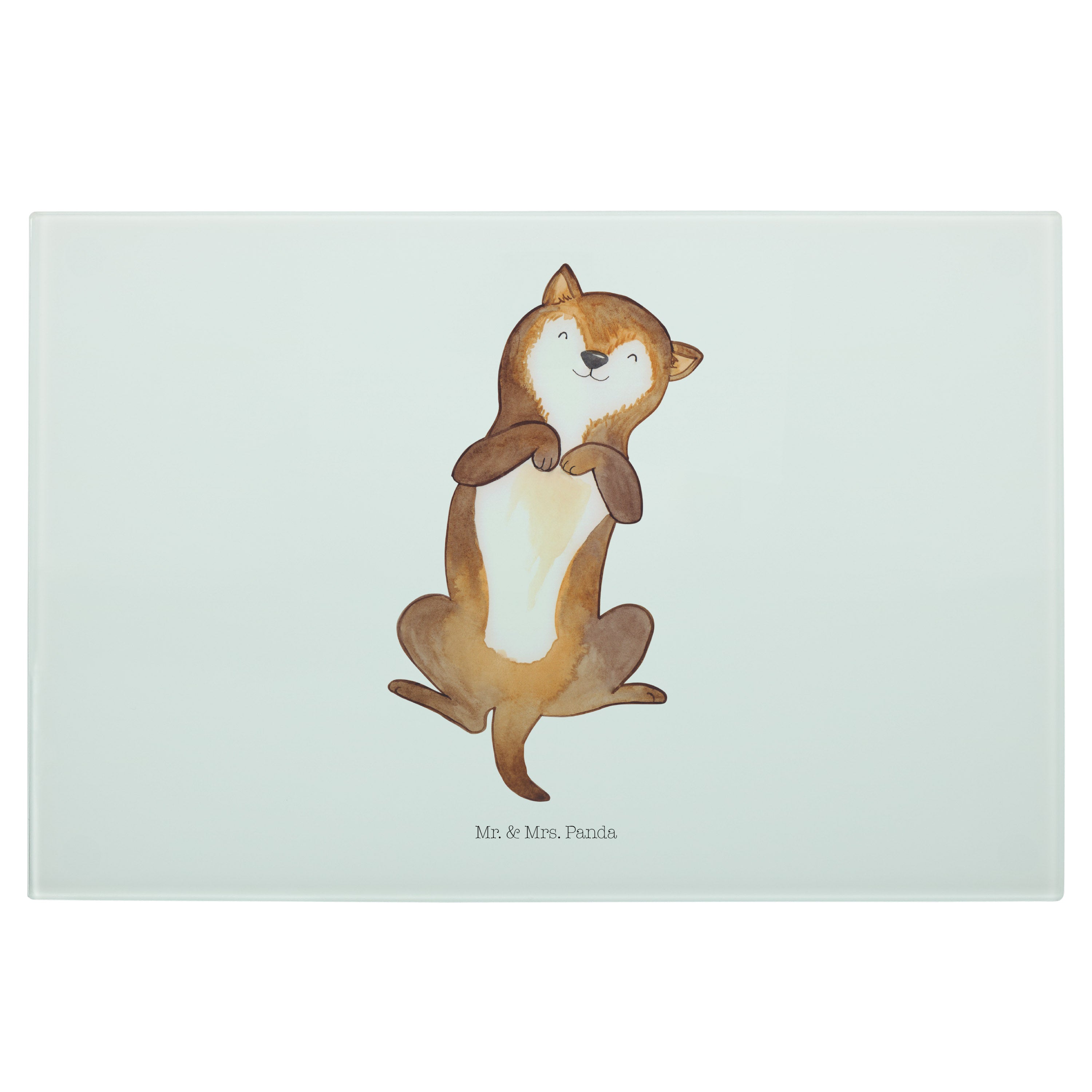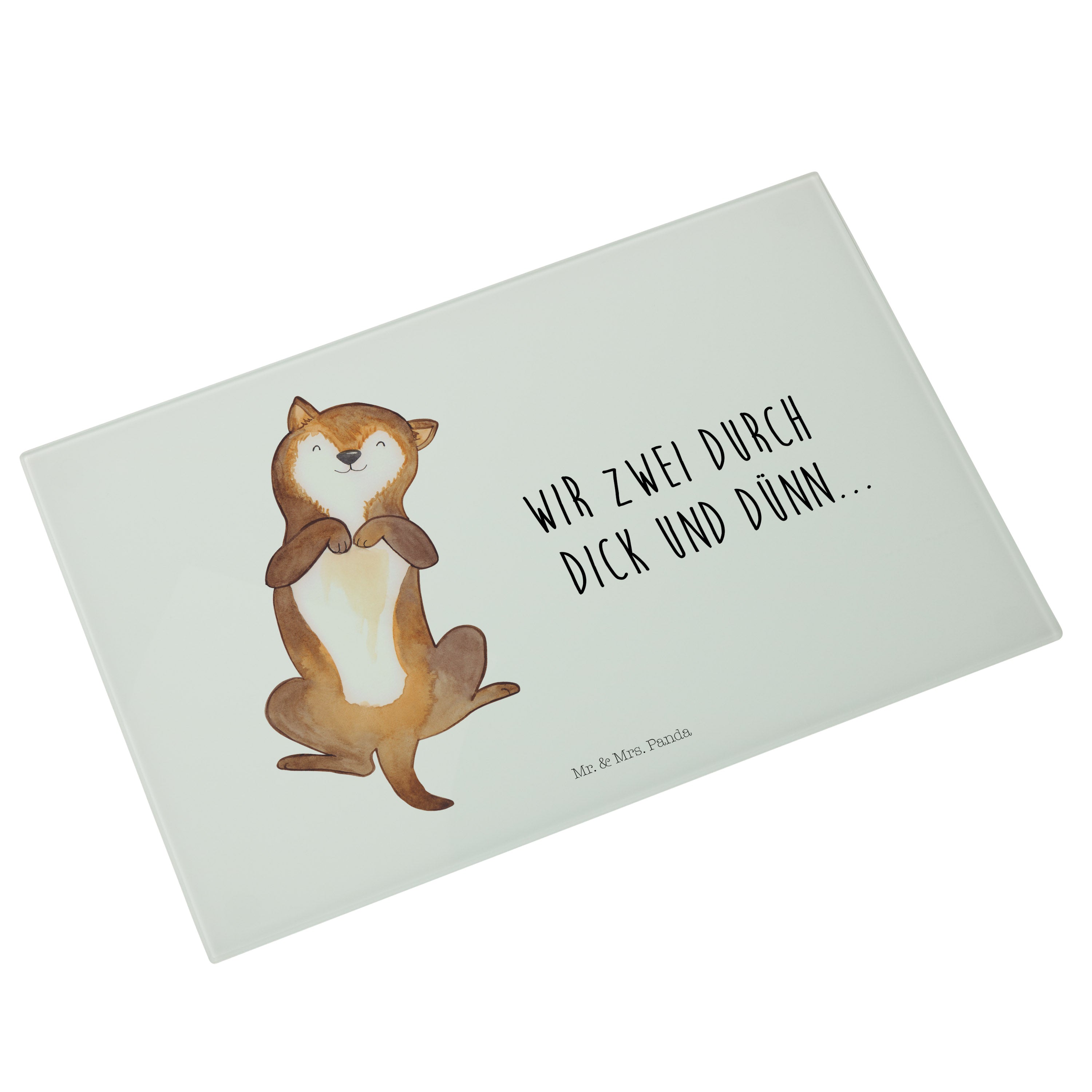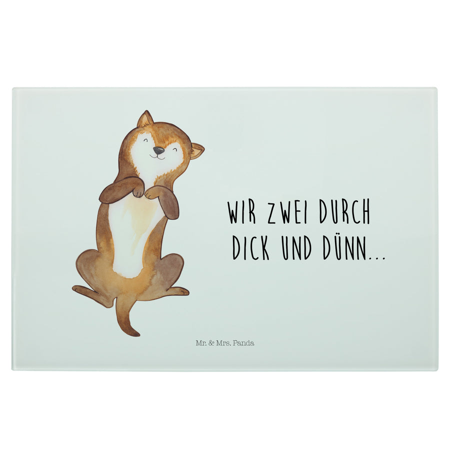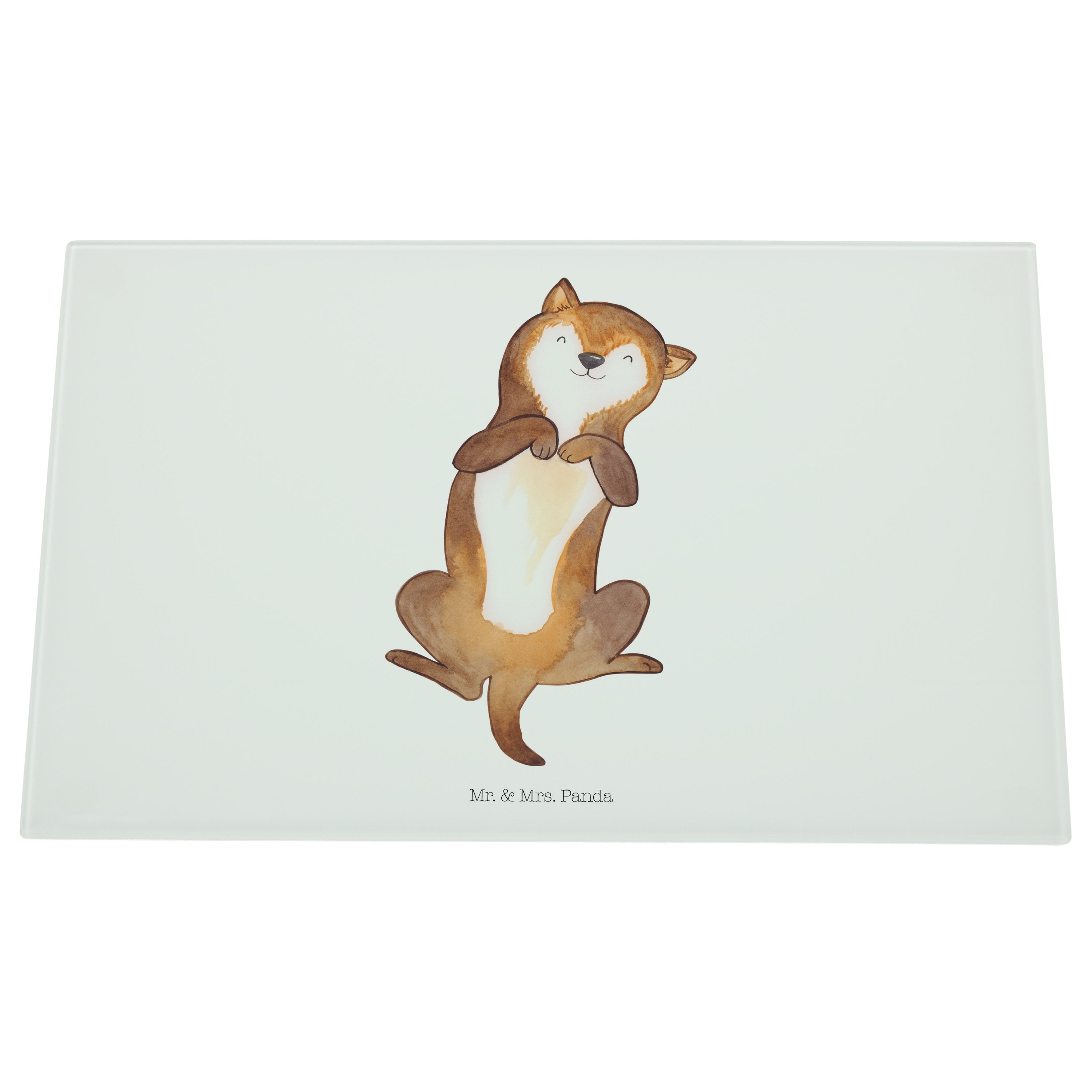 Medium Glas Schneidbrett Hund Bauchkraulen - mit Spruch - Weiß