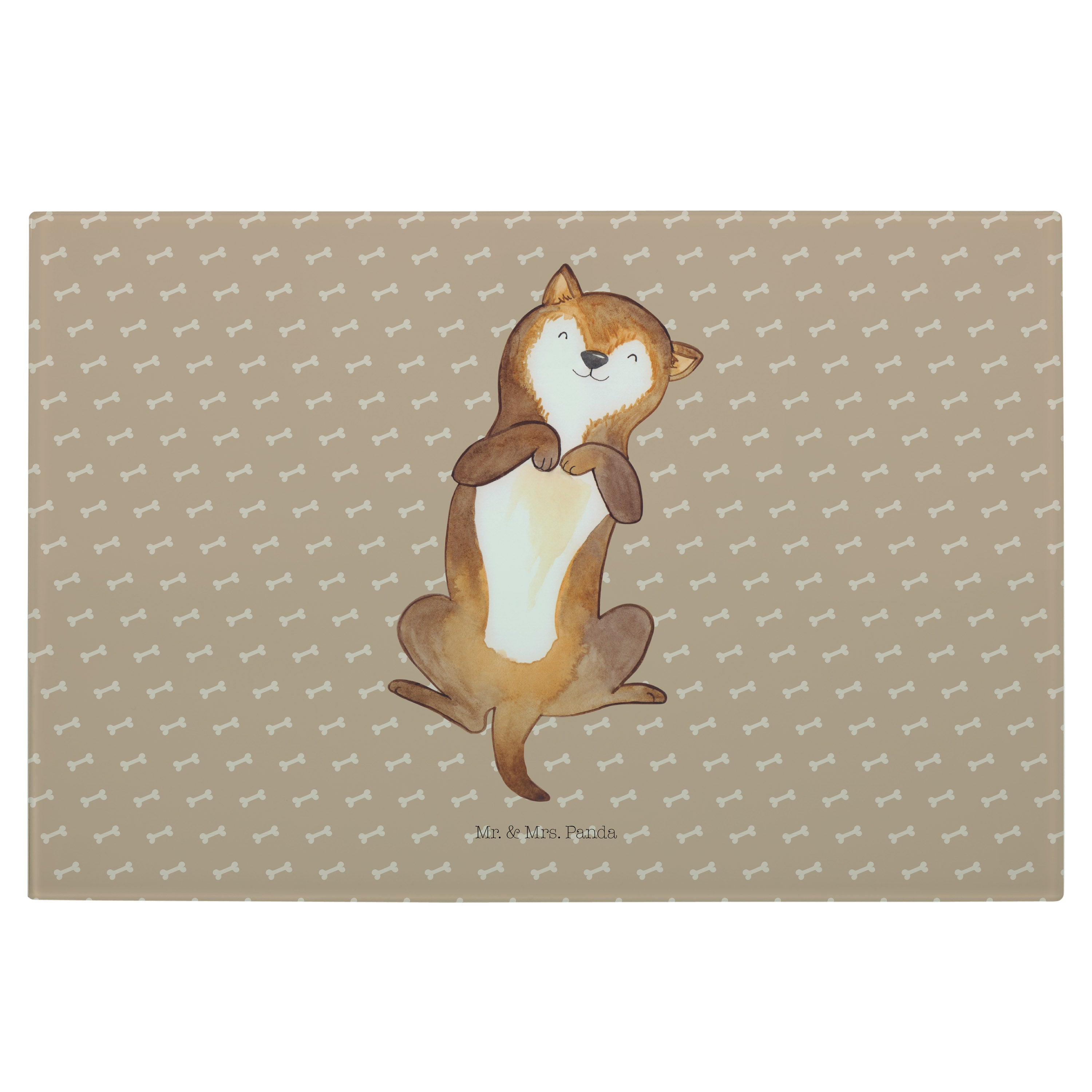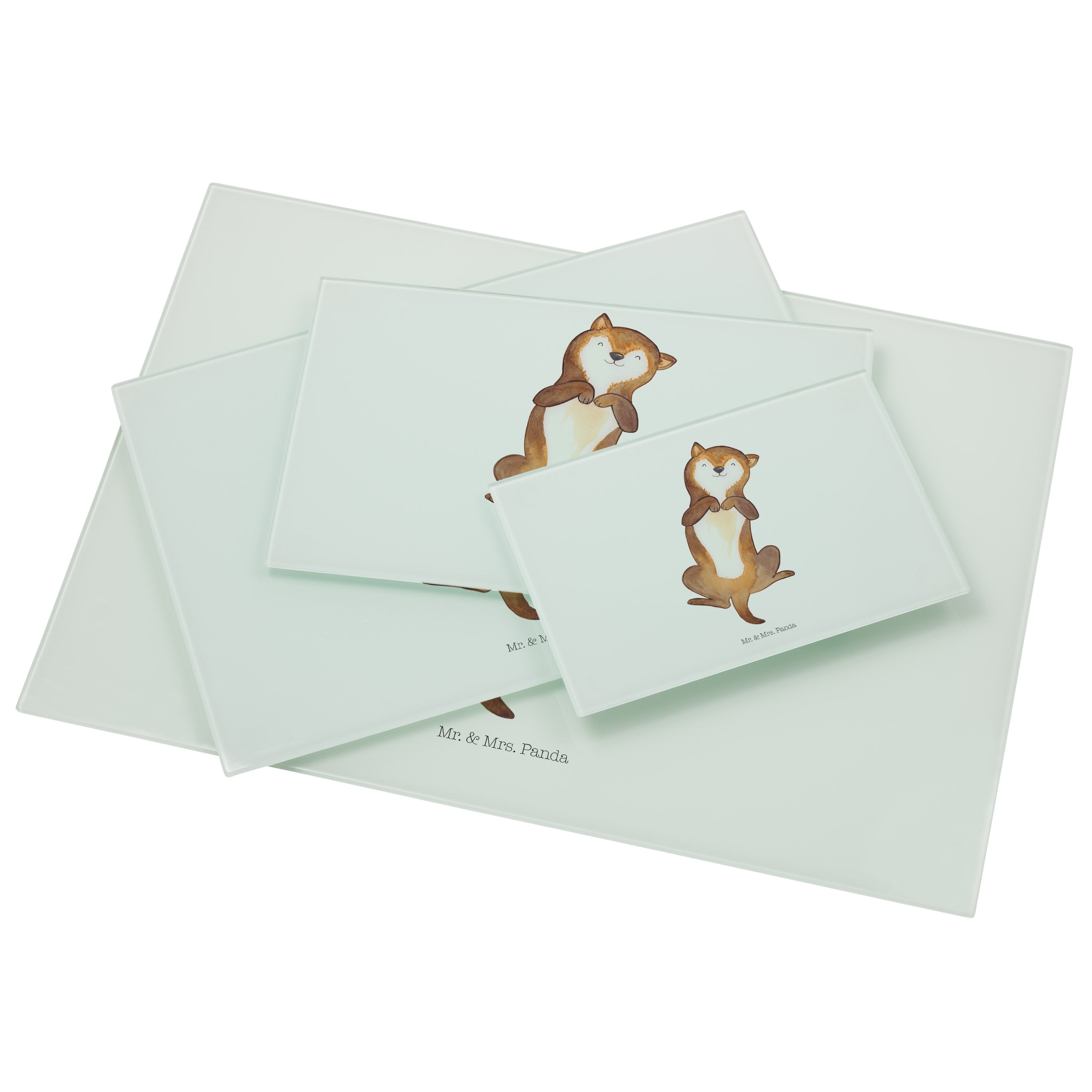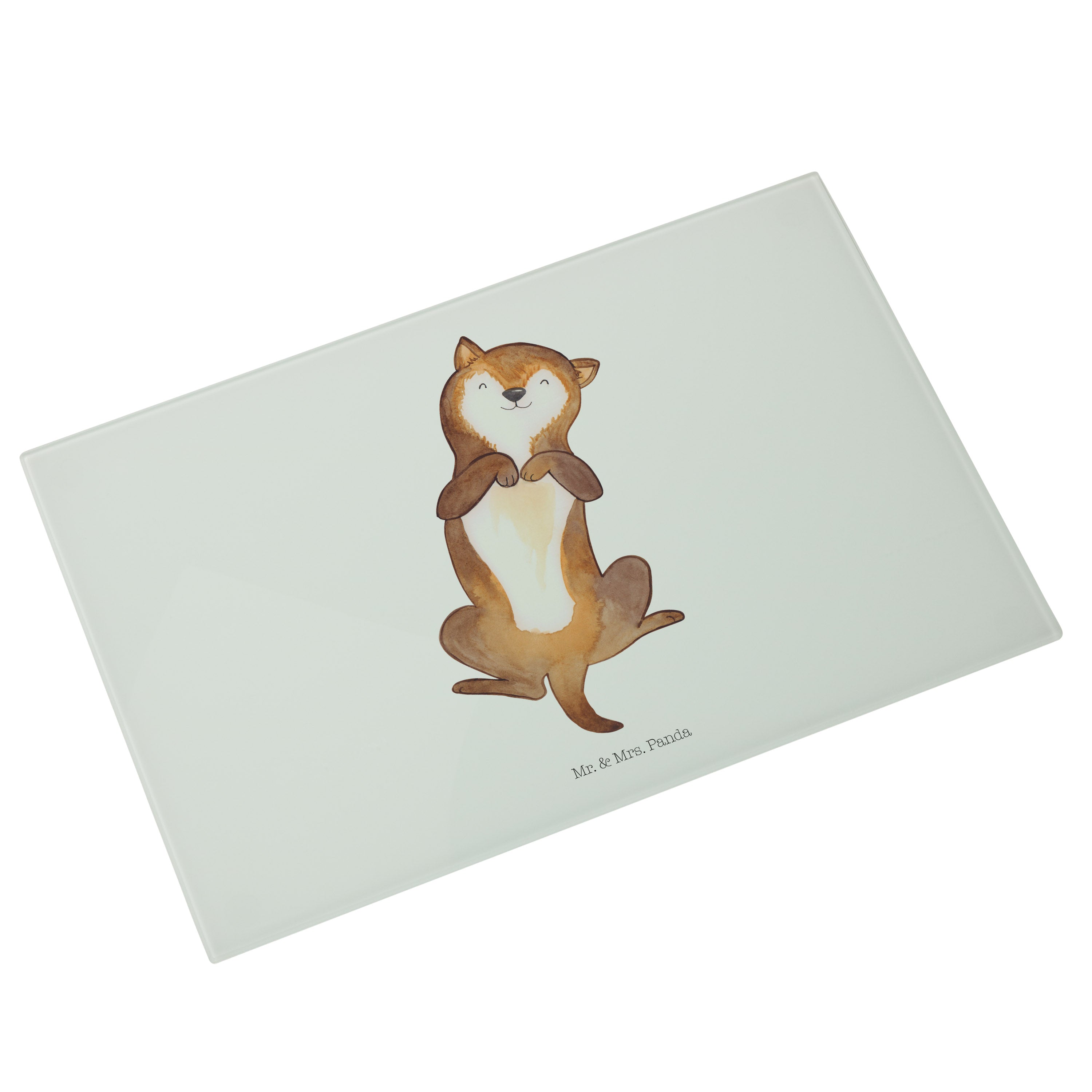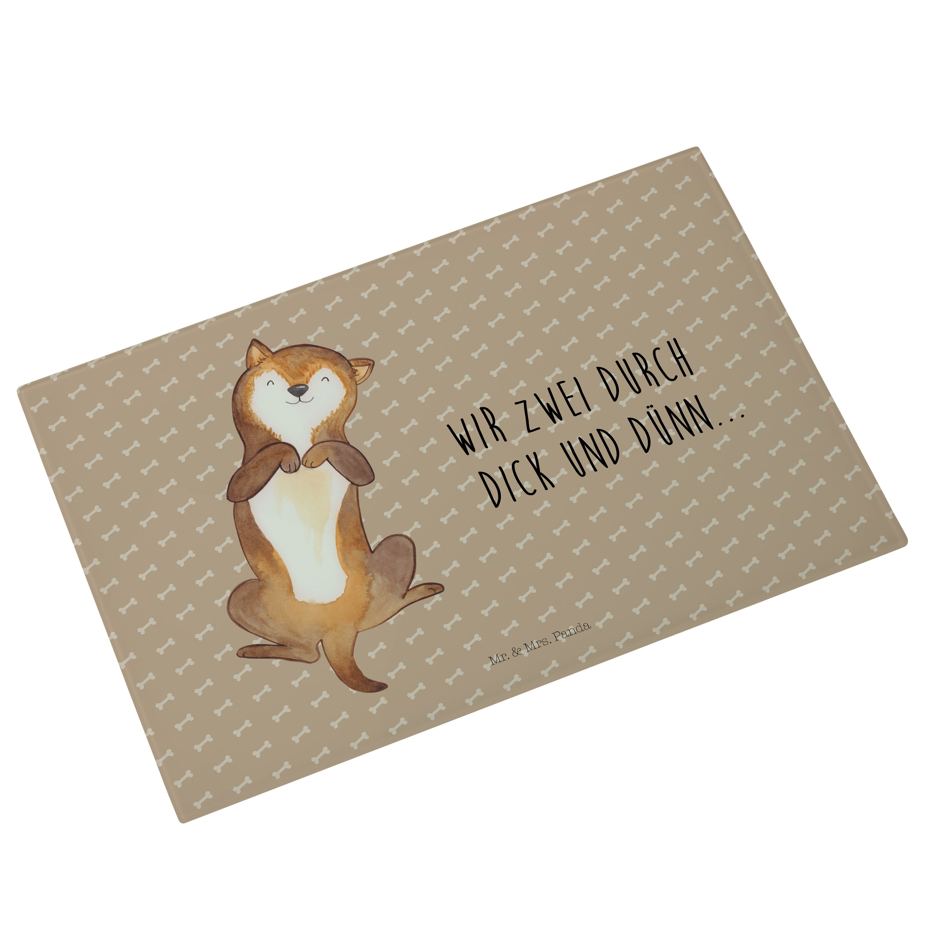 Medium Glas Schneidbrett Hund Bauchkraulen - mit Spruch - Weiß