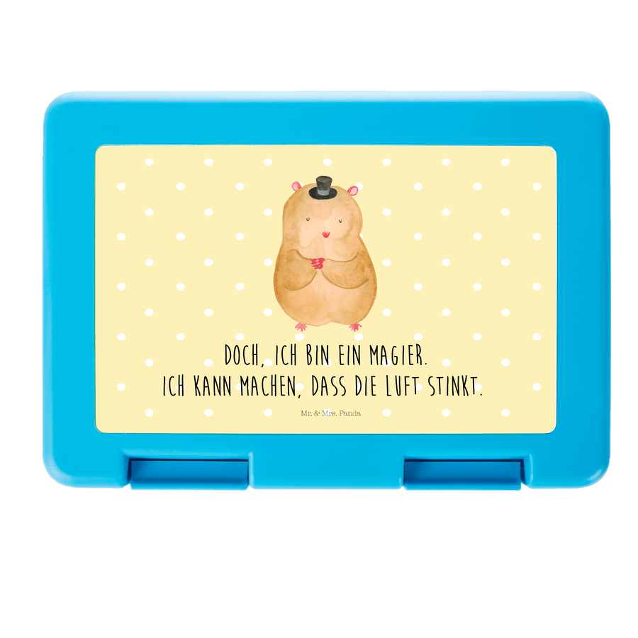 Brotdose Hamster mit Hut - mit Spruch - Gelb Pastell