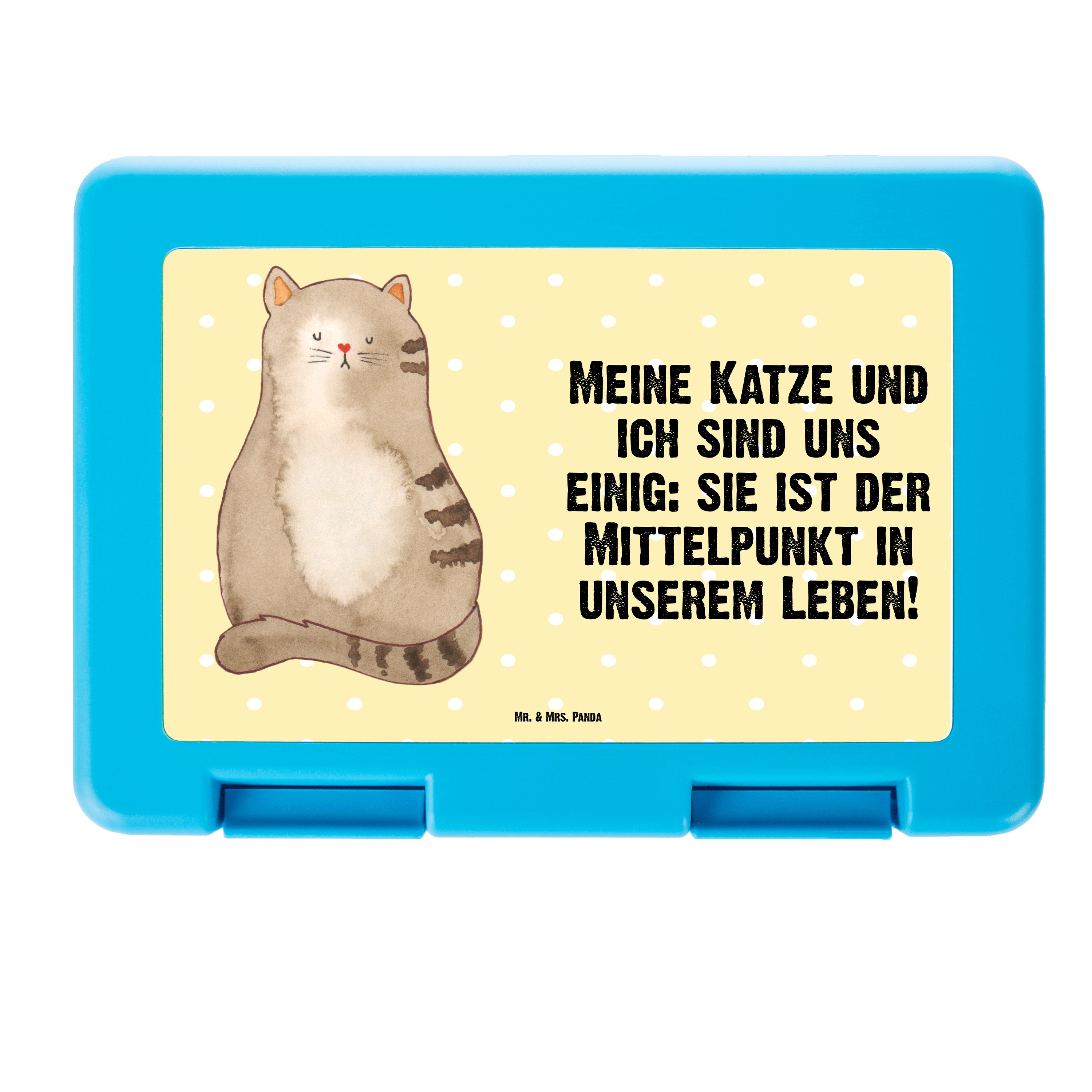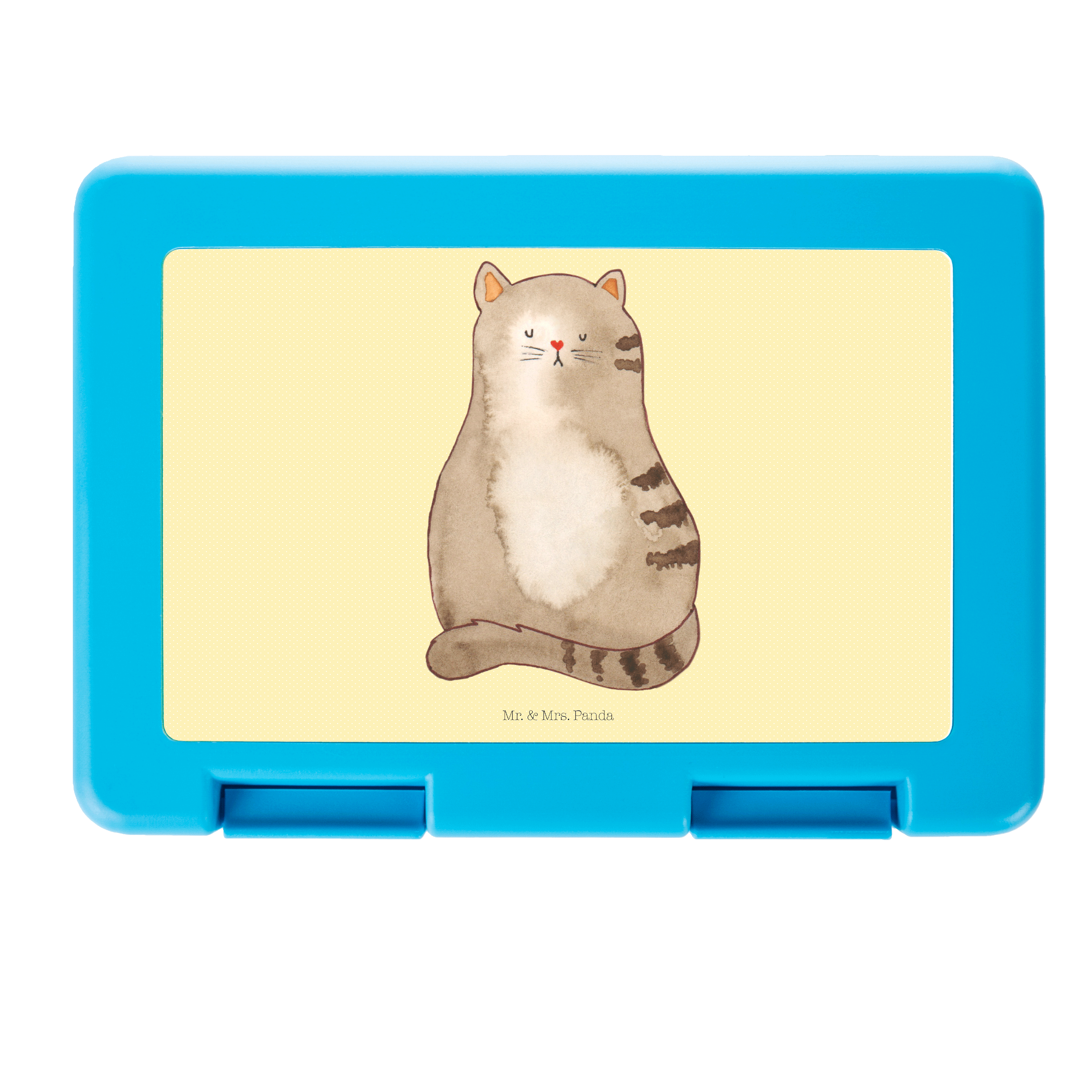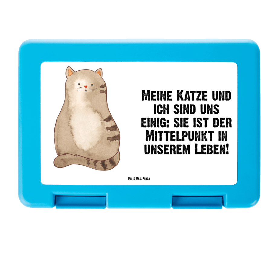 Brotdose Katze sitzend - mit Spruch - Weiß