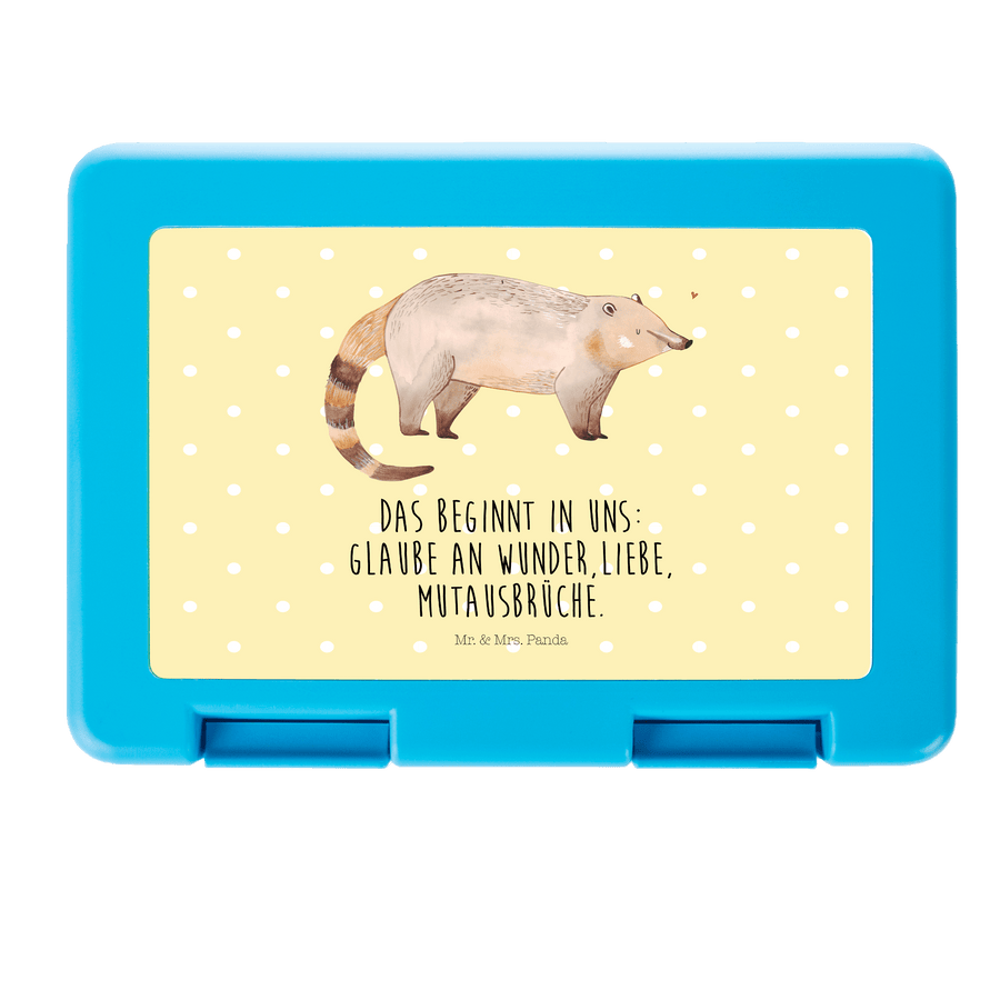 Brotdose Nasenbär - mit Spruch - Gelb Pastell