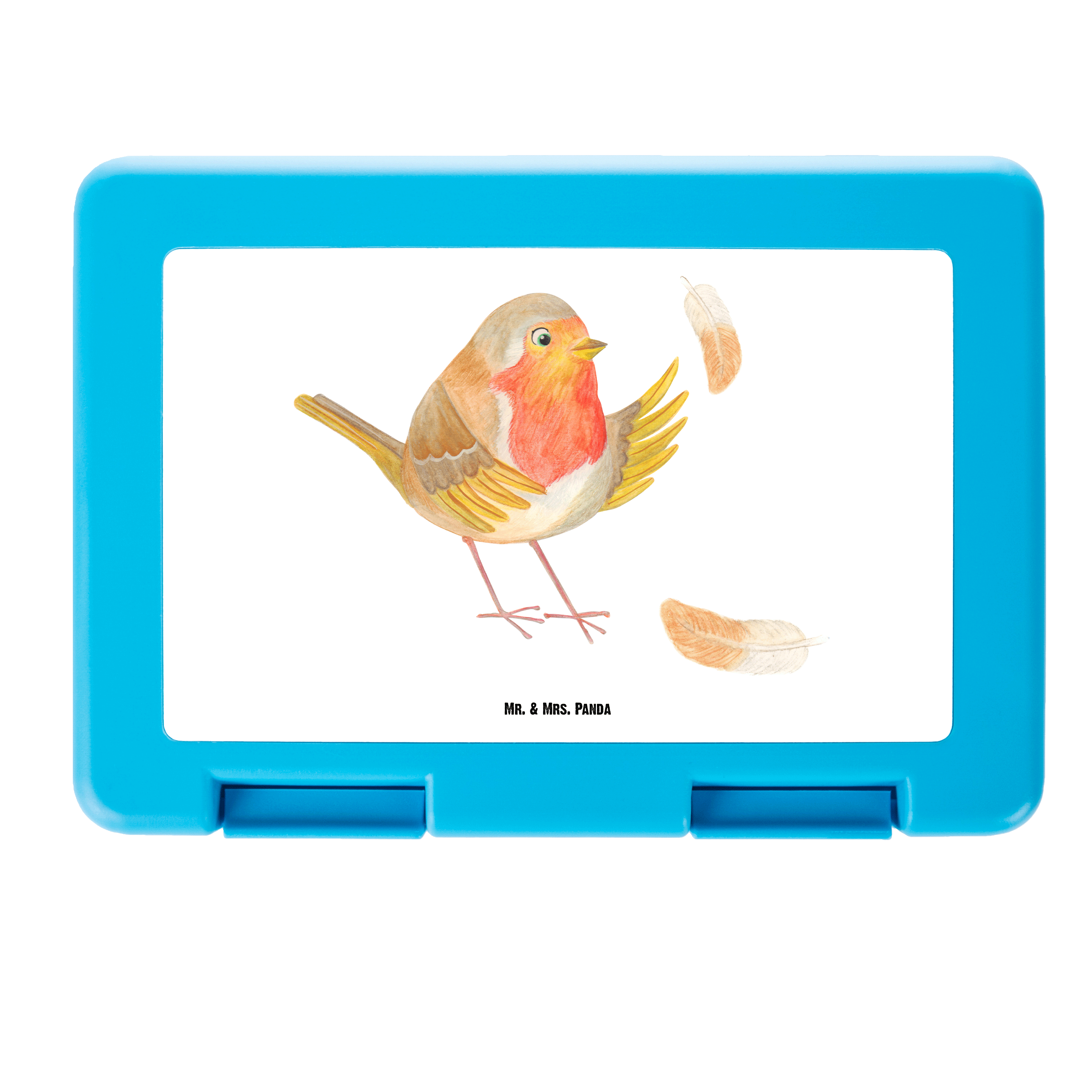 Brotdose Rotkehlchen mit Federn - mit Spruch - Weiß