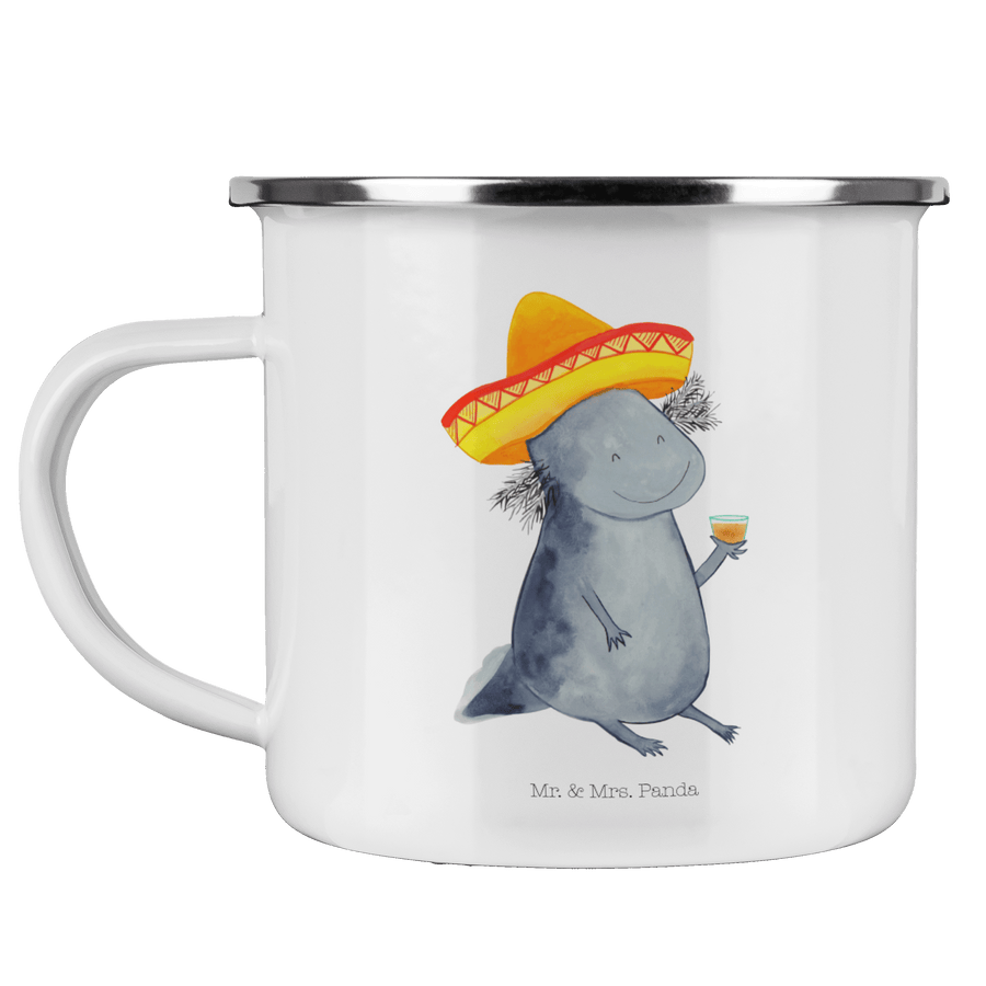 Camping Emaille Tasse Axolotl Tequila - ohne Spruch - Weiß