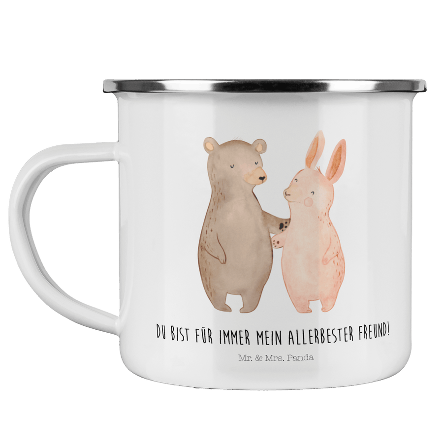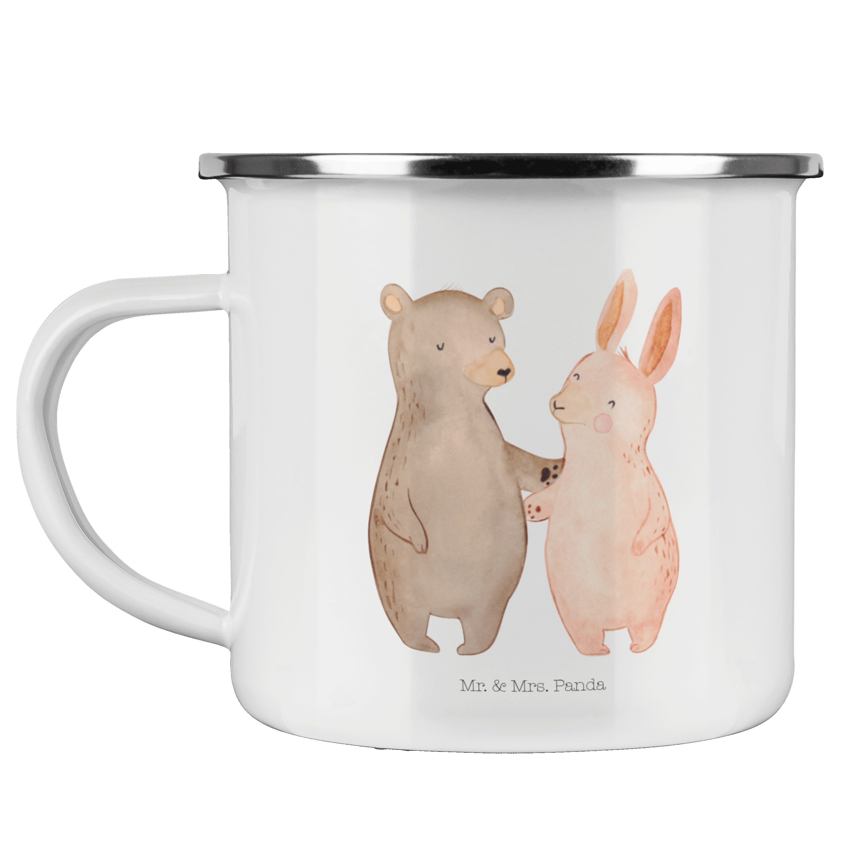 Camping Emaille Tasse Bär Hase Umarmen - mit Spruch - Weiß
