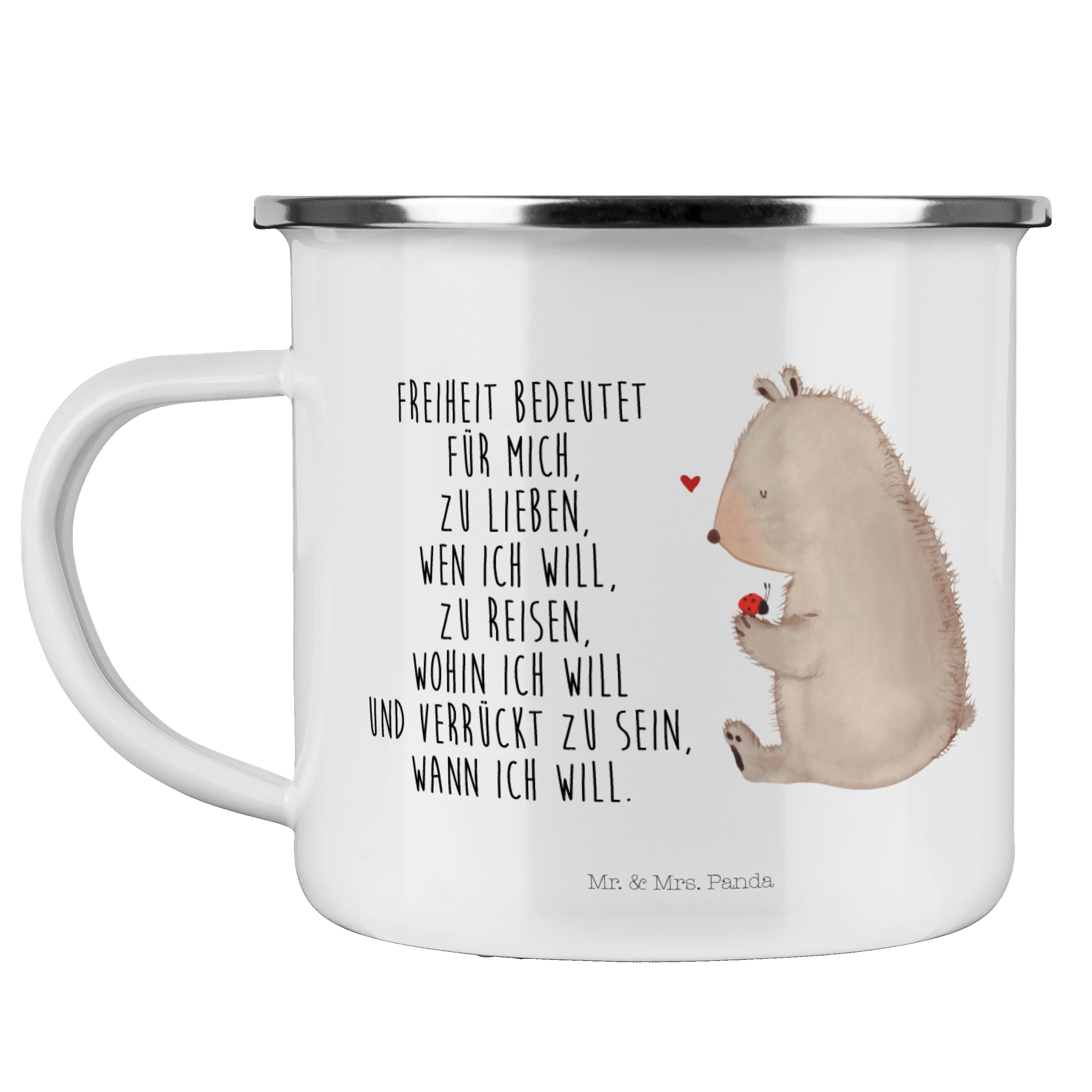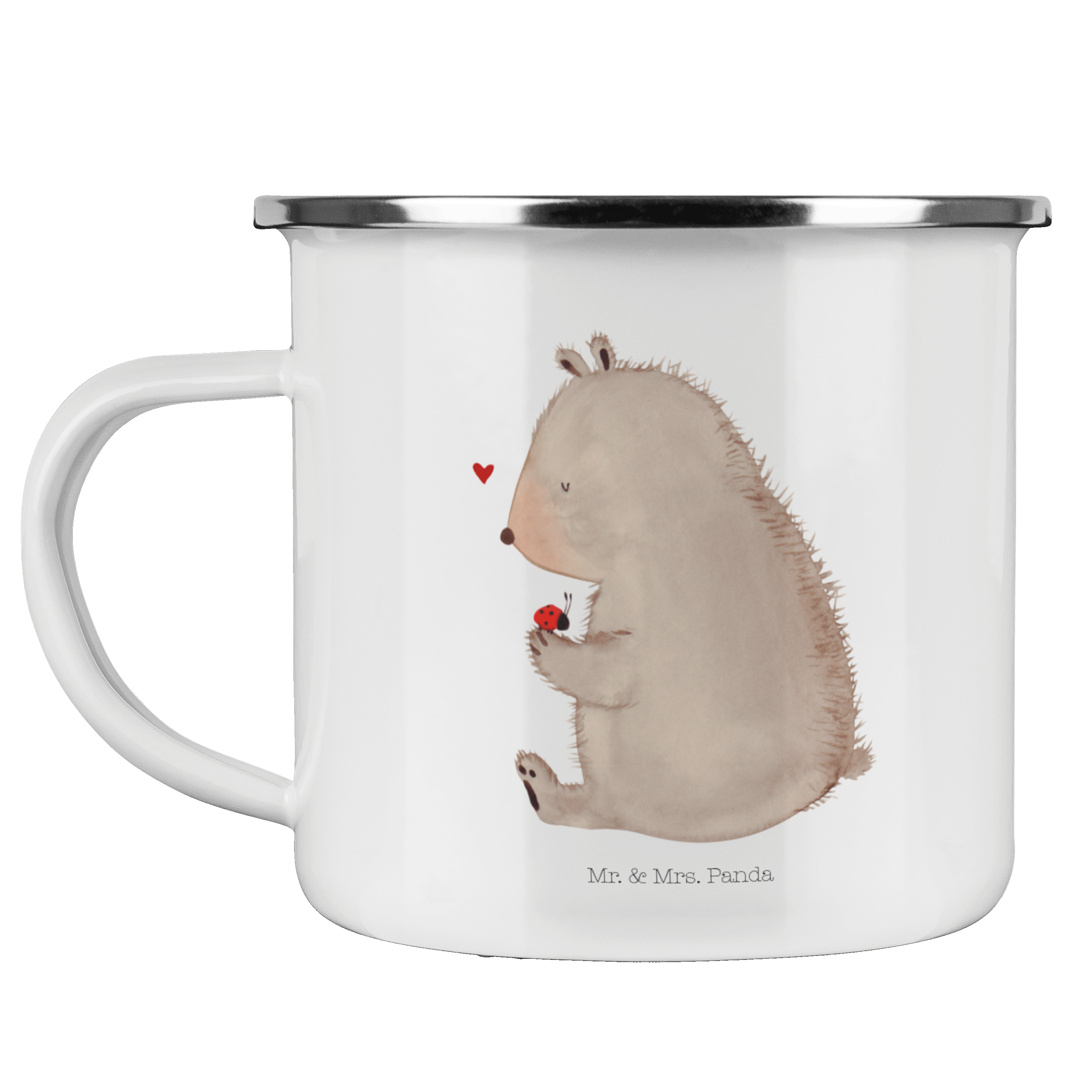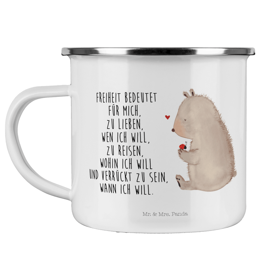 Camping Emaille Tasse Bär mit Marienkäfer - mit Spruch