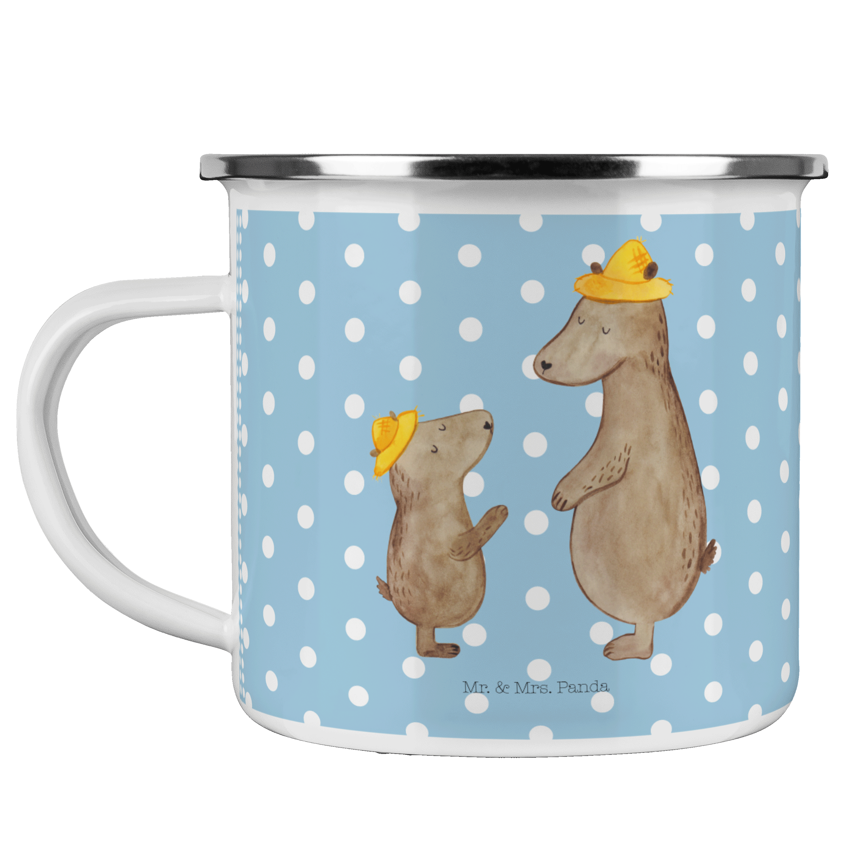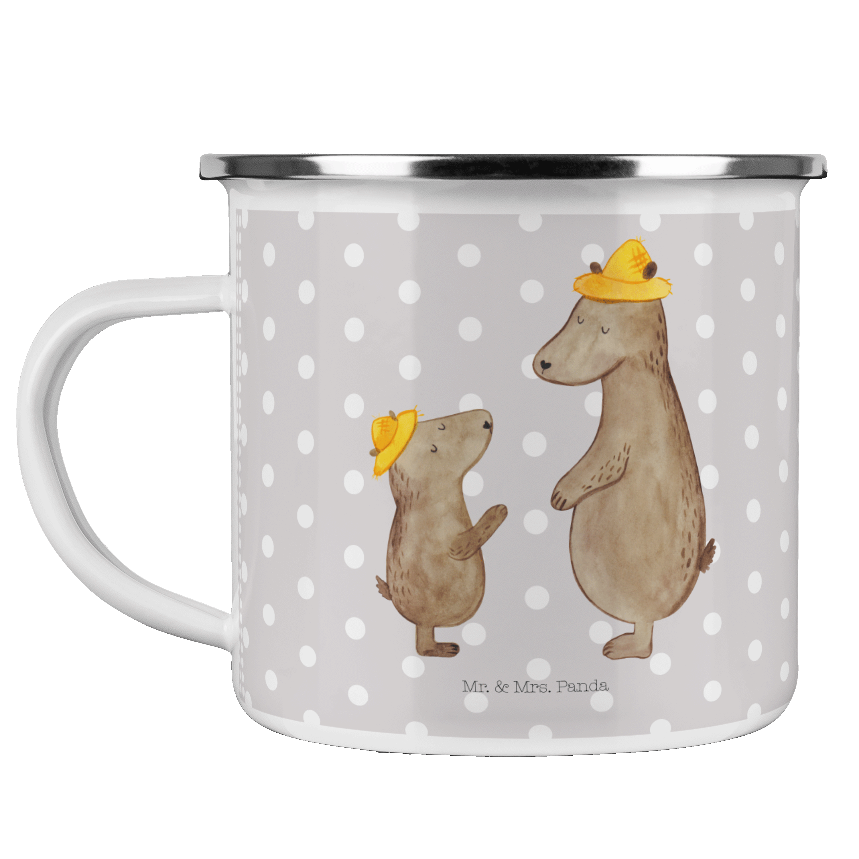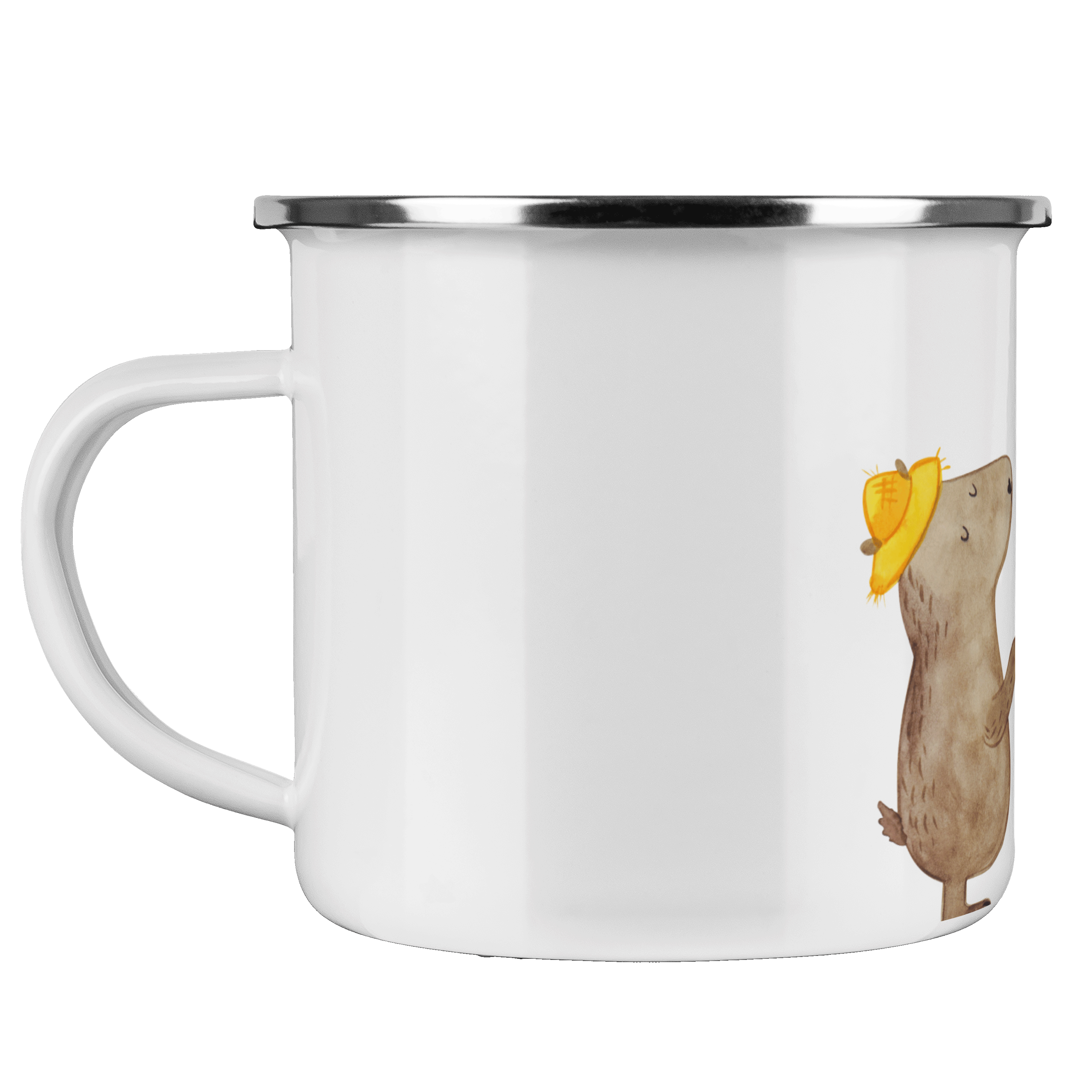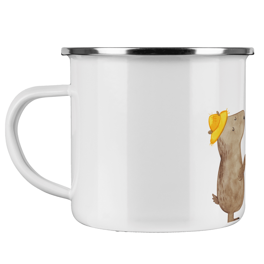 Camping Emaille Tasse Bären mit Hut - mit Spruch - Weiß