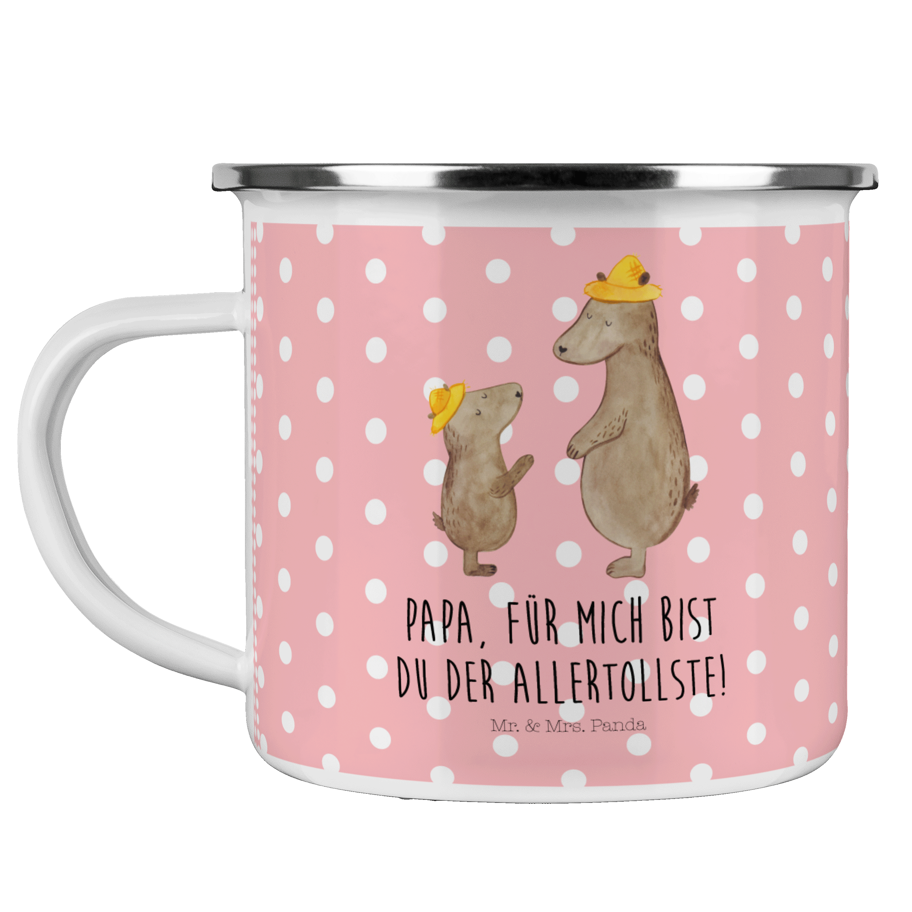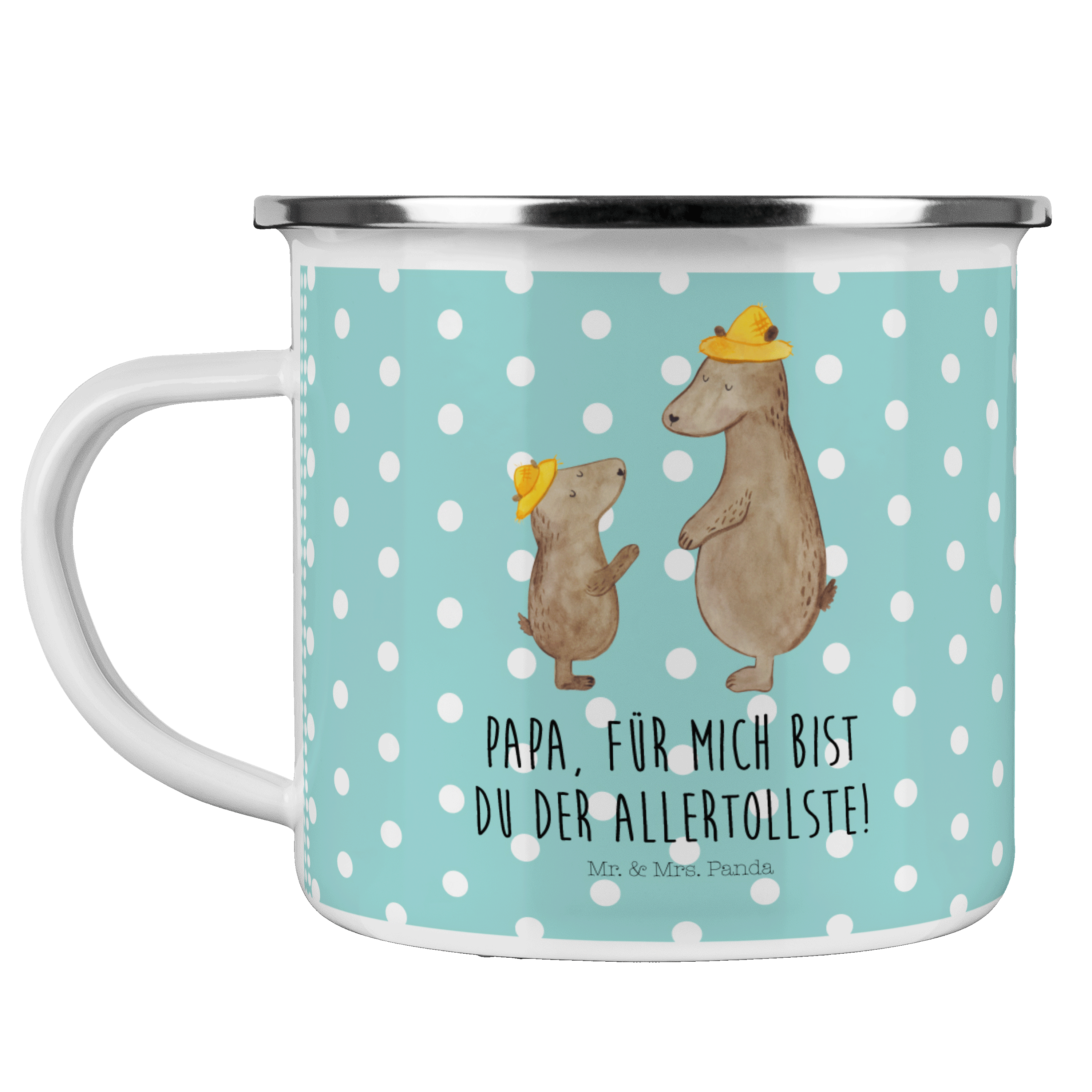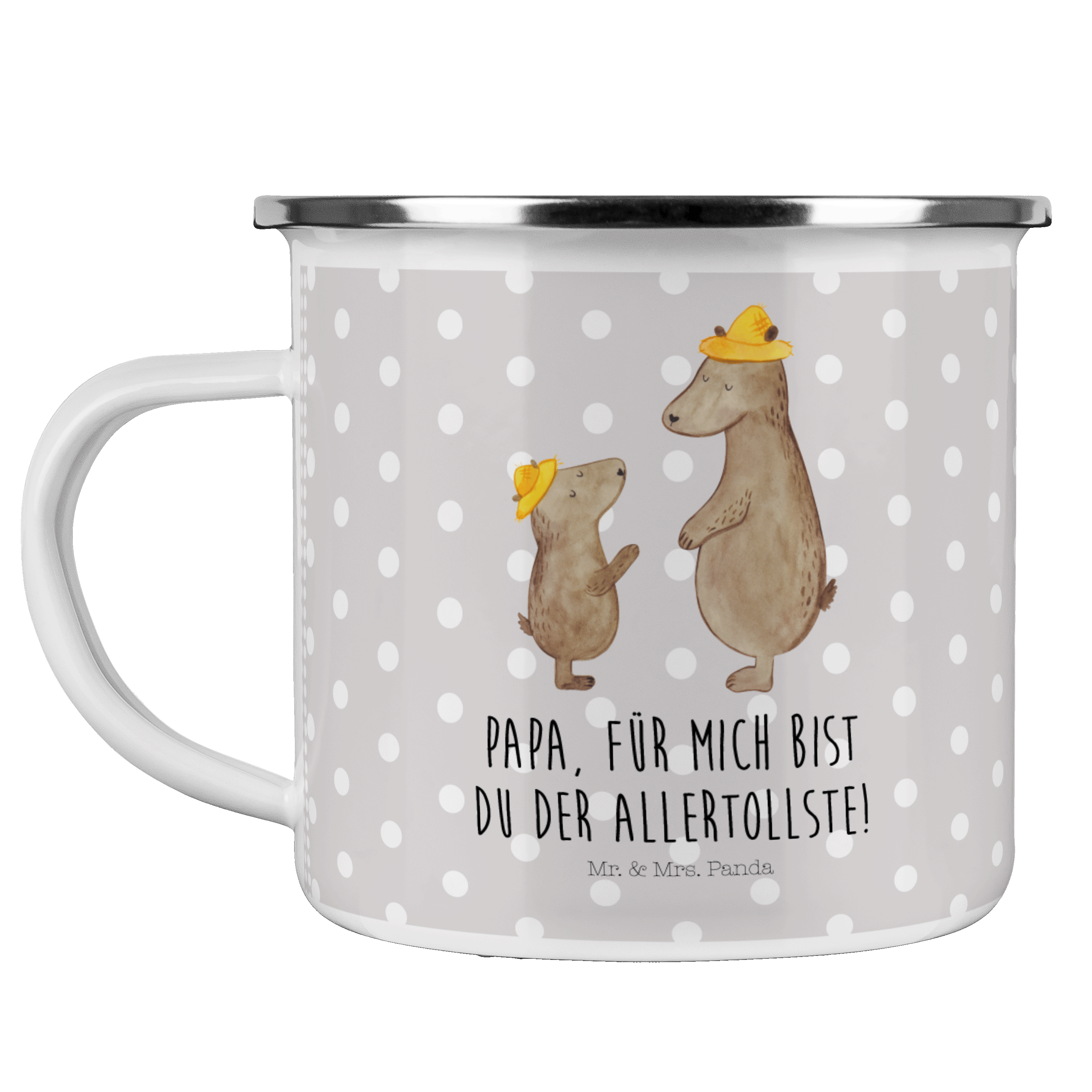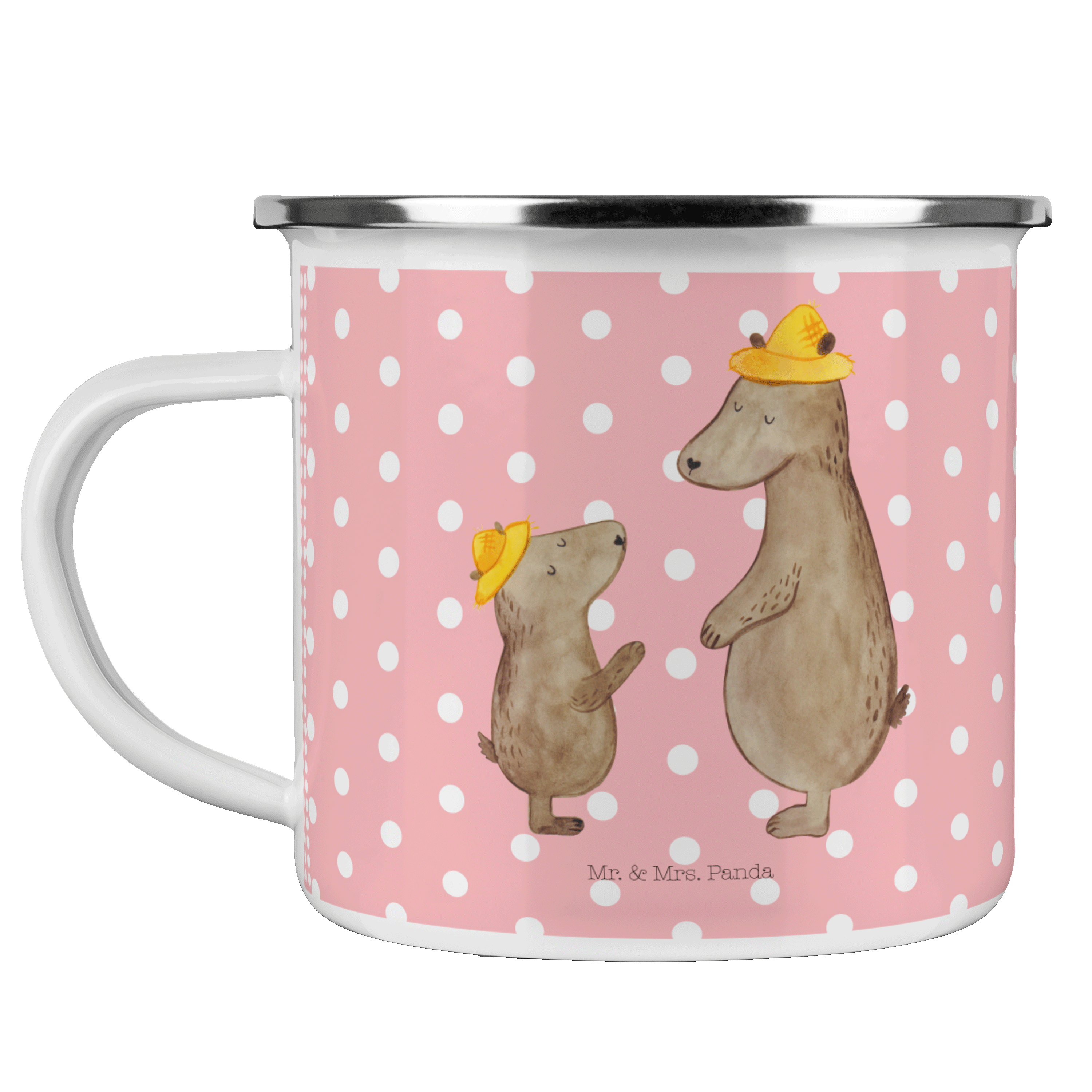 Camping Emaille Tasse Bären mit Hut - mit Spruch - Weiß