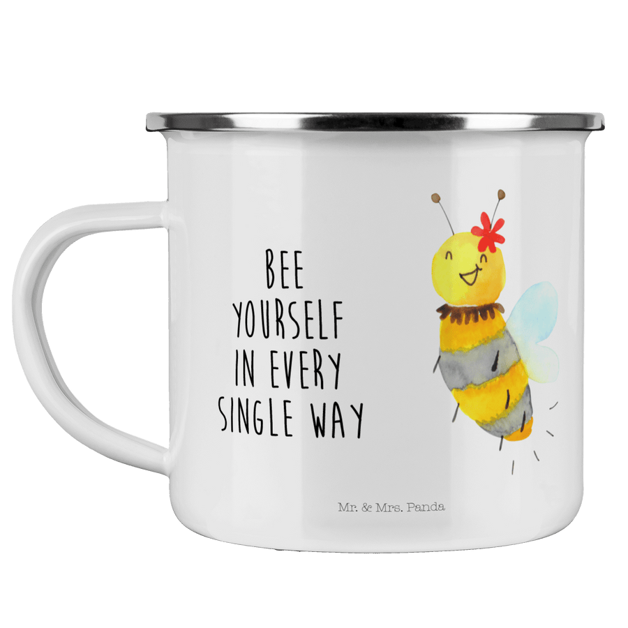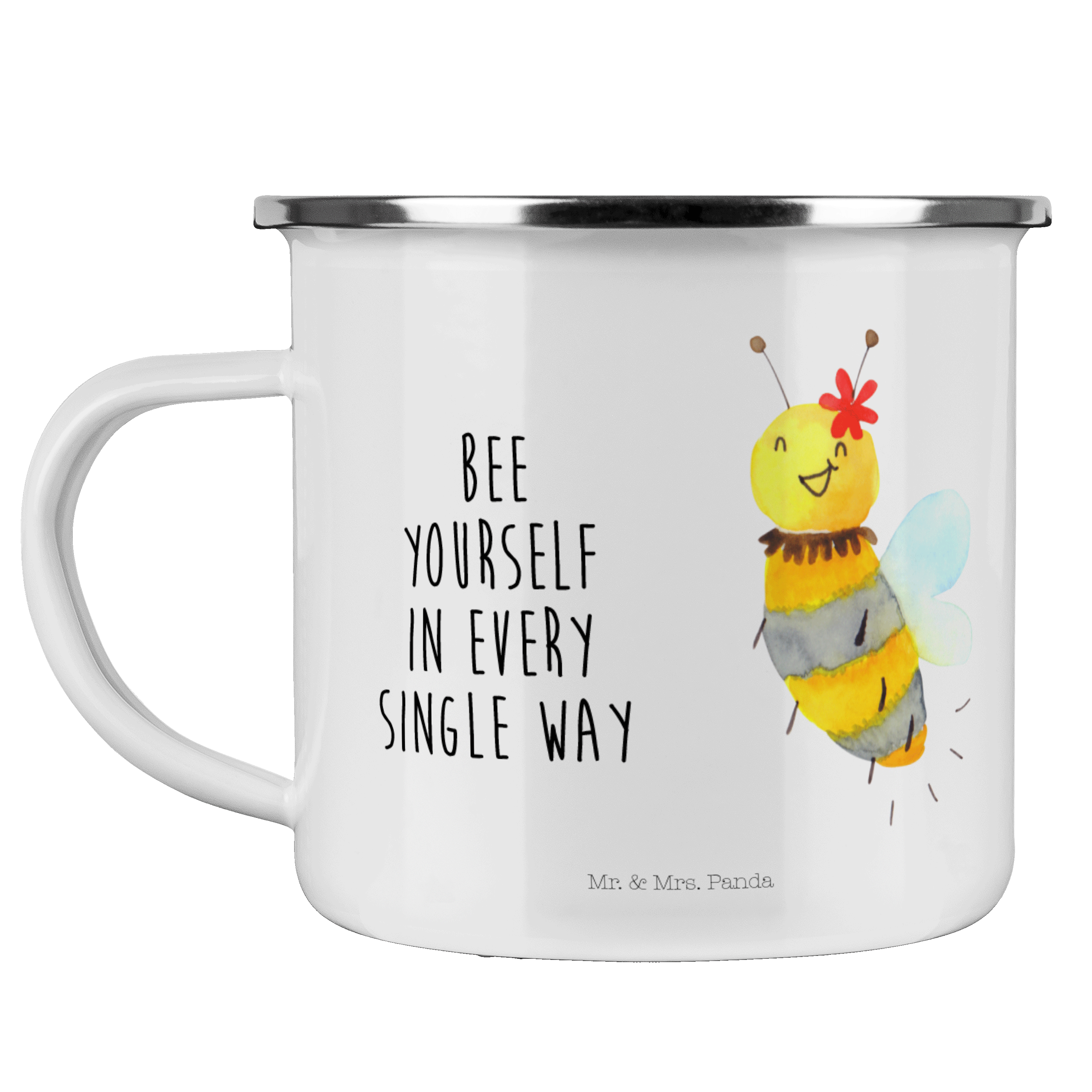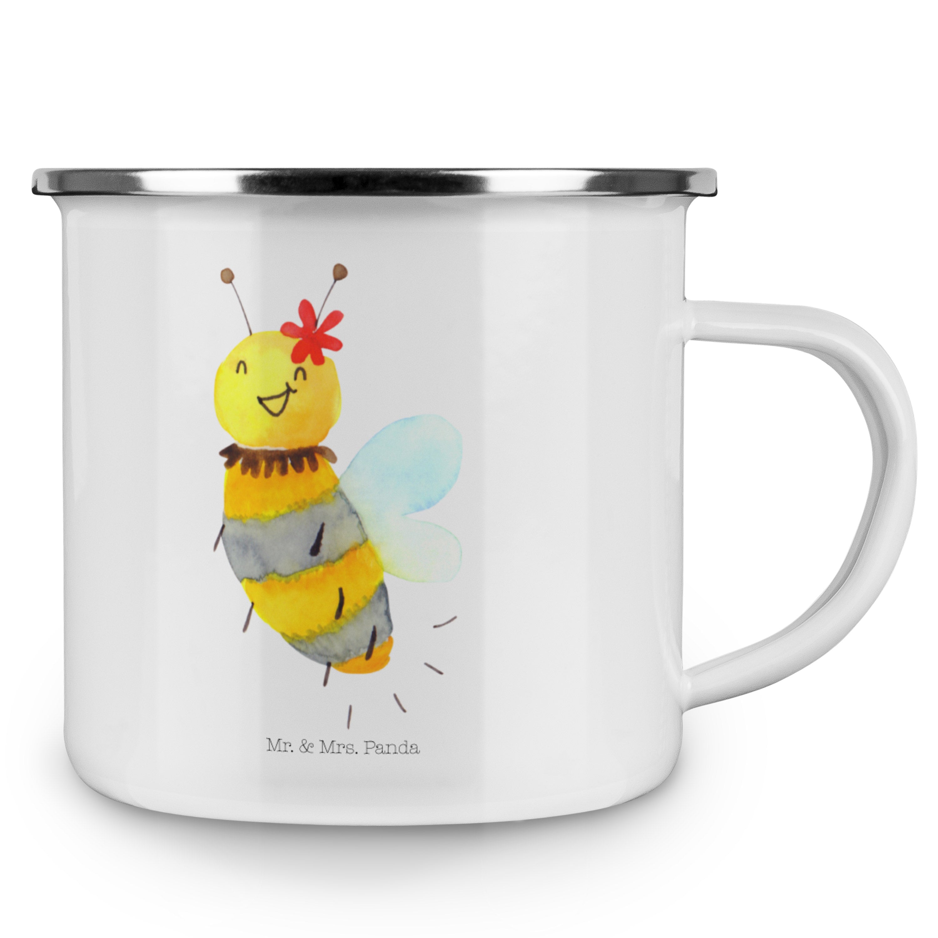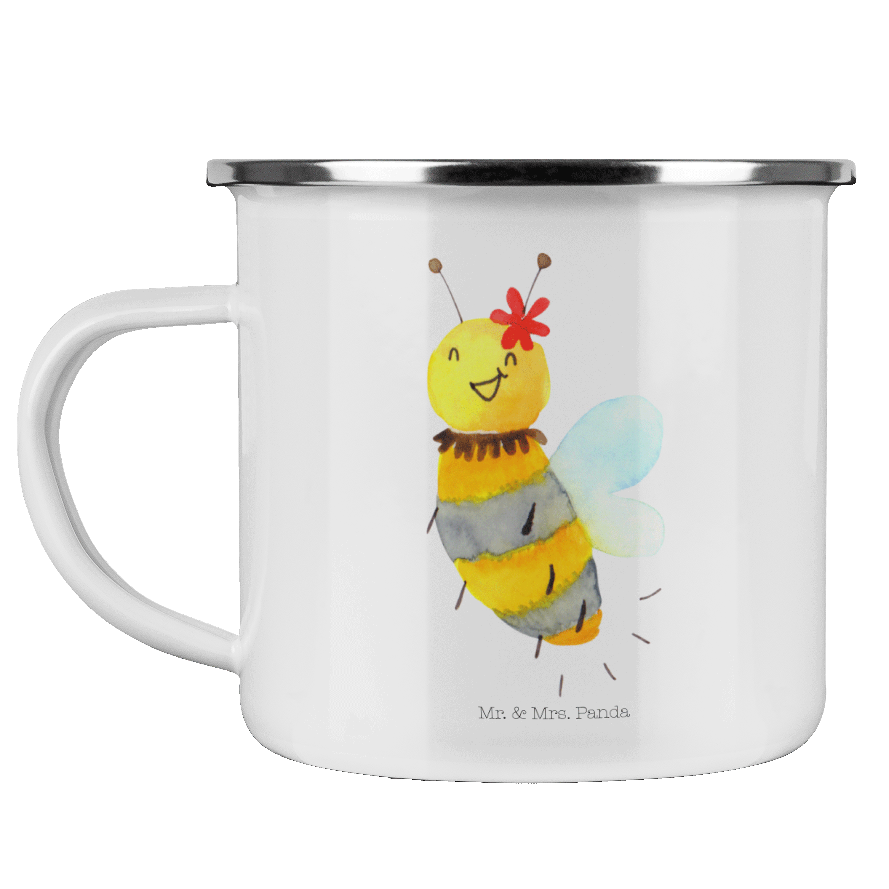 Camping Emaille Tasse Biene Blume - mit Spruch - Weiß