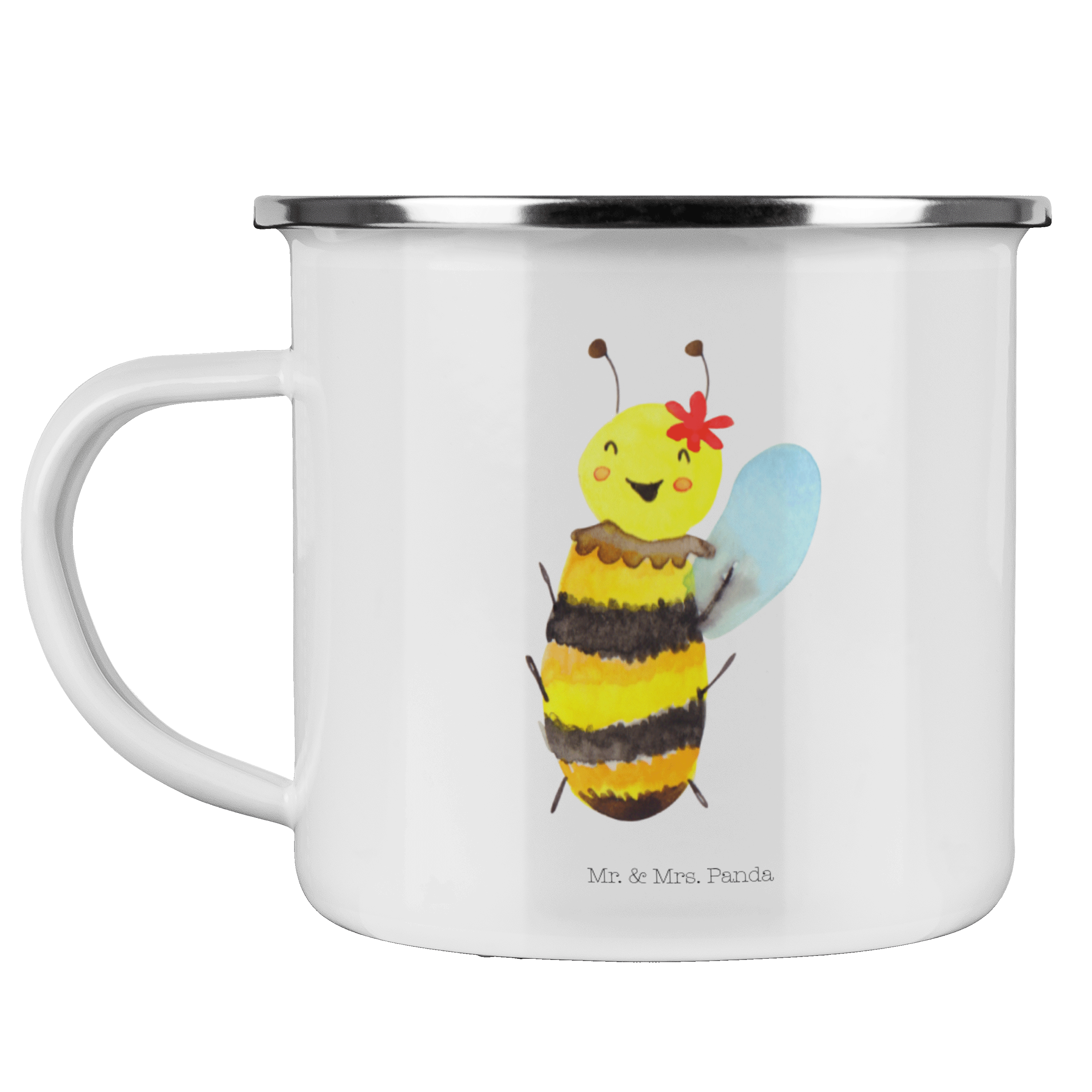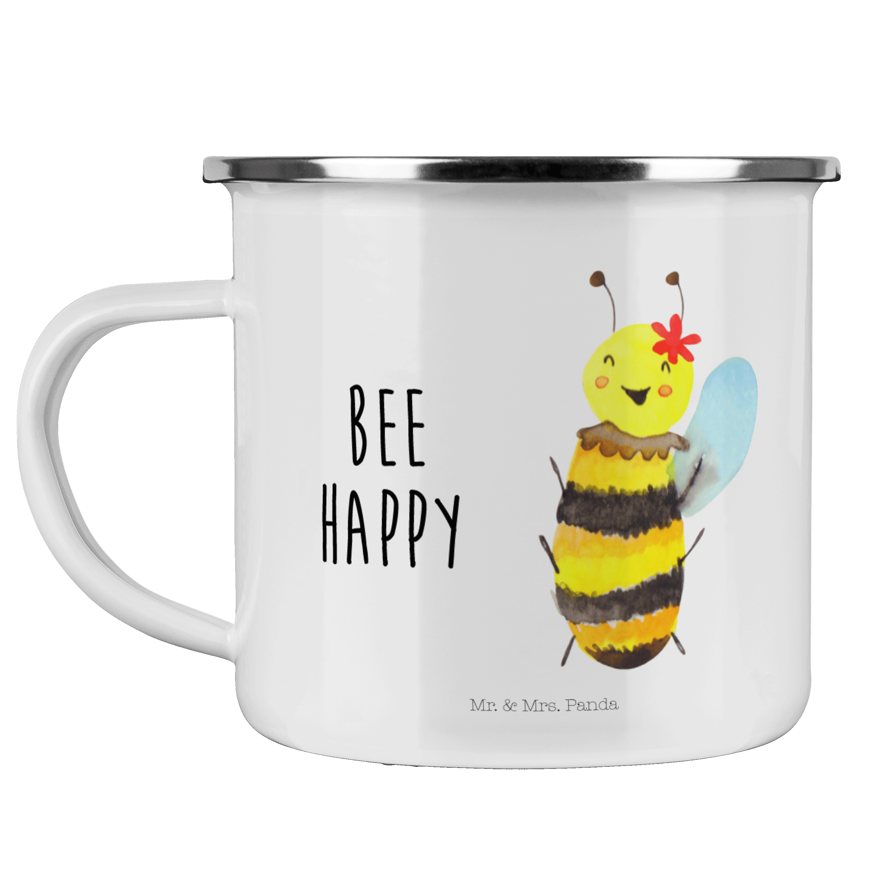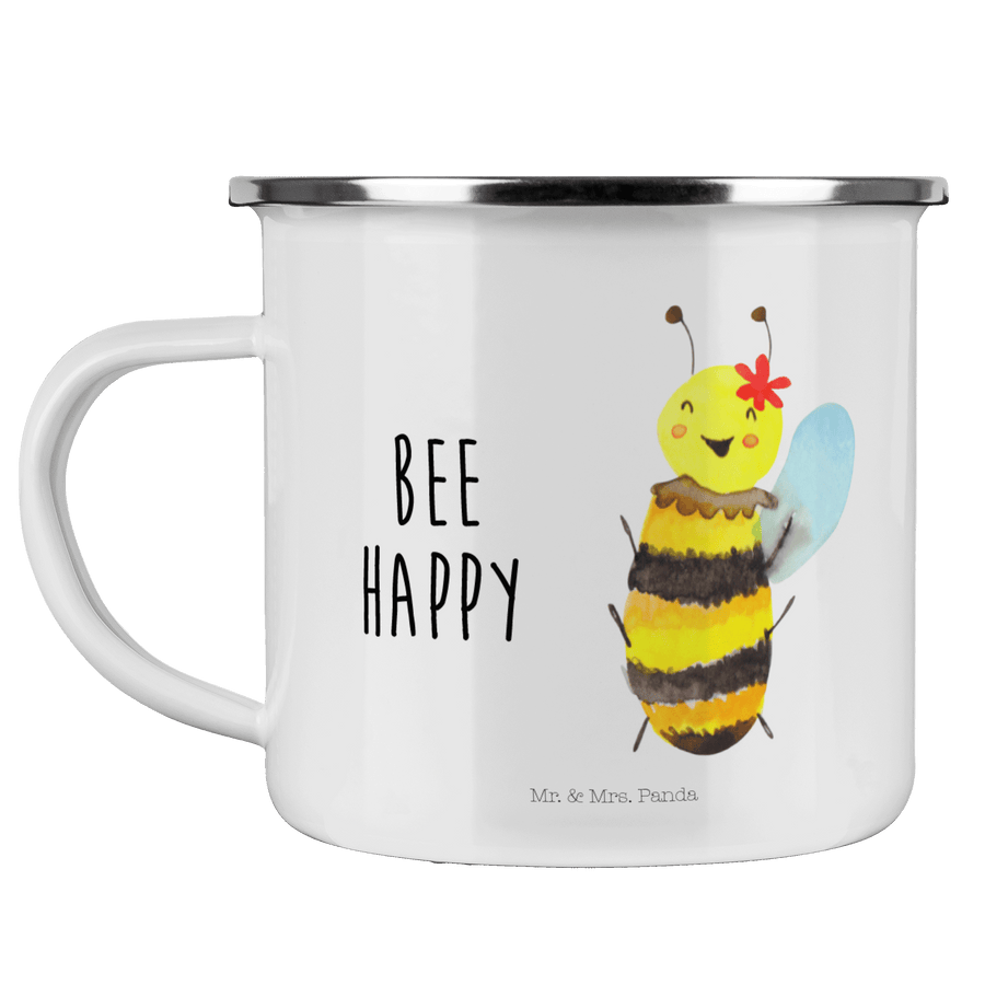 Camping Emaille Tasse Biene Happy - mit Spruch