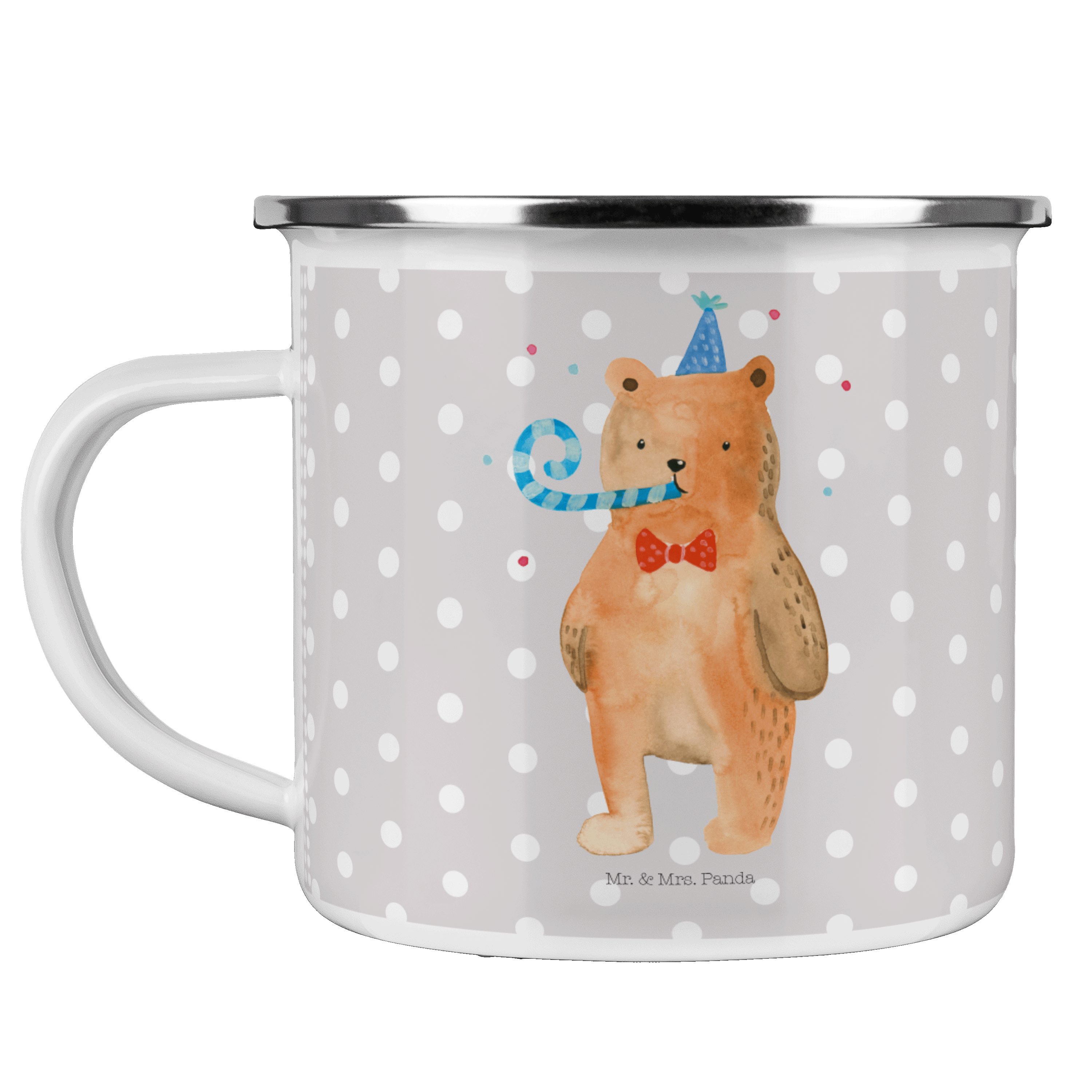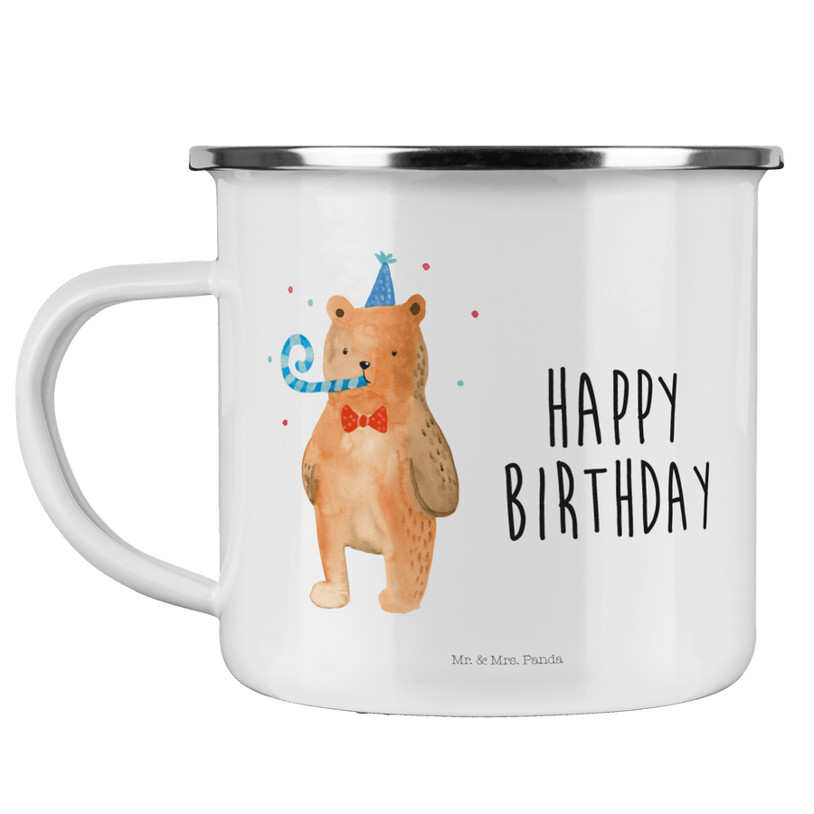 Camping Emaille Tasse Birthday Bär - mit Spruch - Weiß