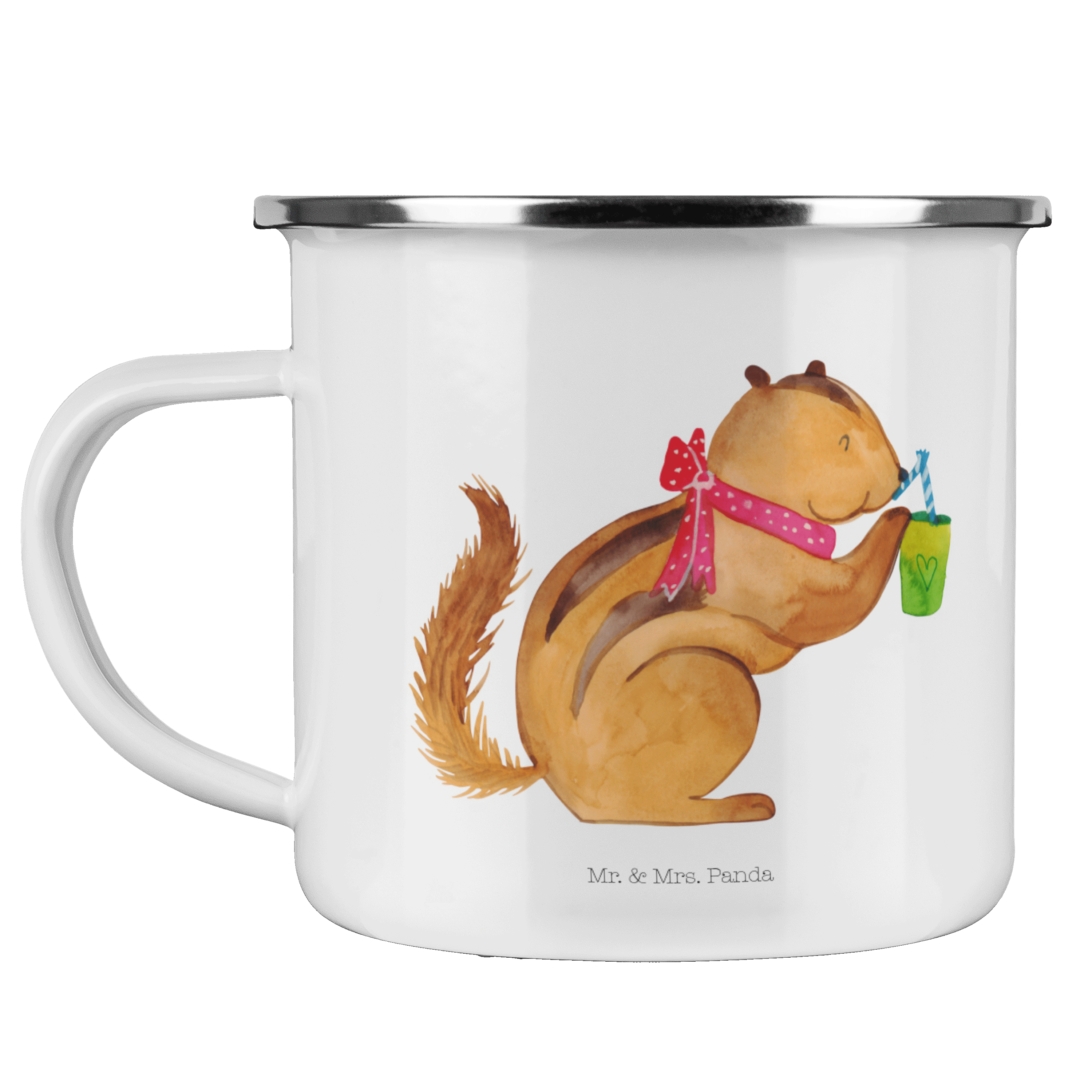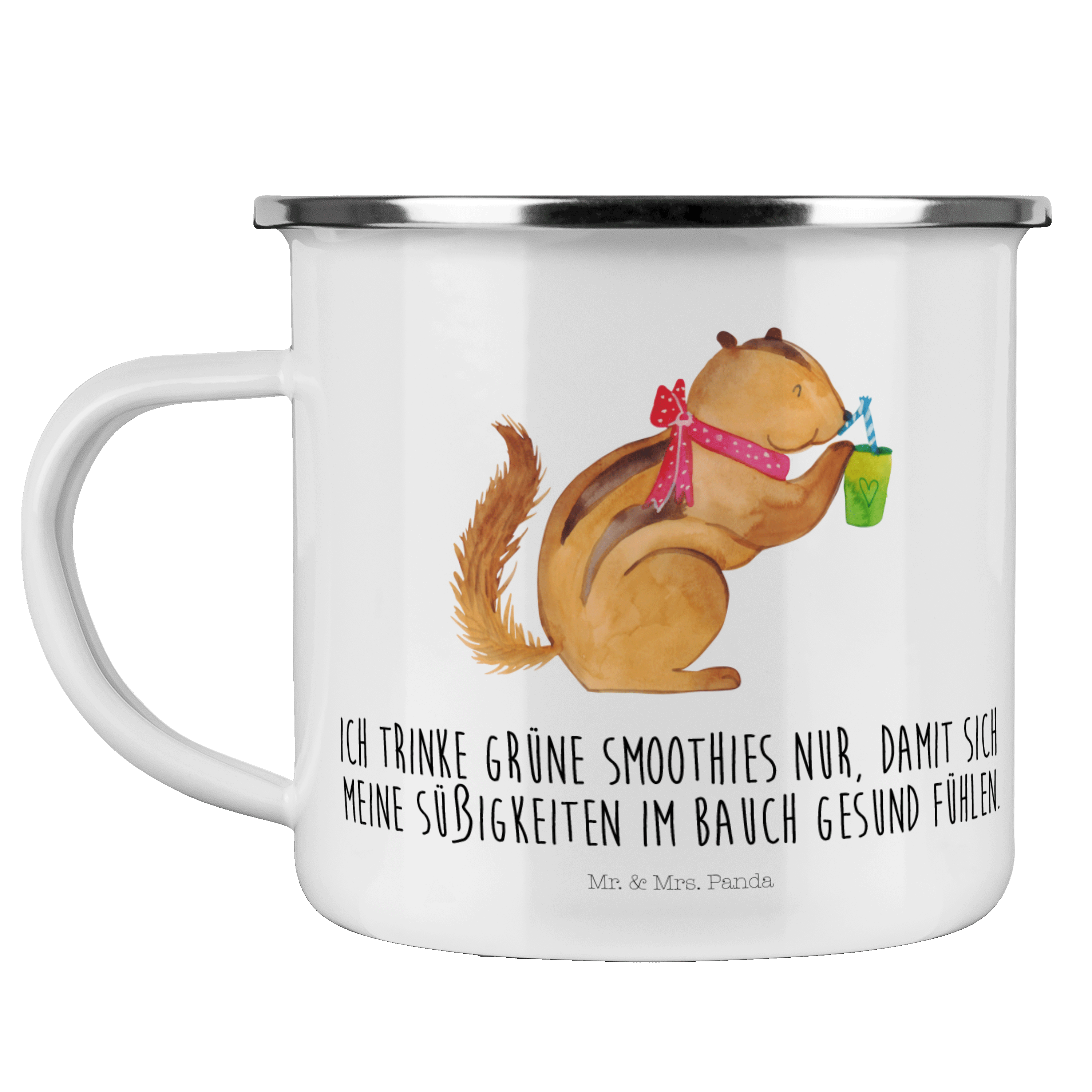 Camping Emaille Tasse Eichhörnchen Smoothie - mit Spruch - Weiß