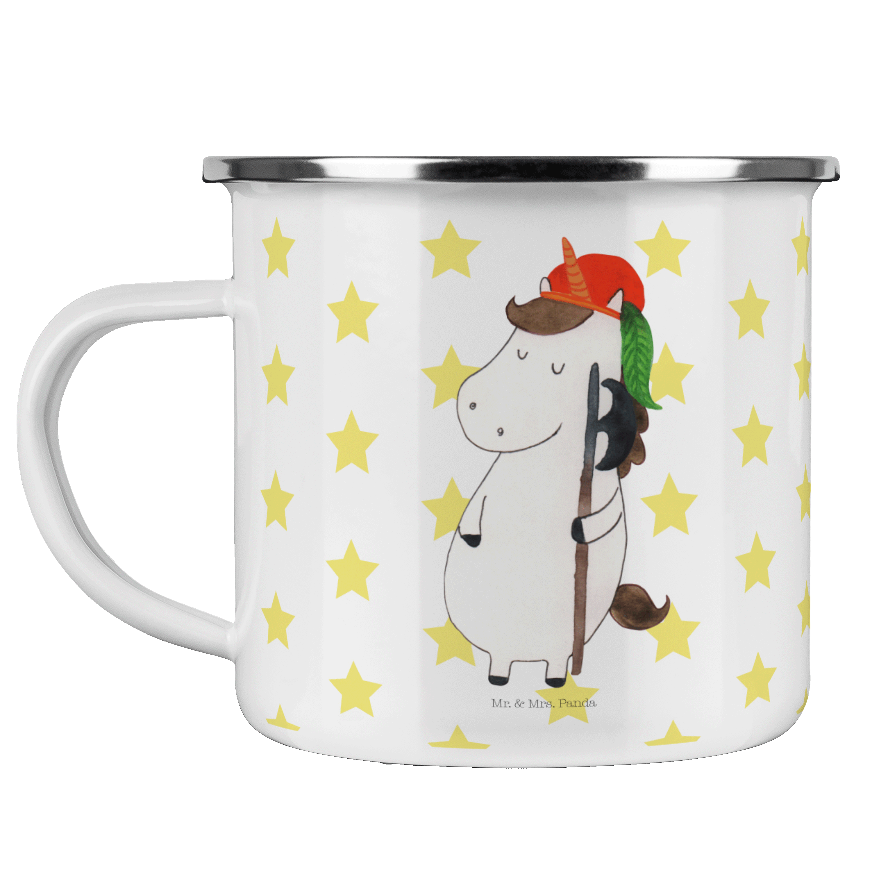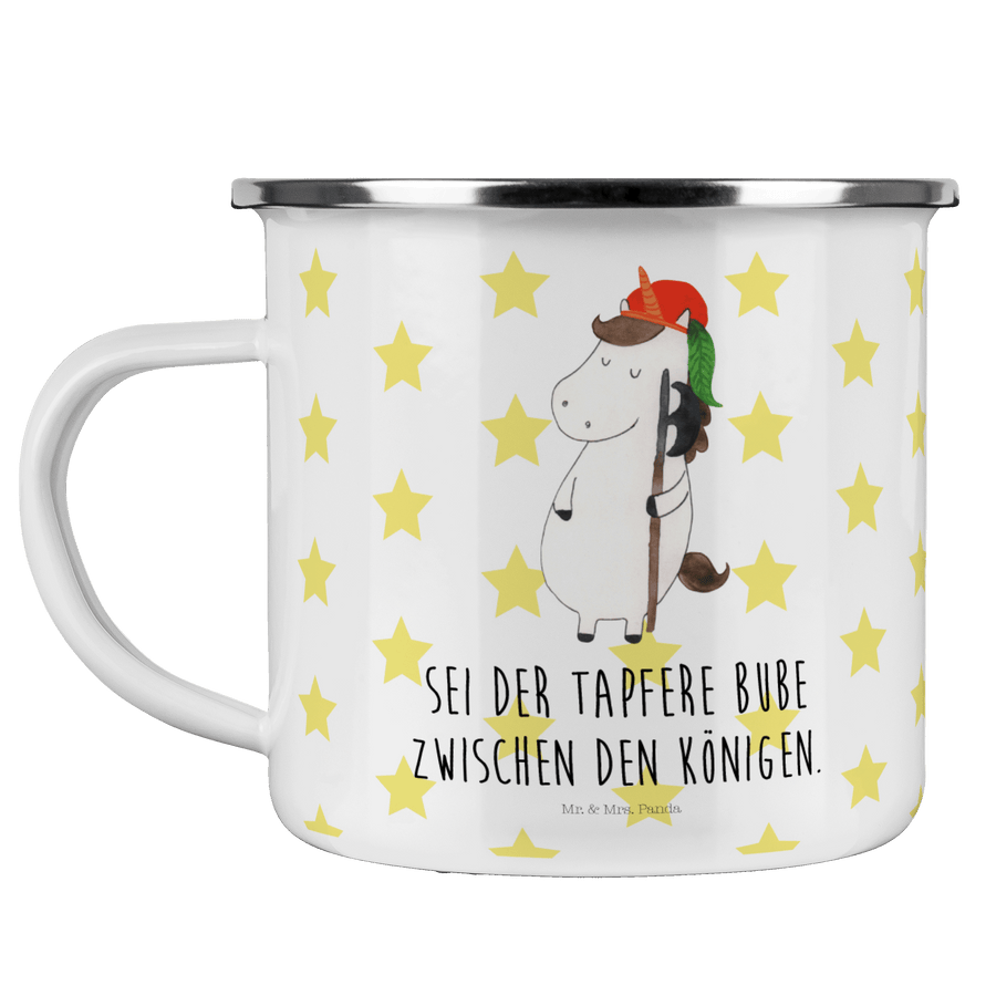 Camping Emaille Tasse Einhorn Bube - mit Spruch - Weiß