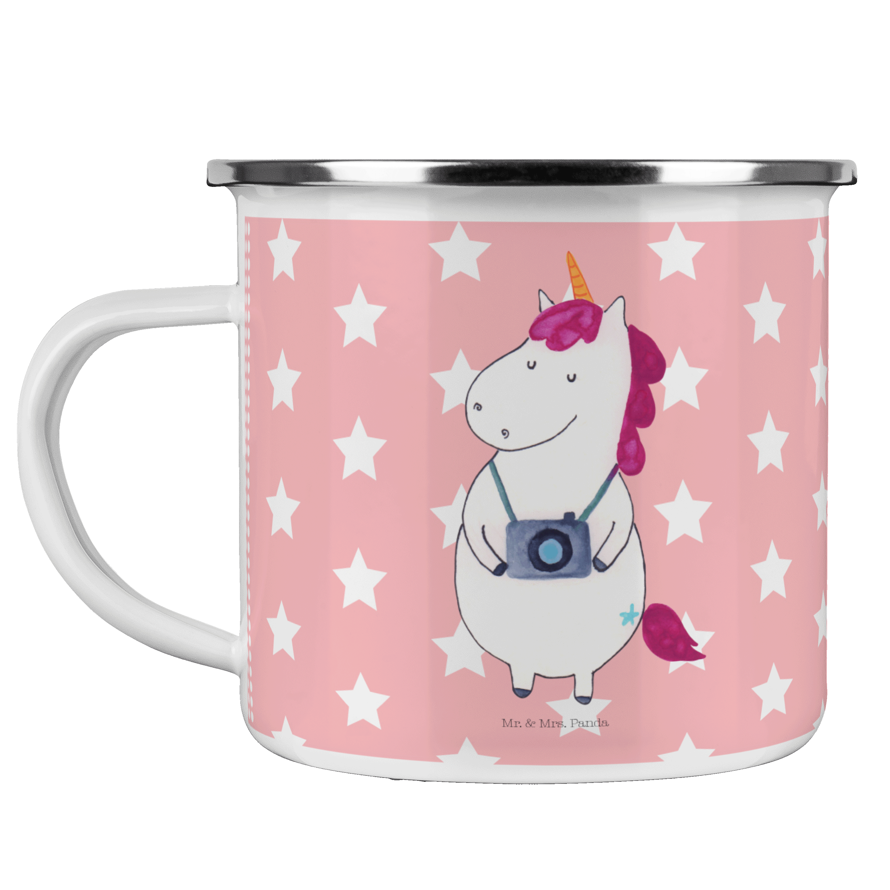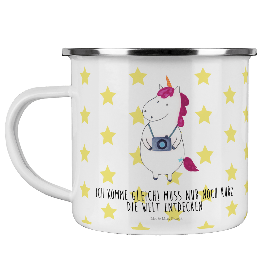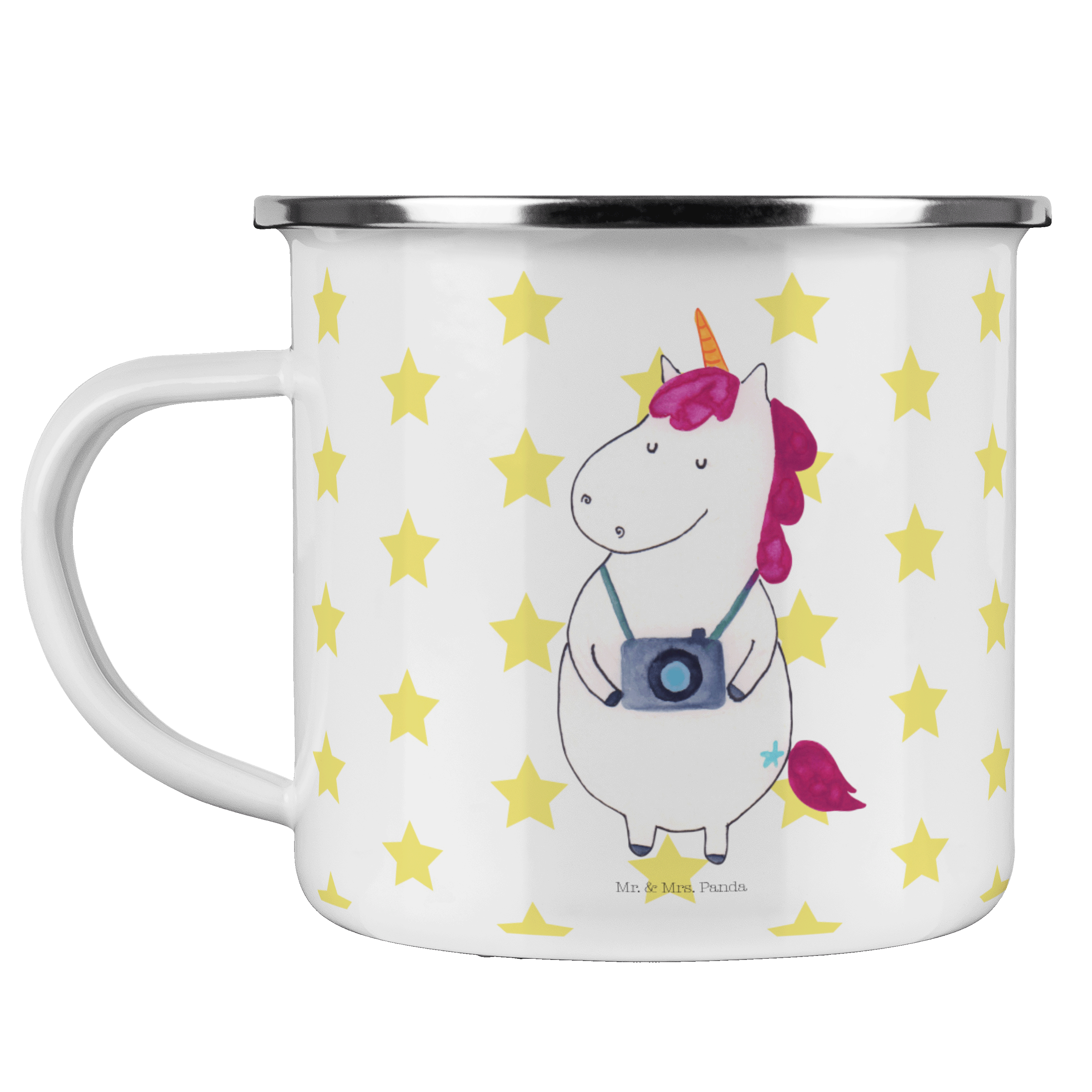 Camping Emaille Tasse Einhorn Fotograf - mit Spruch - Weiß