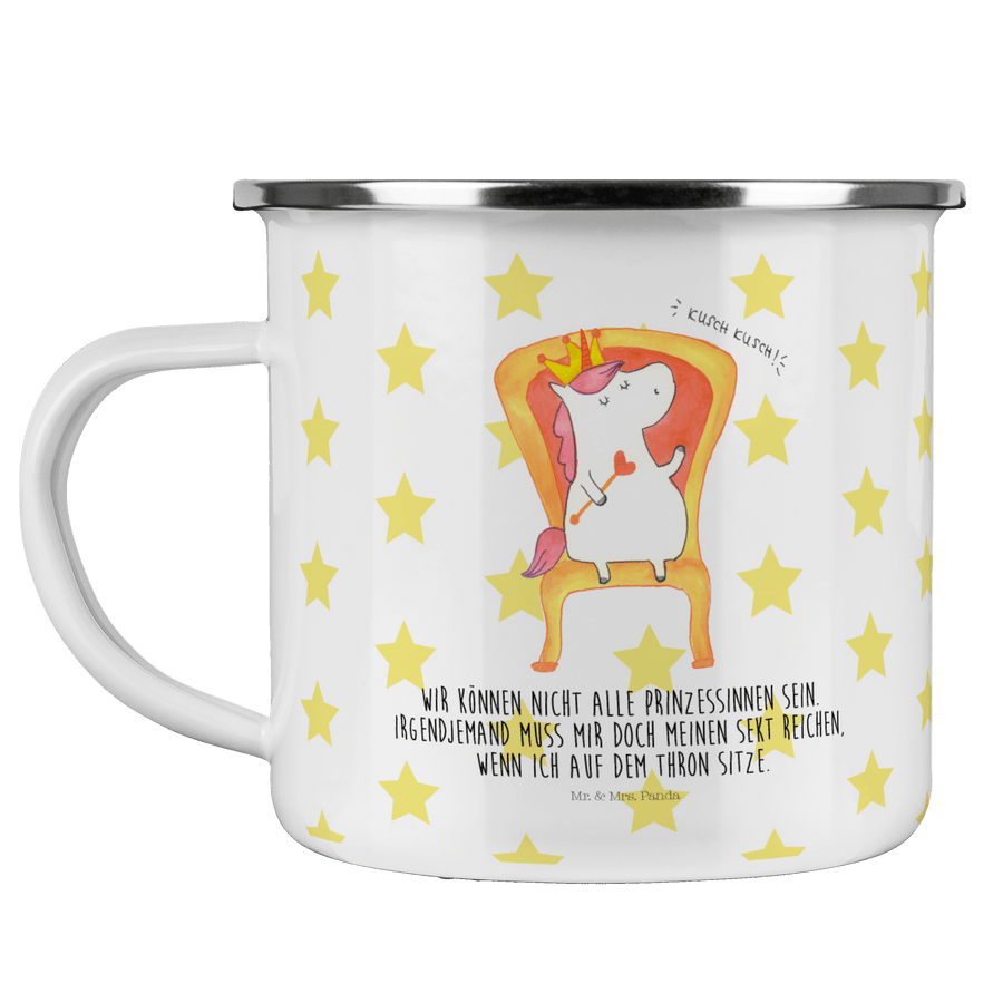Camping Emaille Tasse Einhorn König - mit Spruch - Weiß
