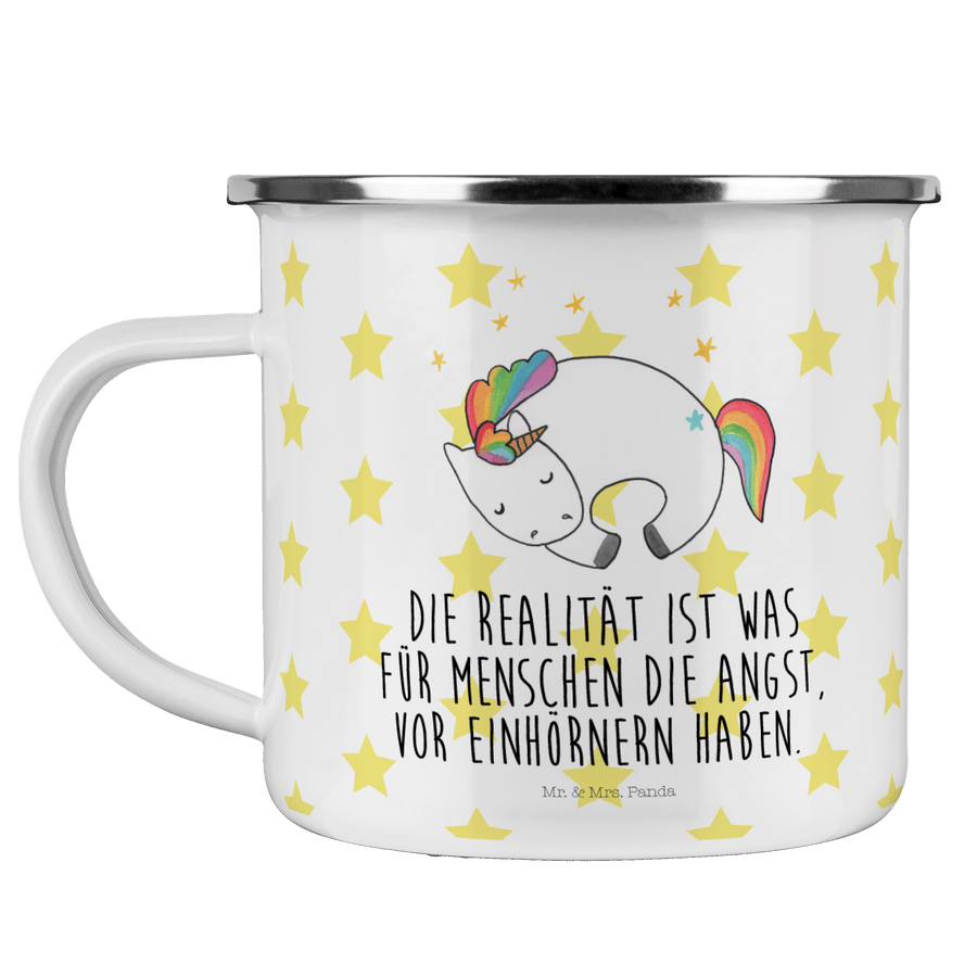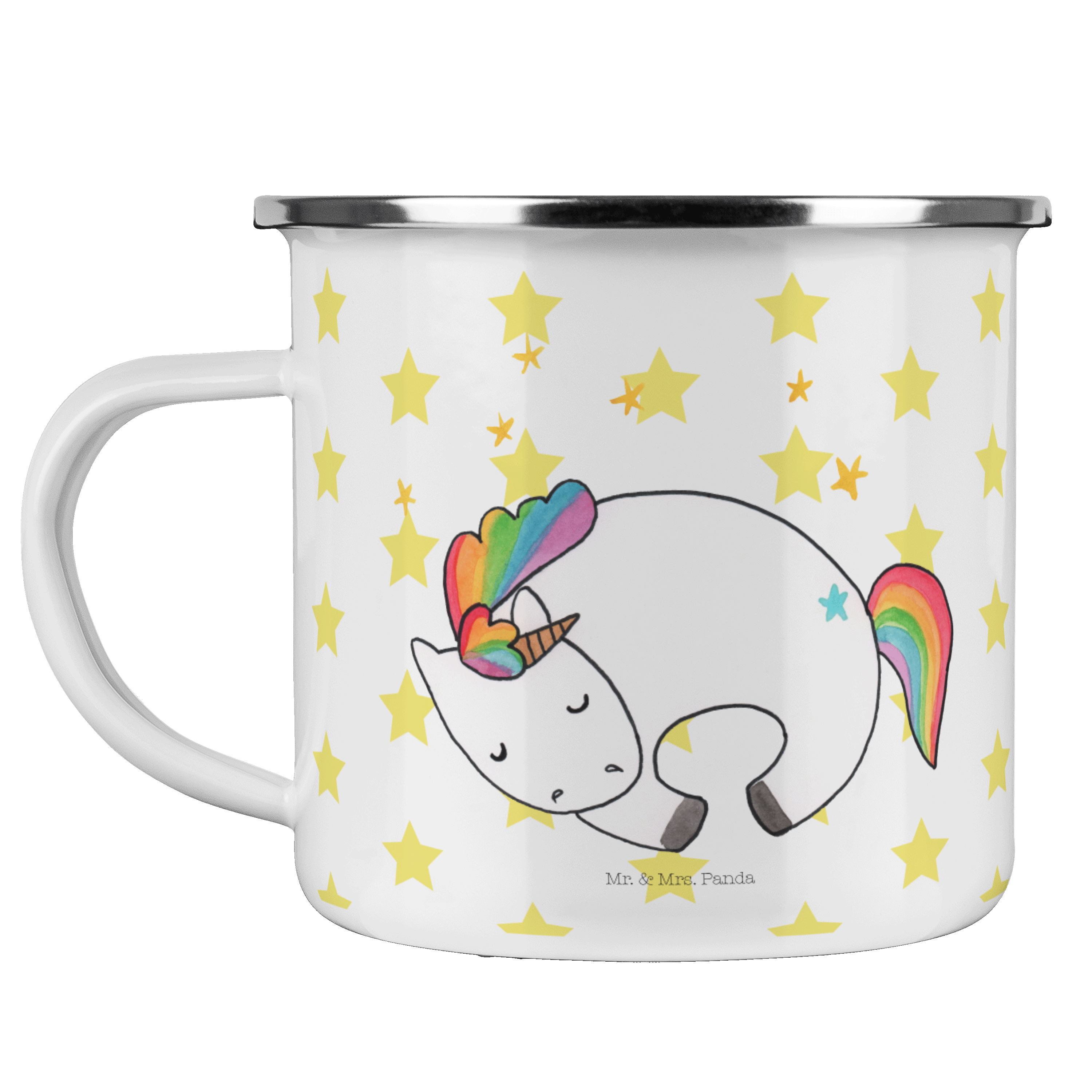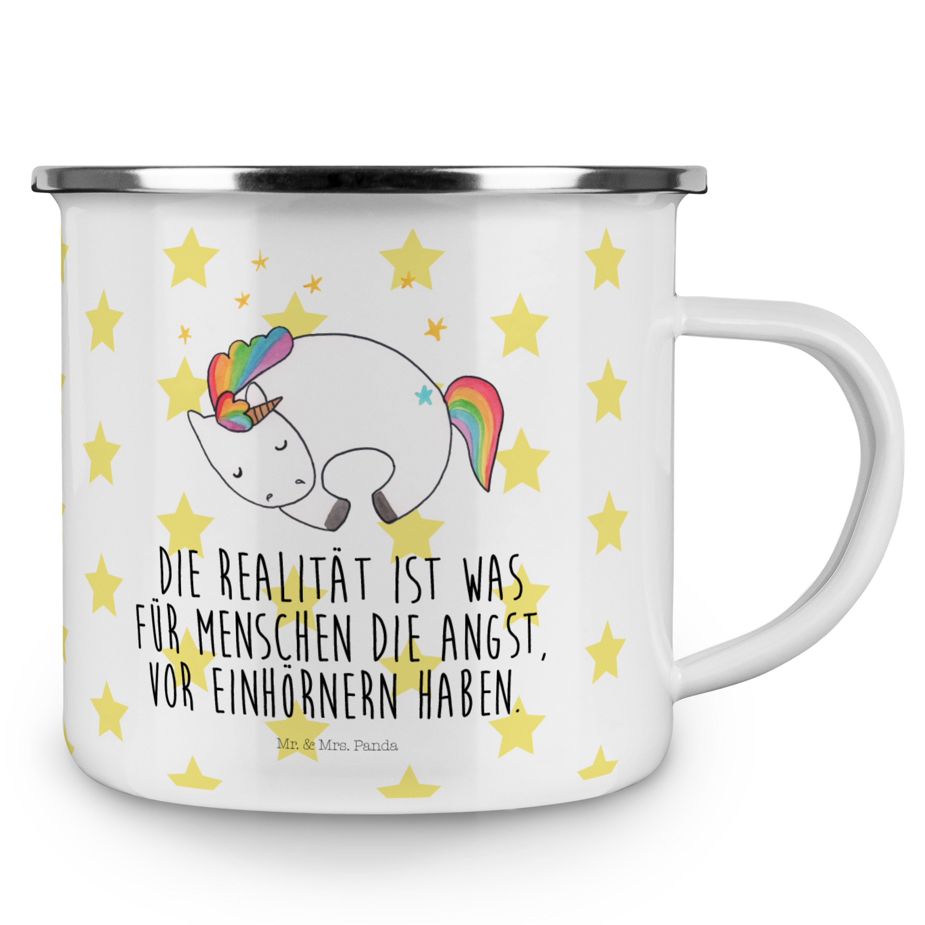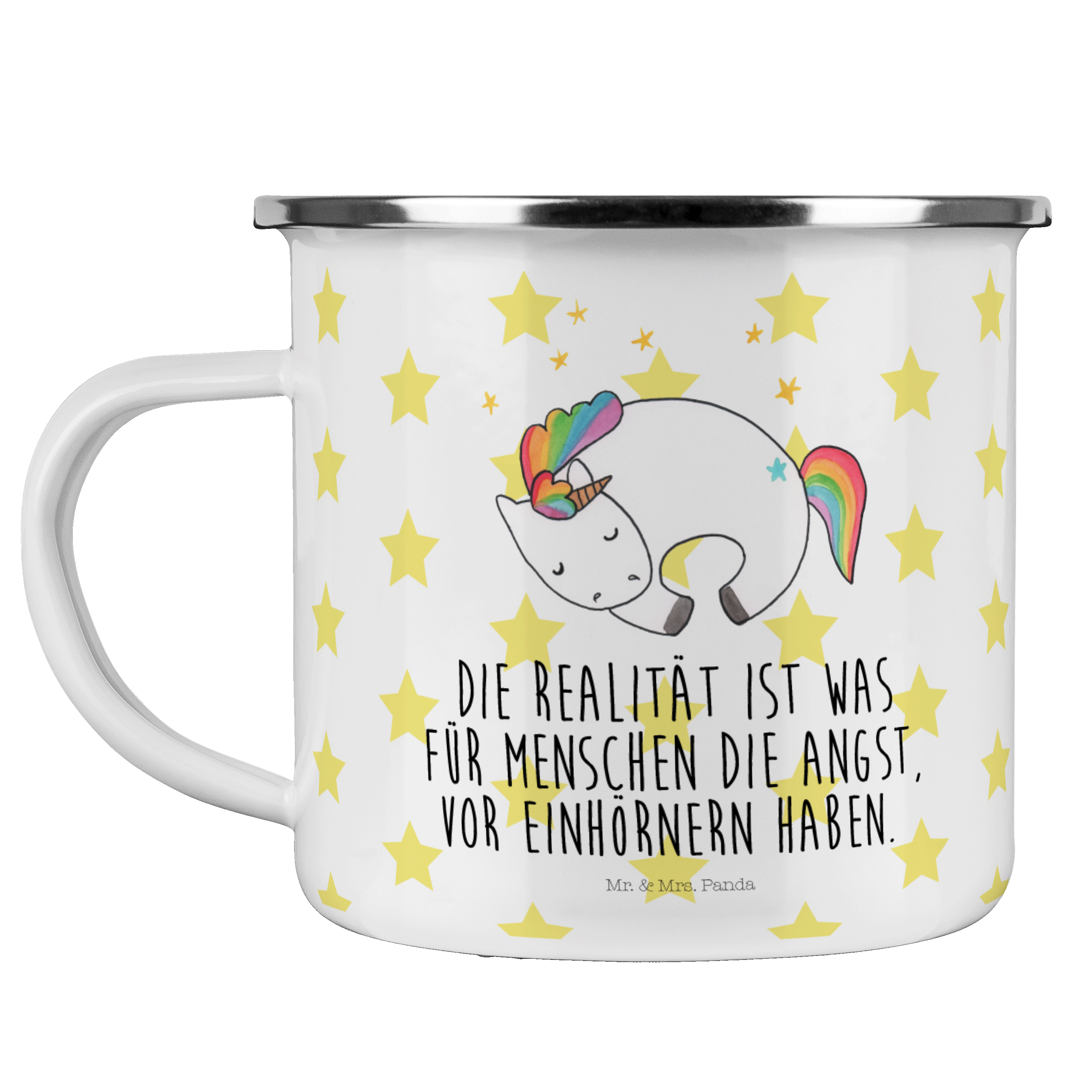 Camping Emaille Tasse Einhorn Nacht - mit Spruch - Weiß