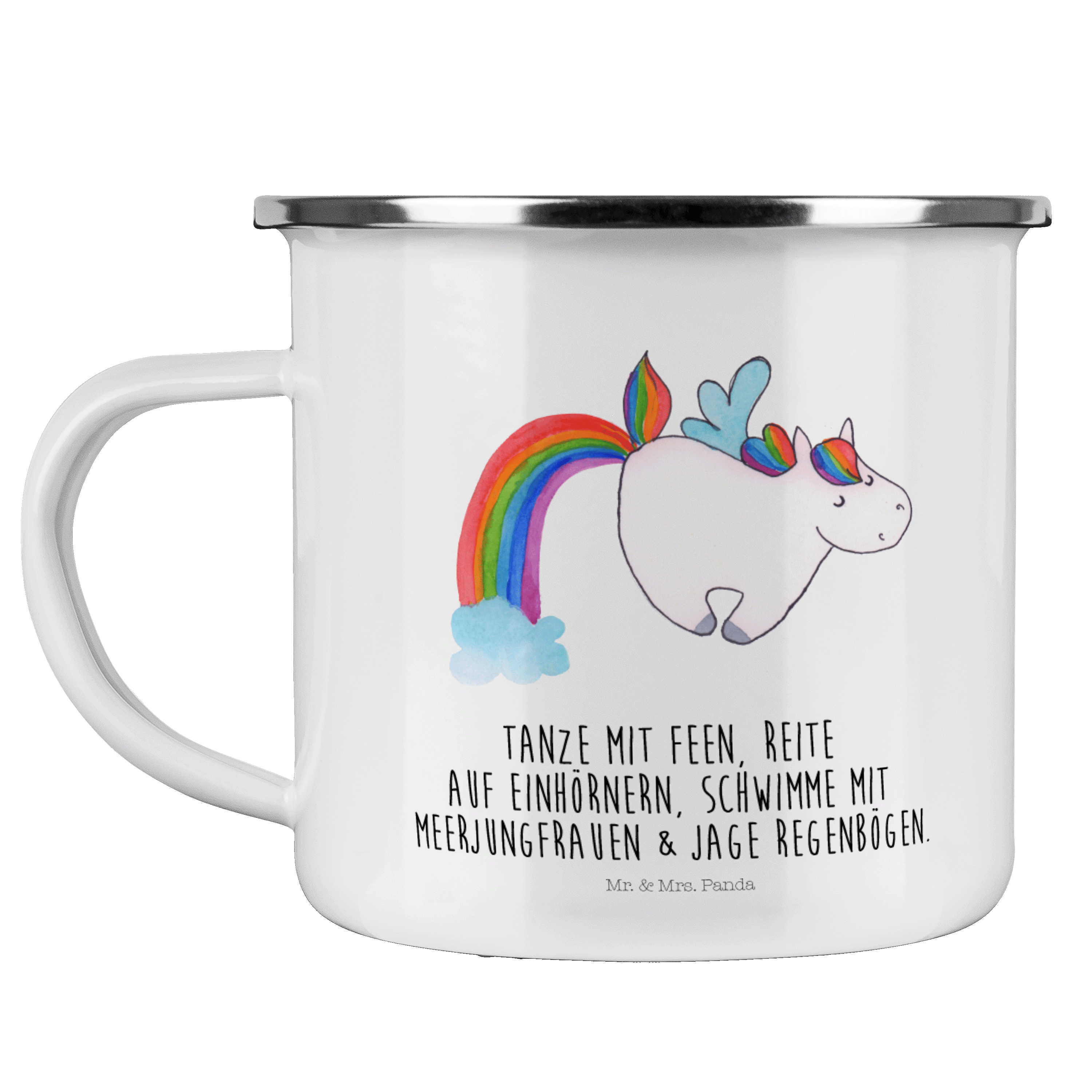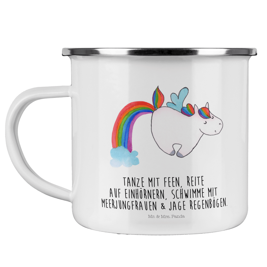 Camping Emaille Tasse Einhorn Pegasus - mit Spruch - Weiß