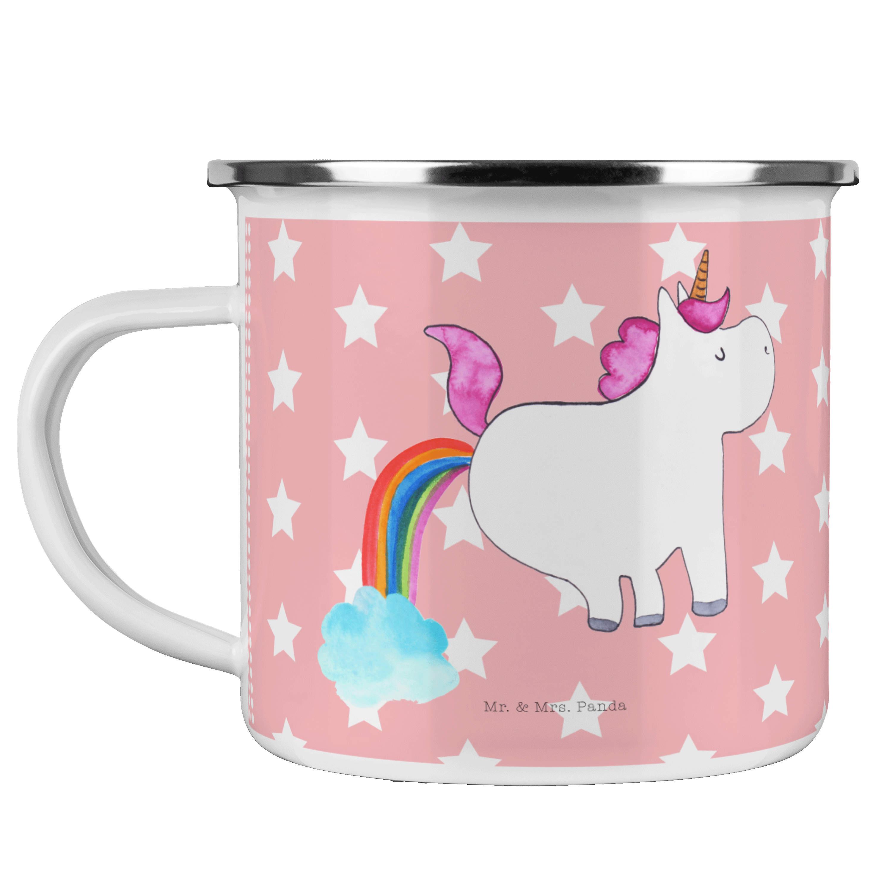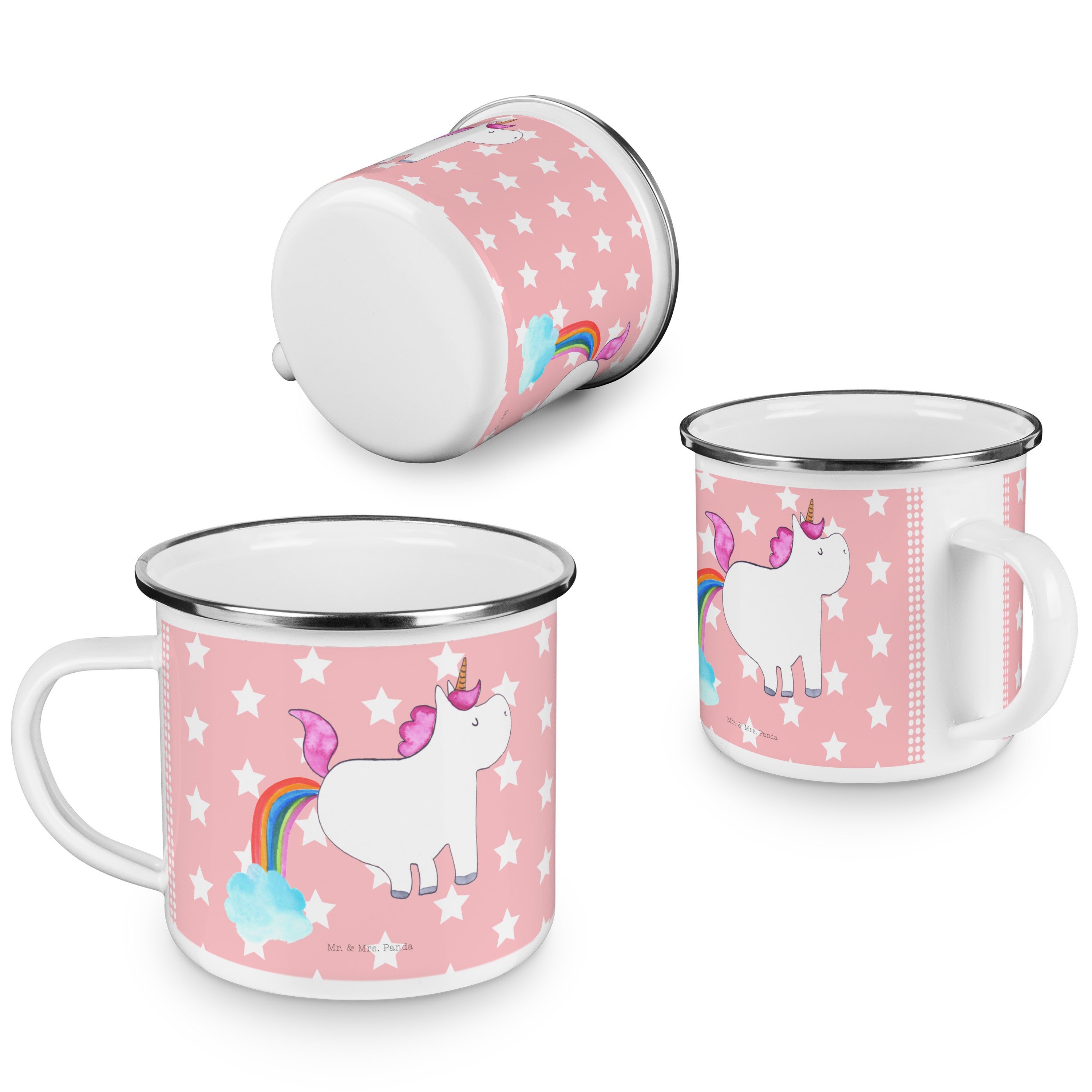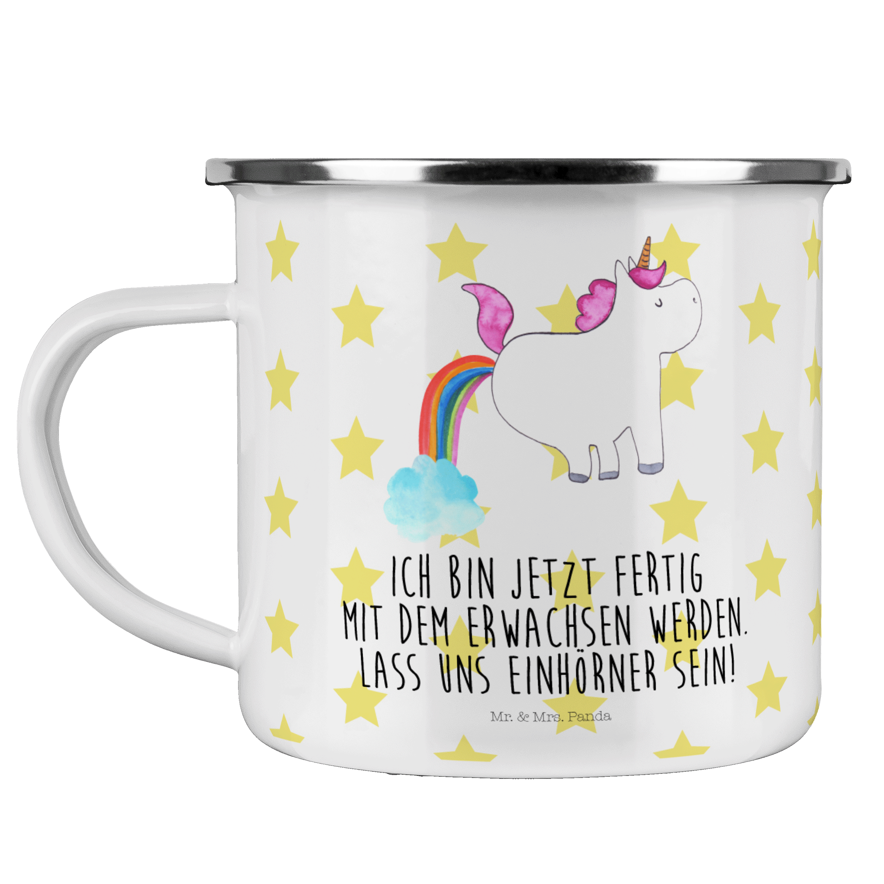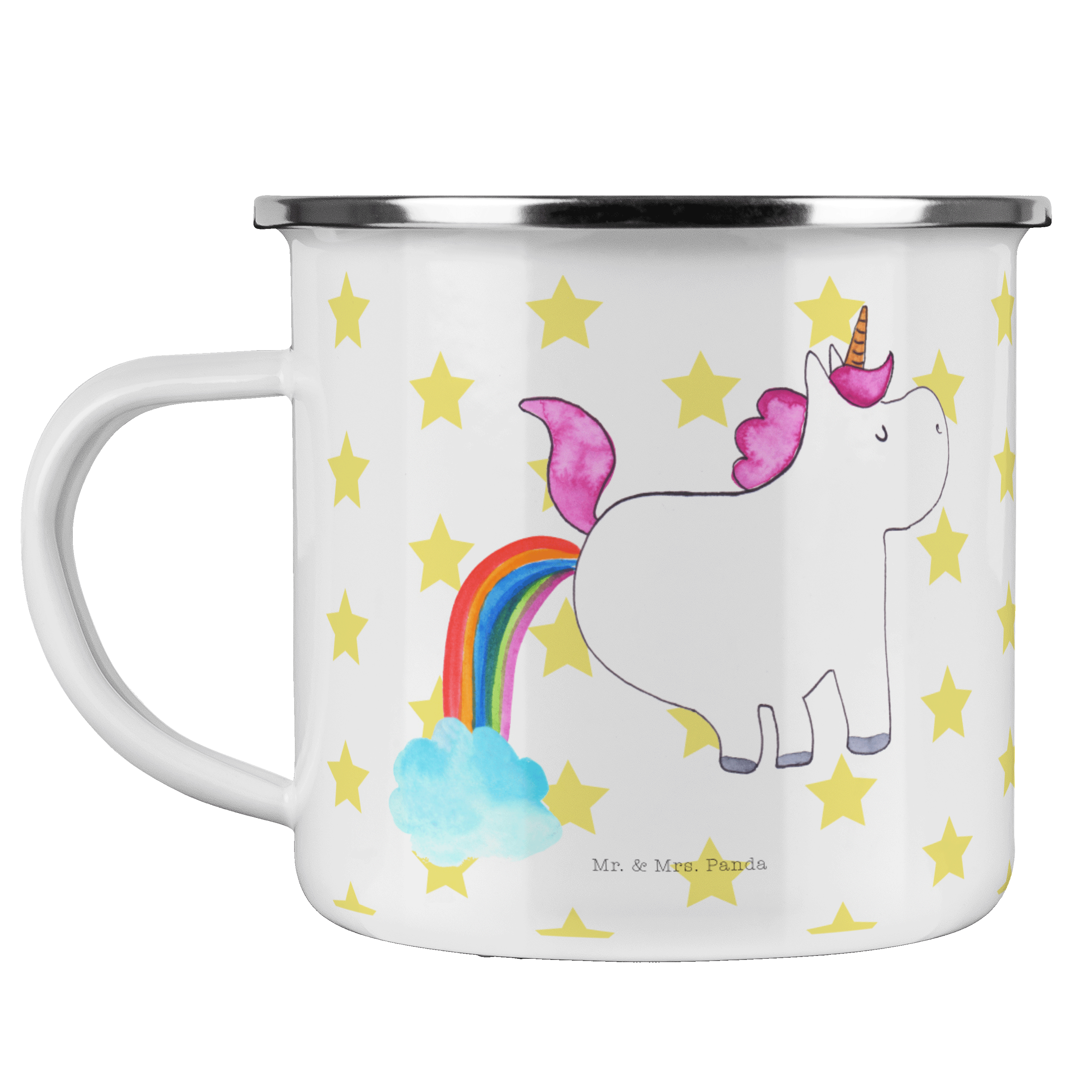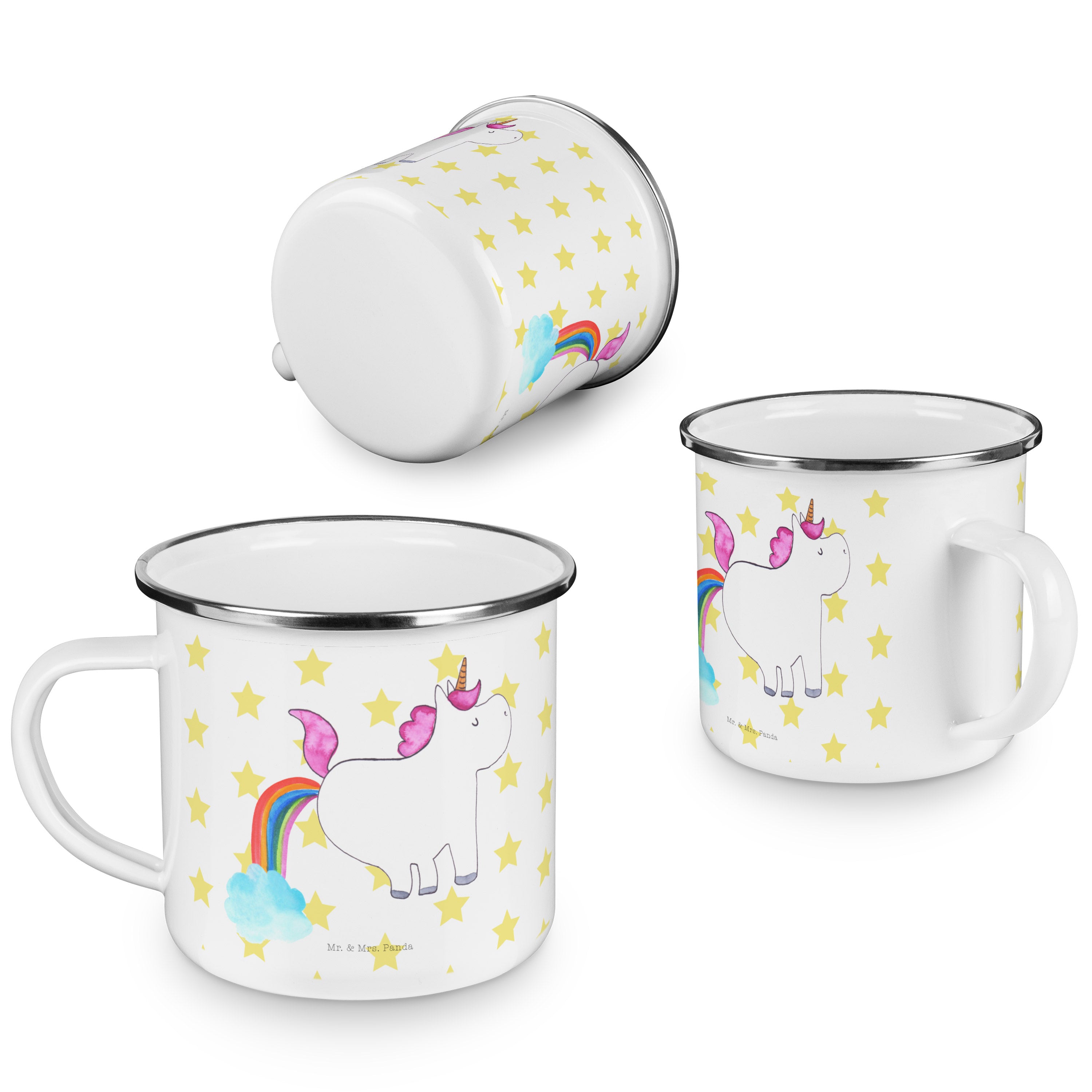 Camping Emaille Tasse Einhorn Pupsend - mit Spruch - Weiß