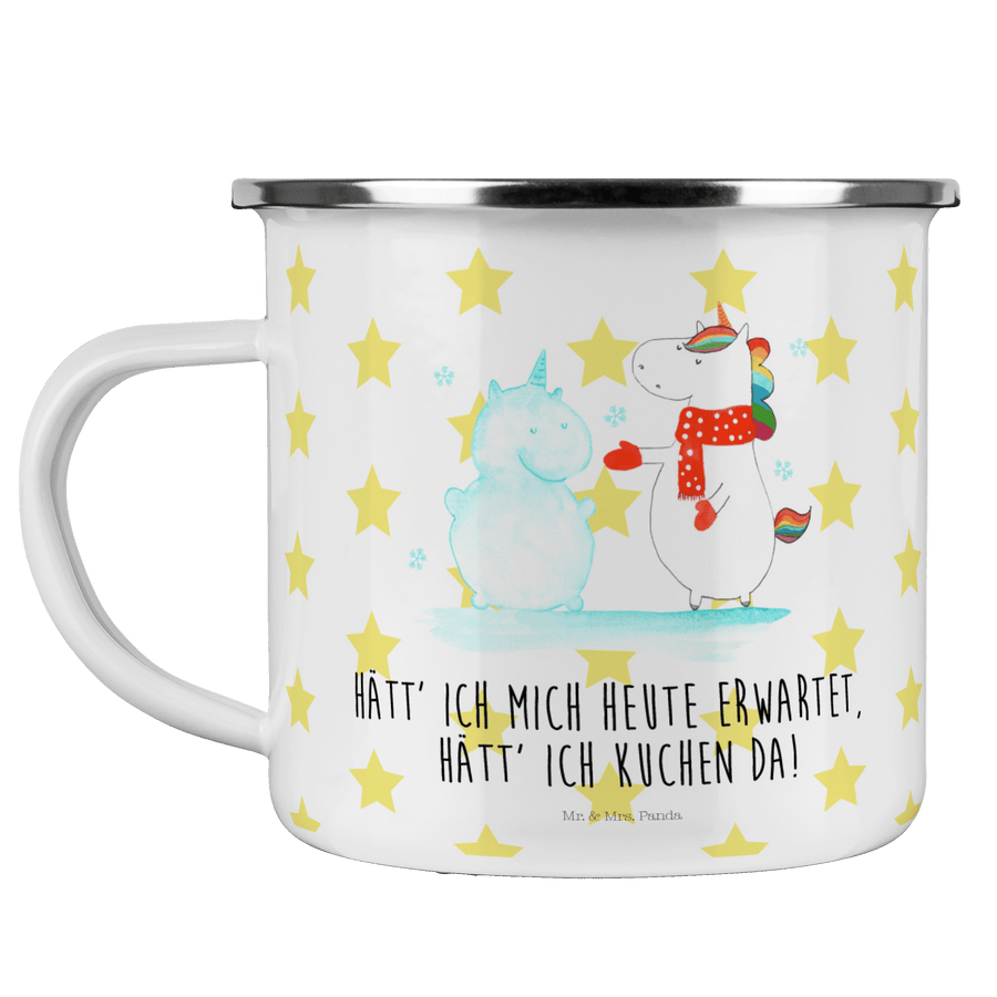 Camping Emaille Tasse Einhorn Schneemann - mit Spruch - Weiß