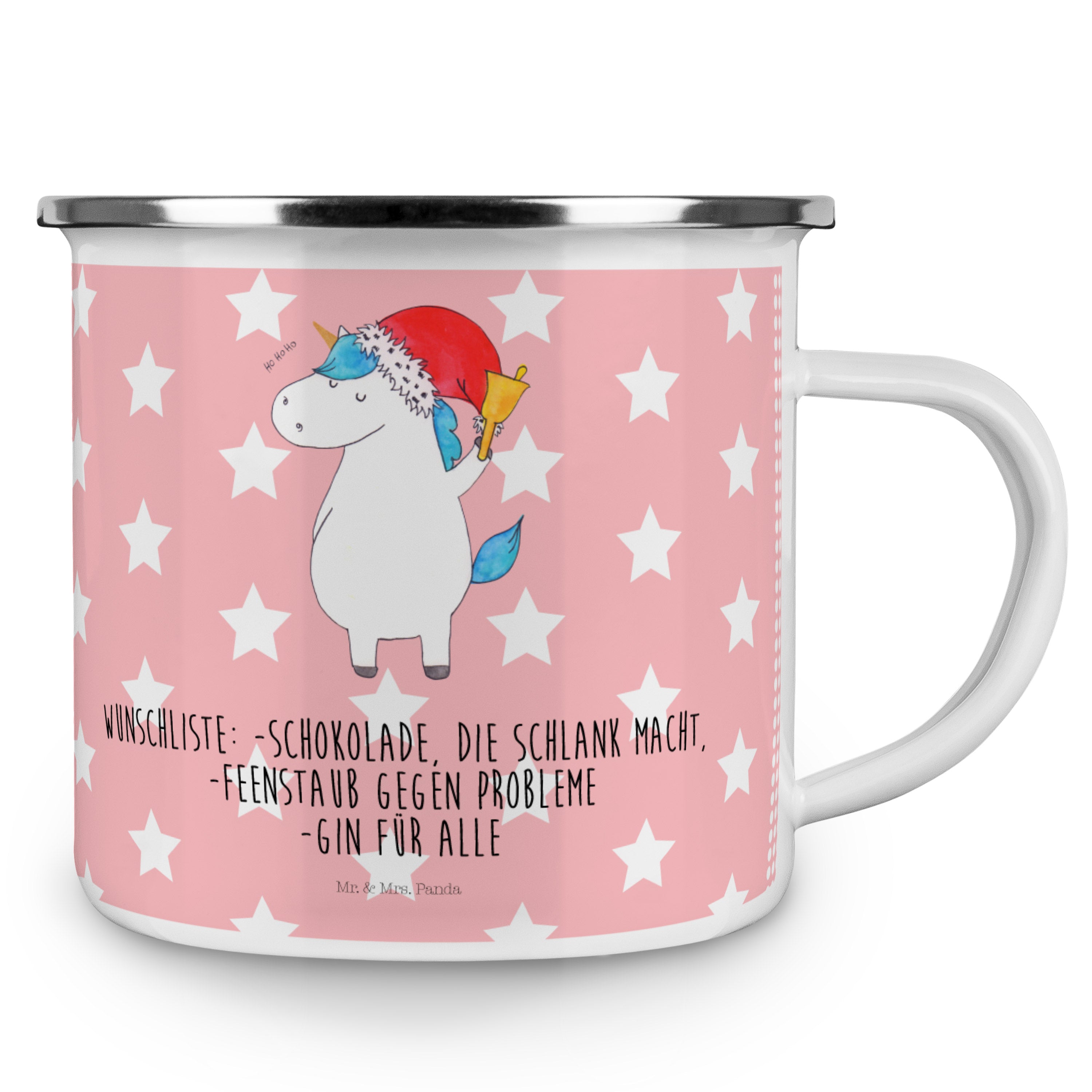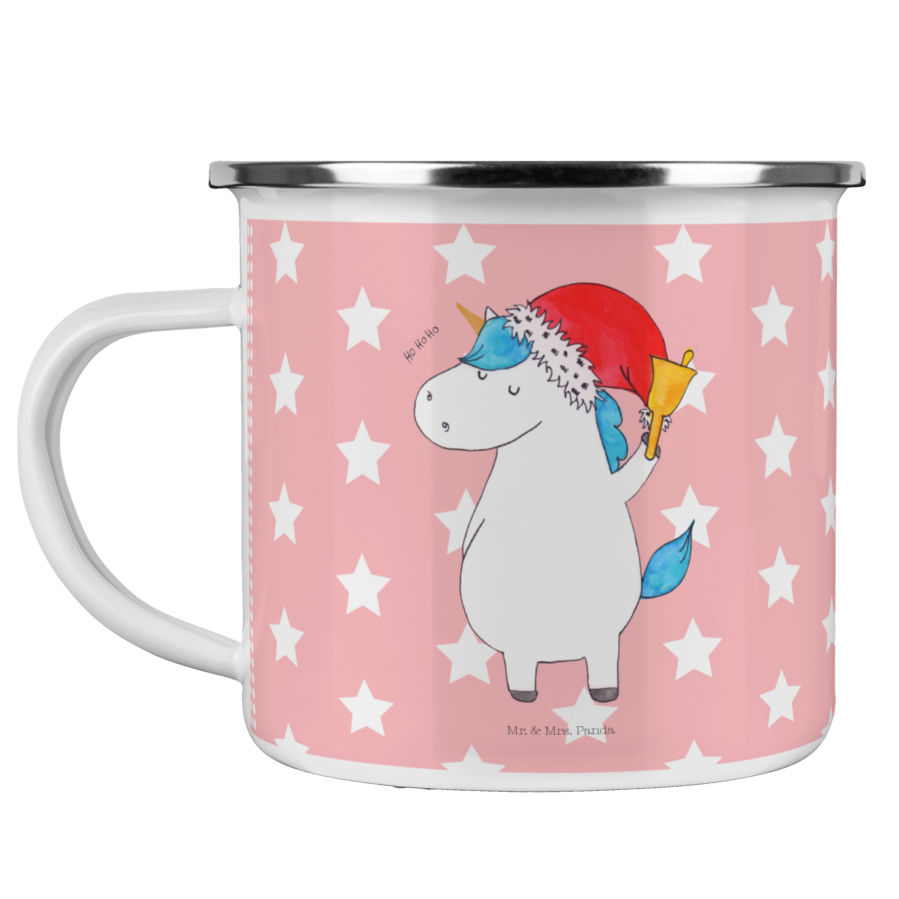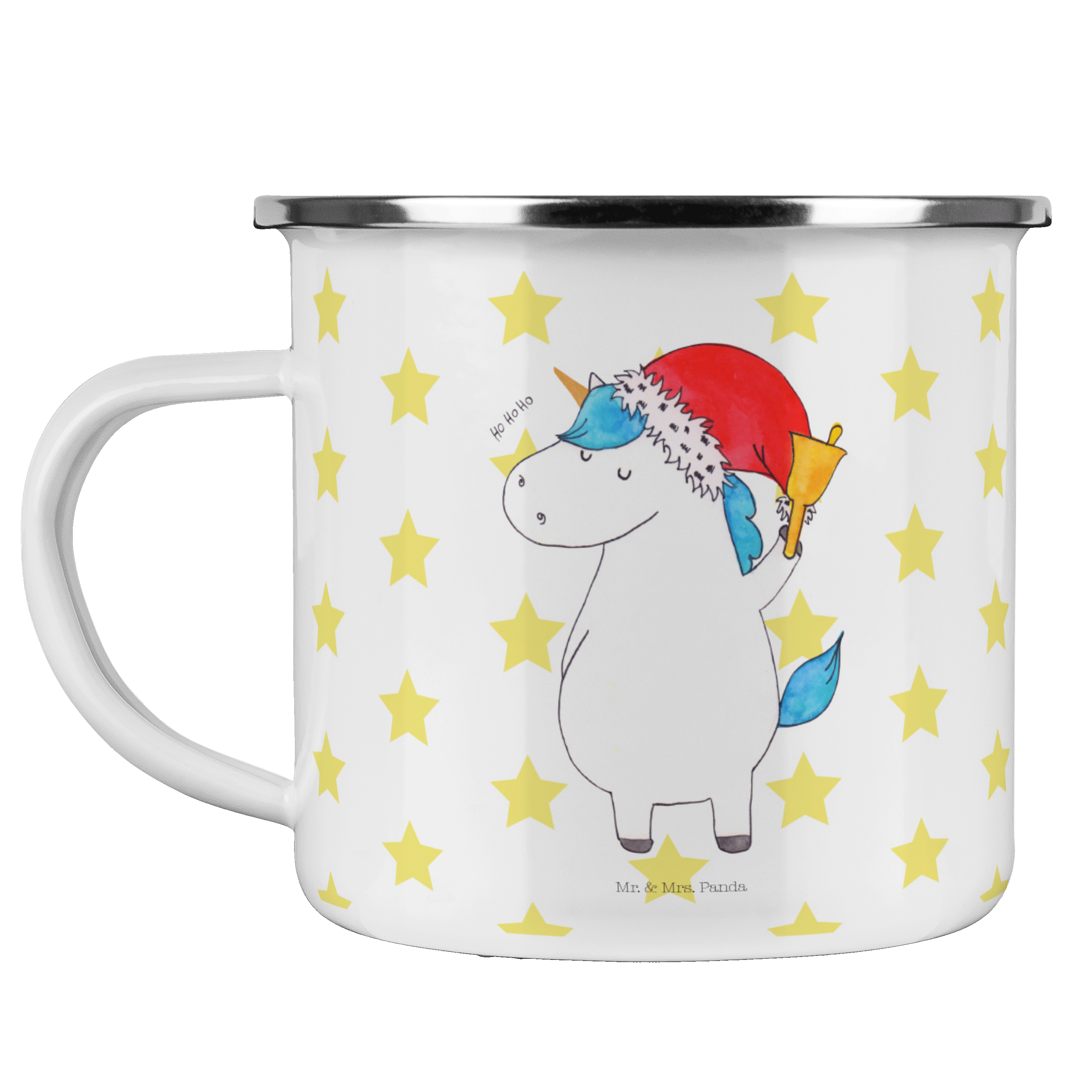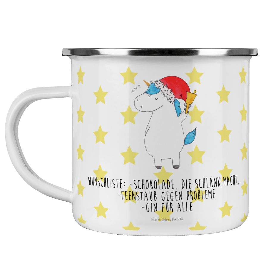 Camping Emaille Tasse Einhorn Weihnachtsmann - mit Spruch - Weiß