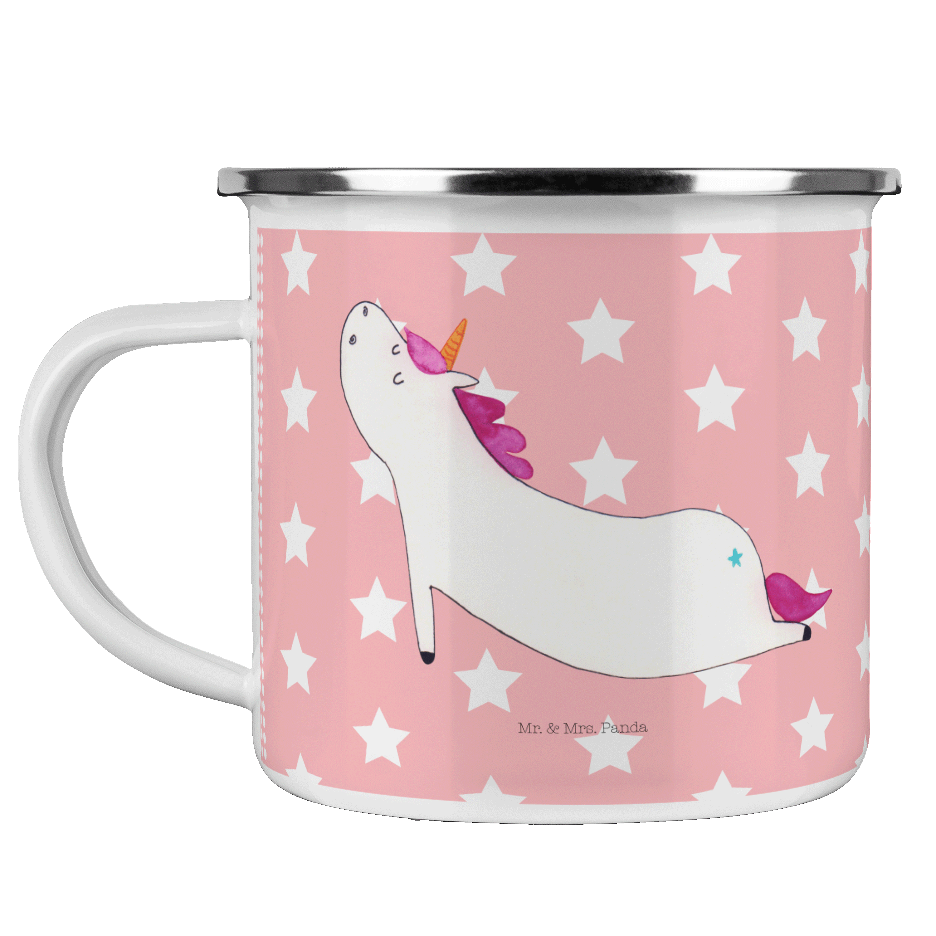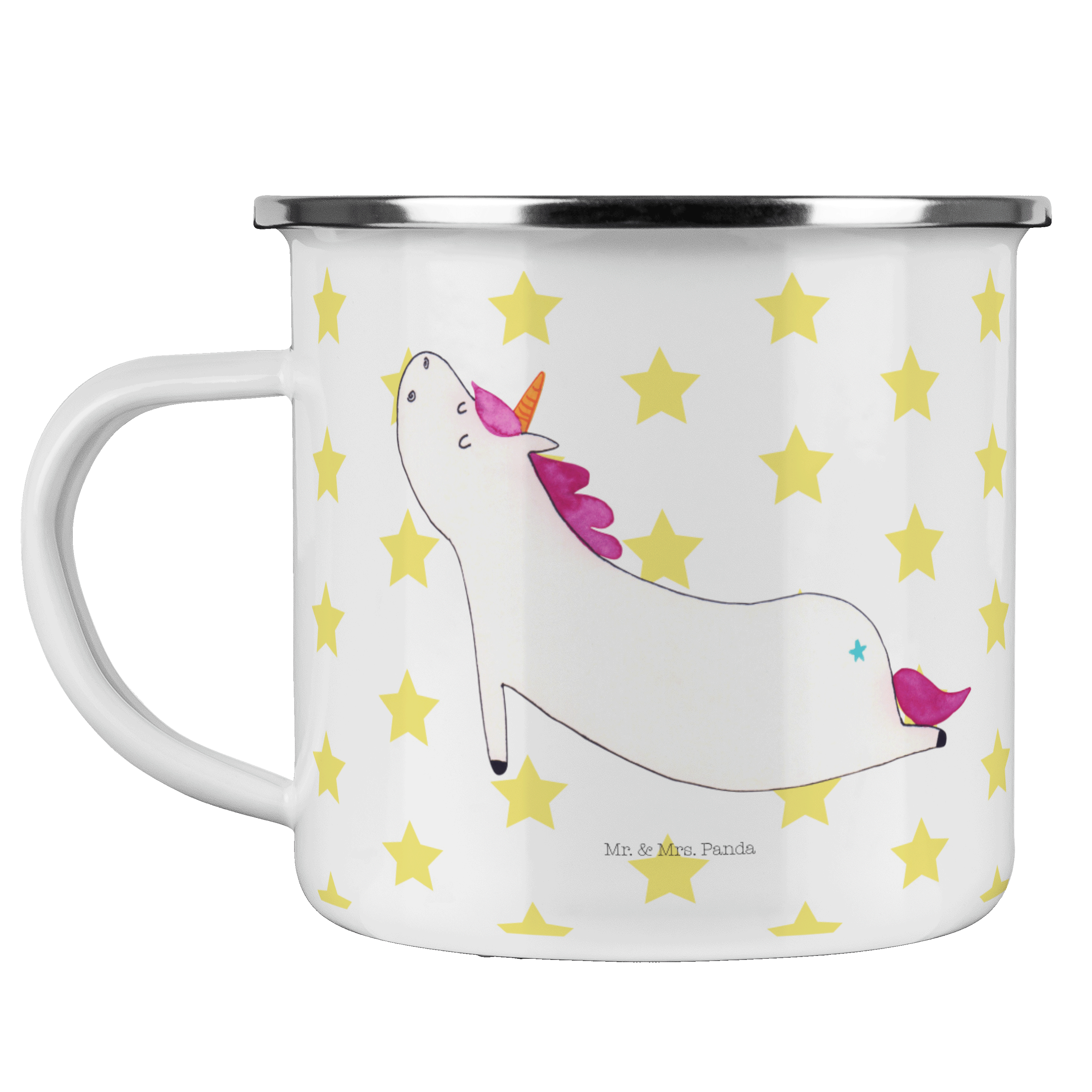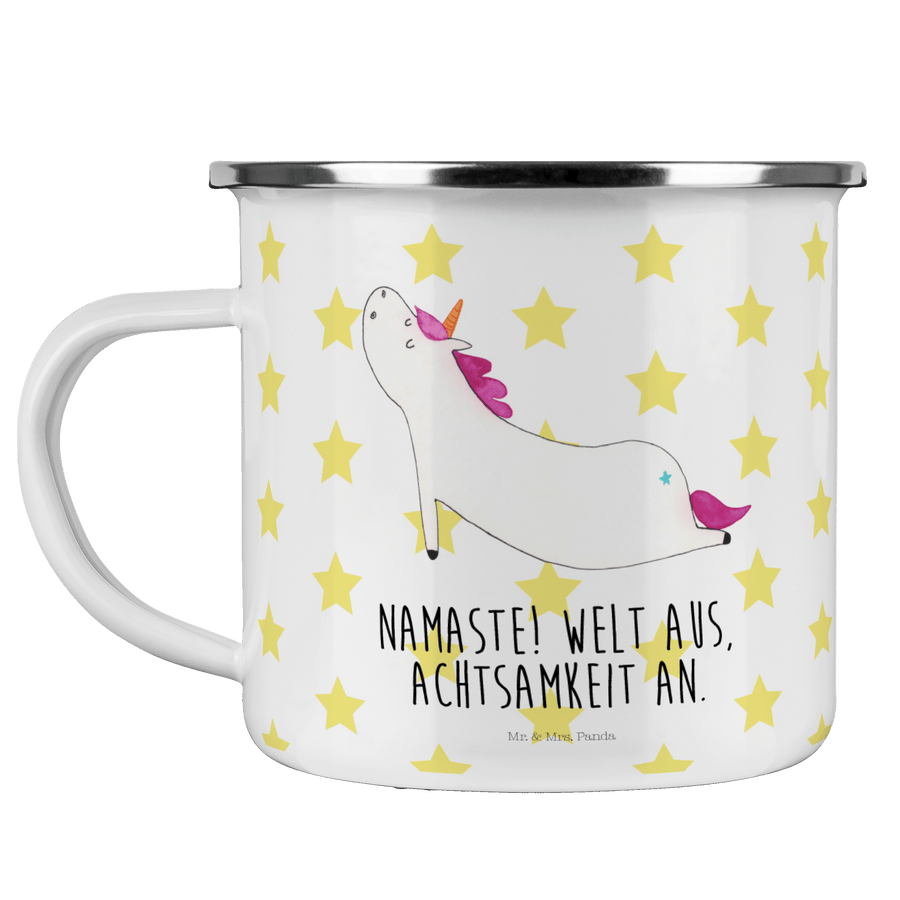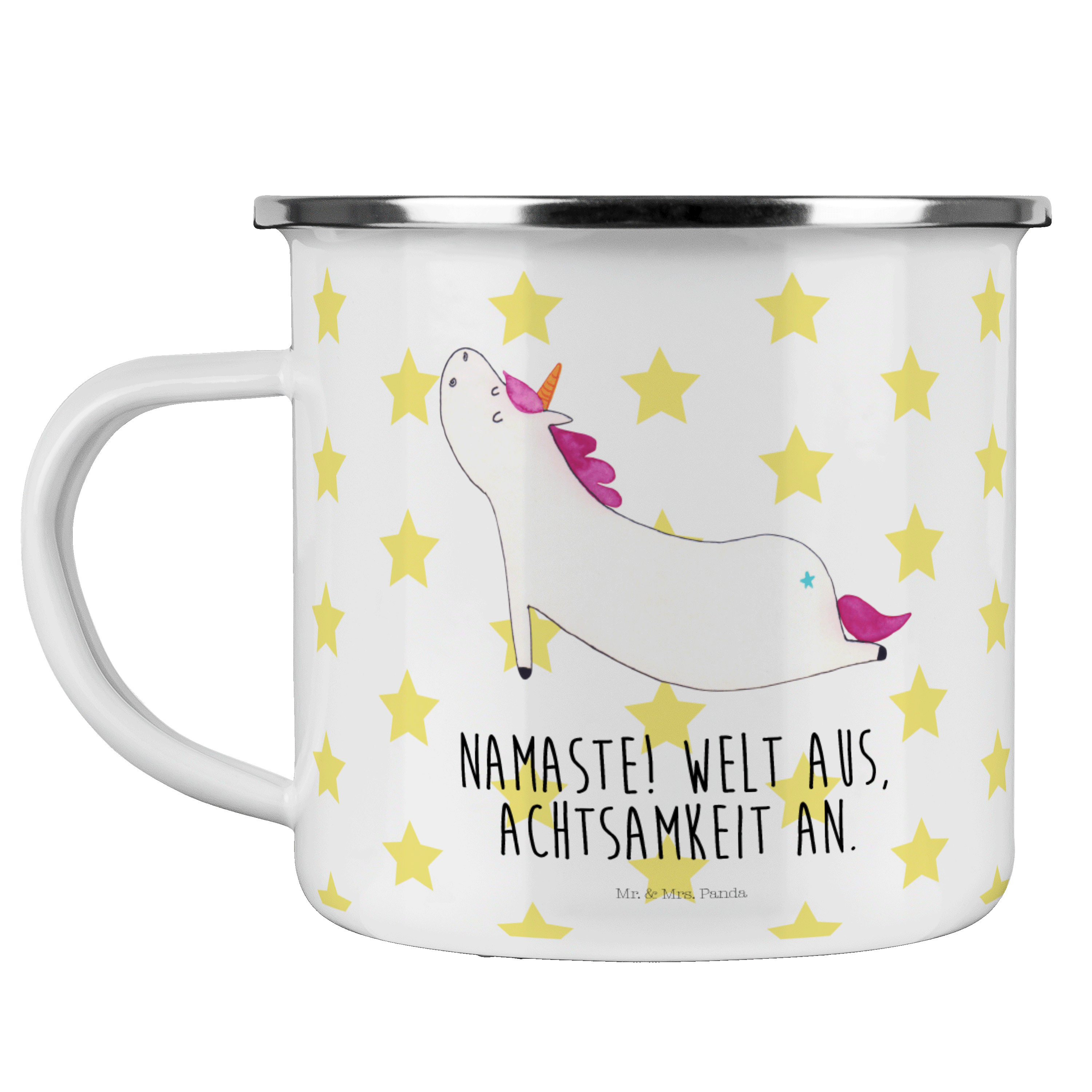 Camping Emaille Tasse Einhorn Yoga - mit Spruch - Weiß
