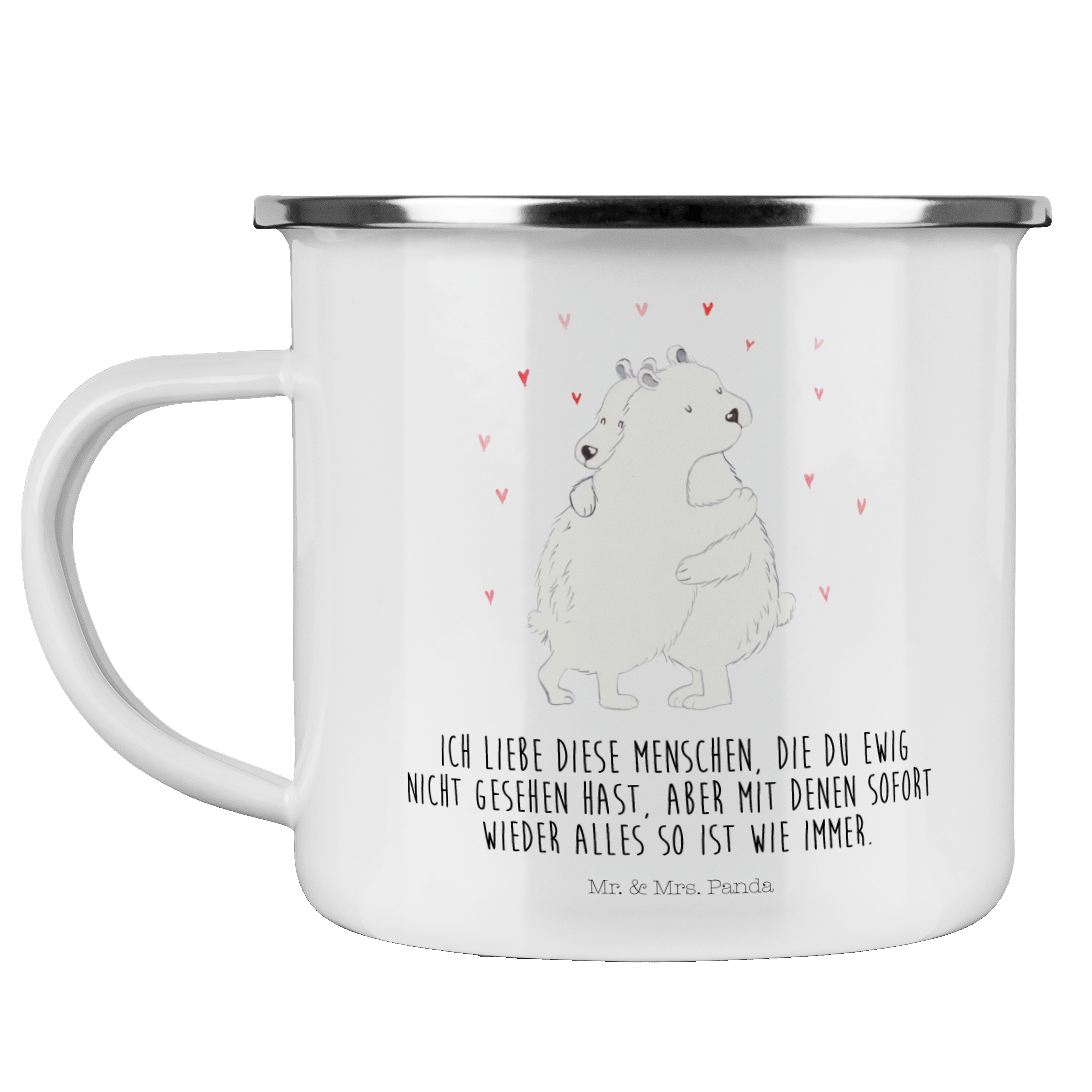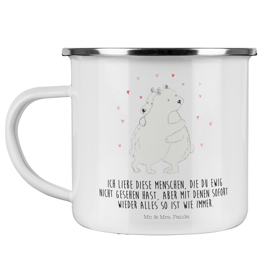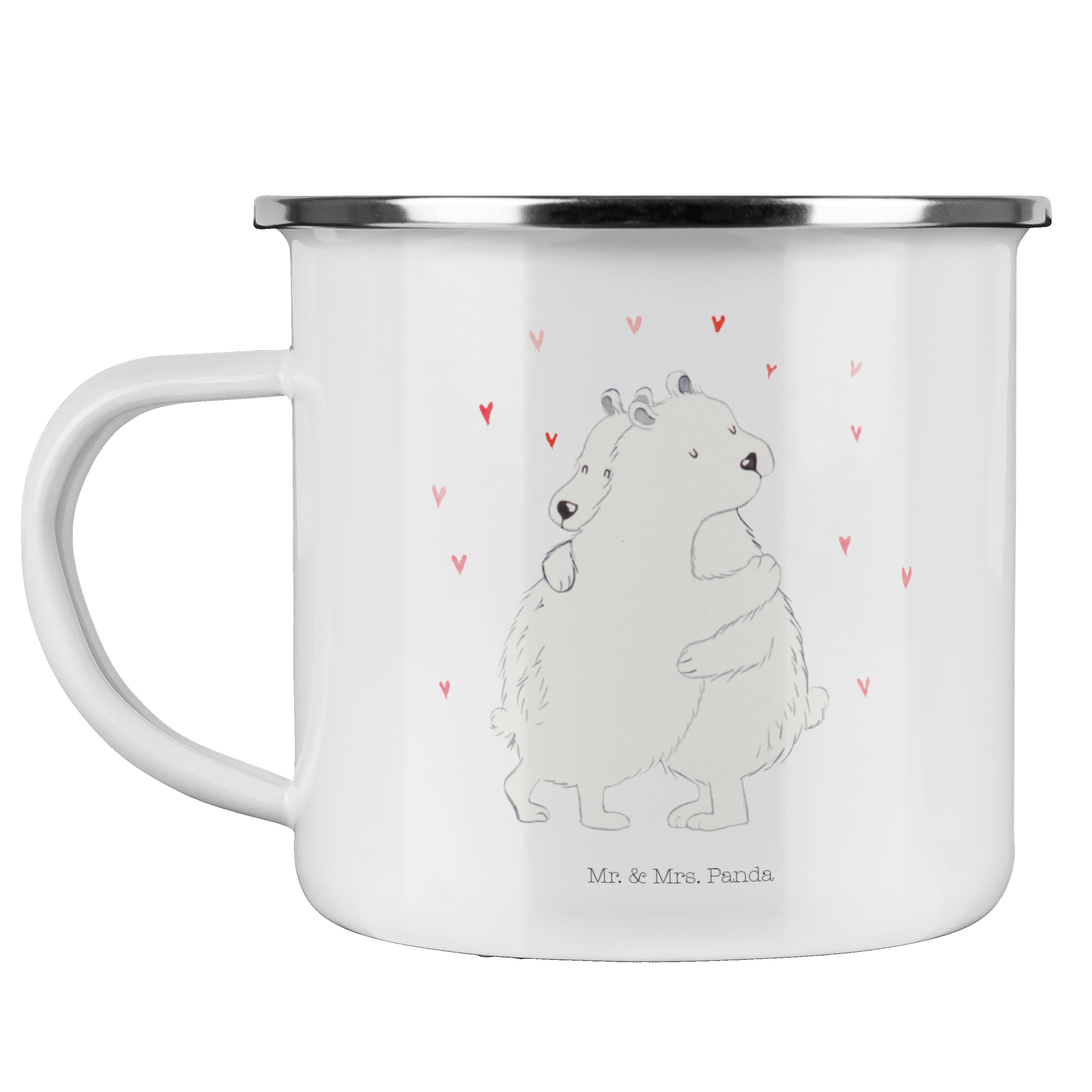Camping Emaille Tasse Eisbär Umarmen - mit Spruch - Weiß