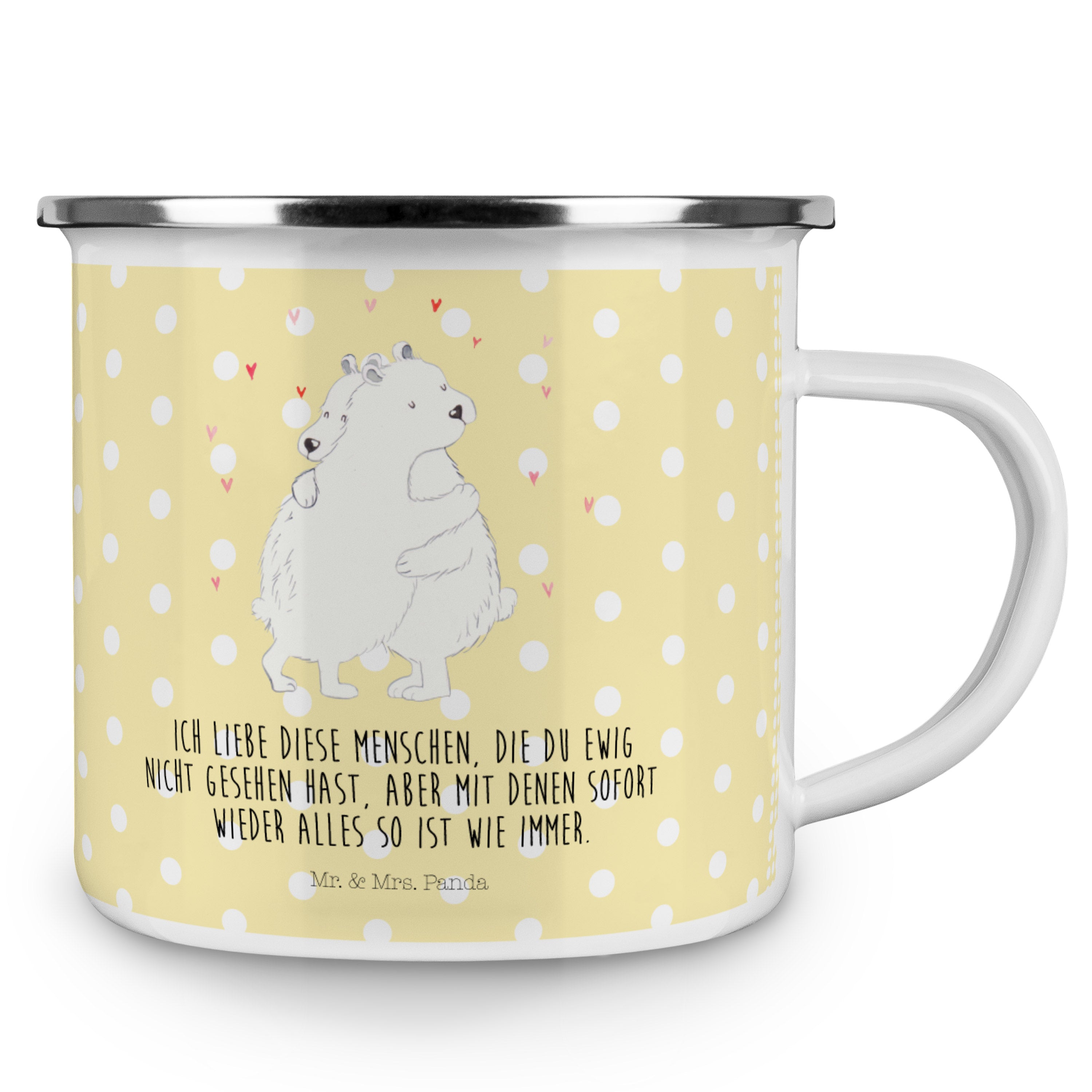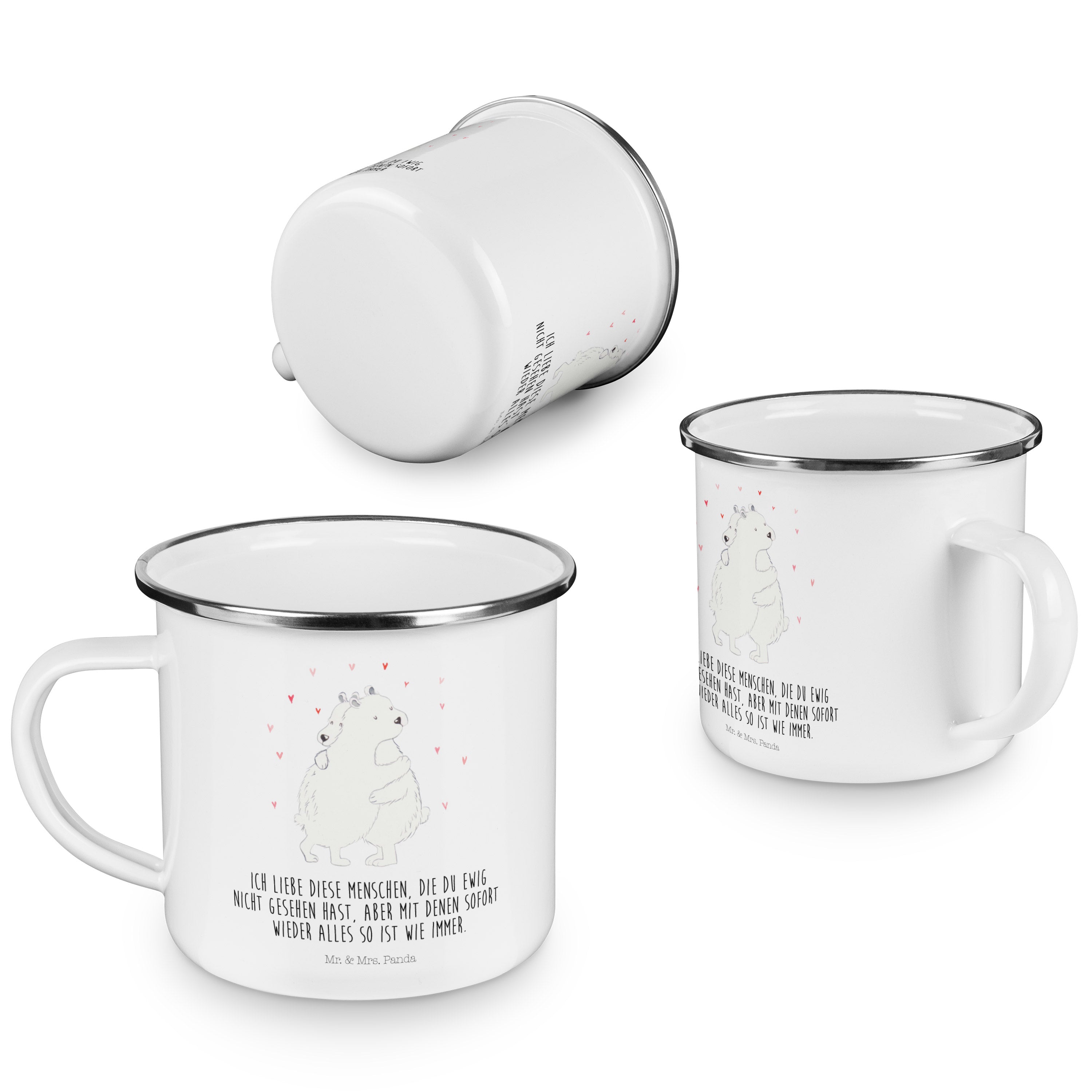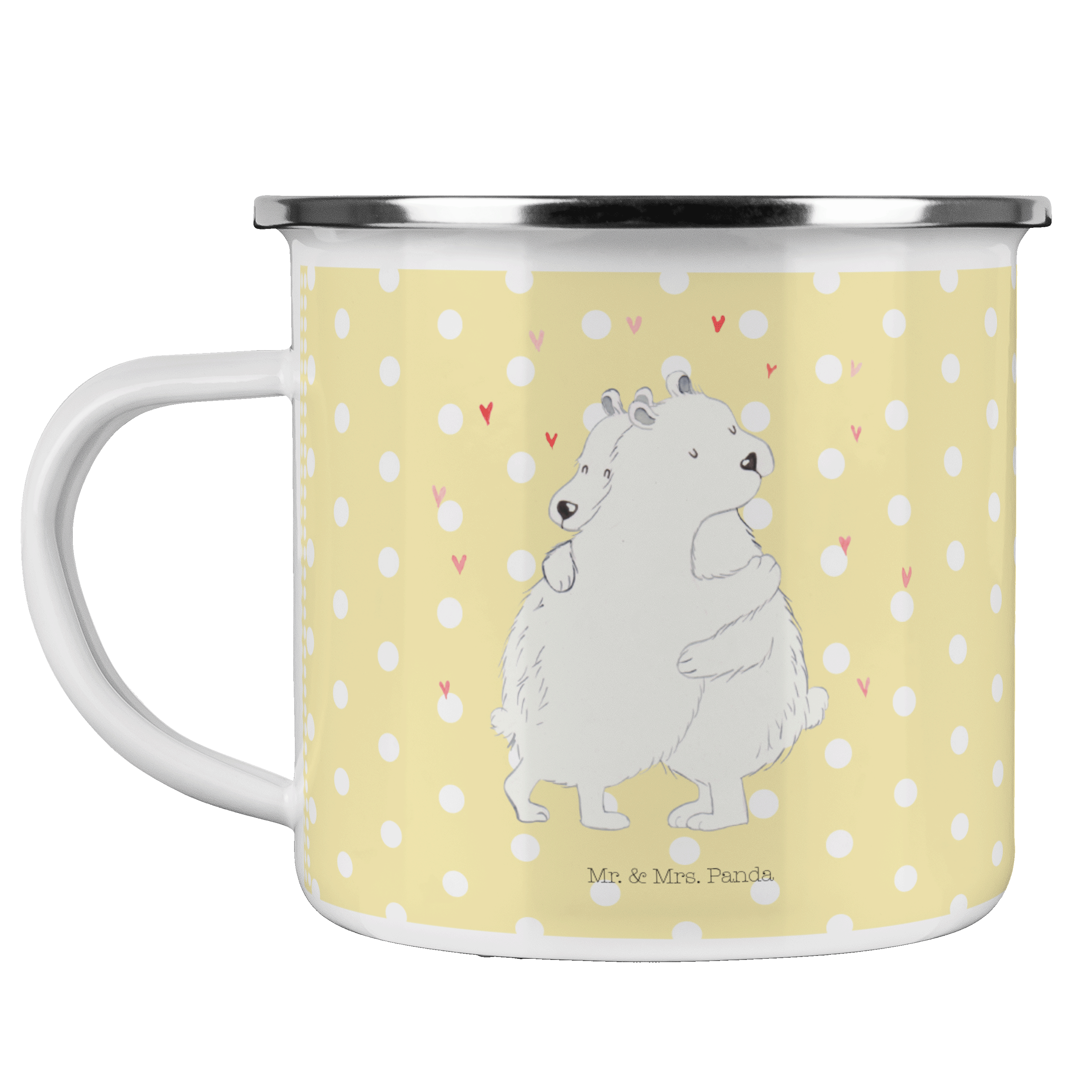 Camping Emaille Tasse Eisbär Umarmen - mit Spruch - Weiß