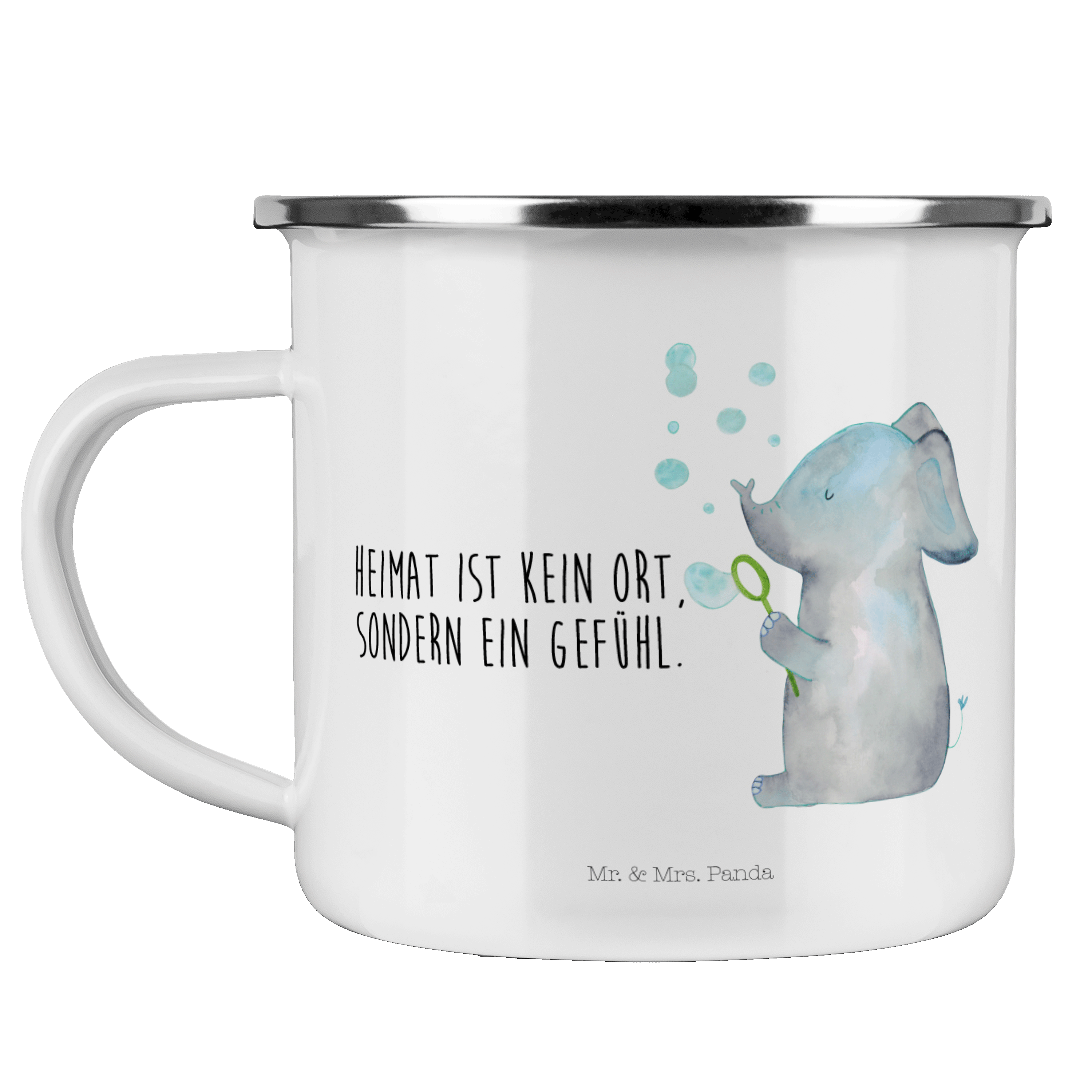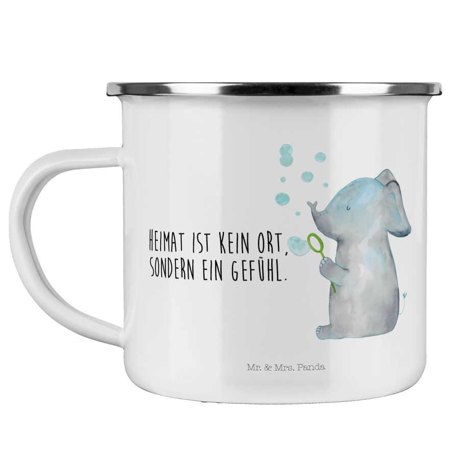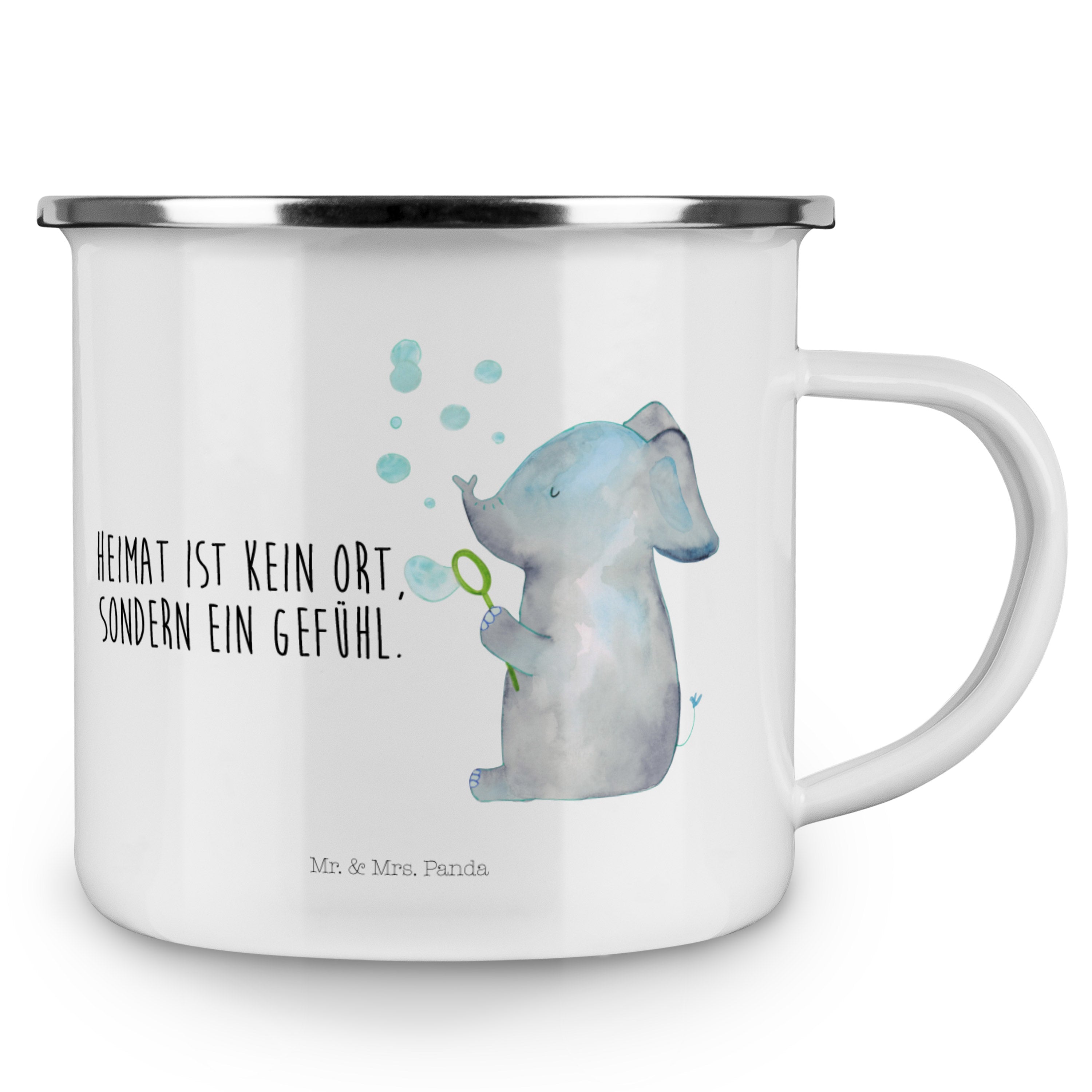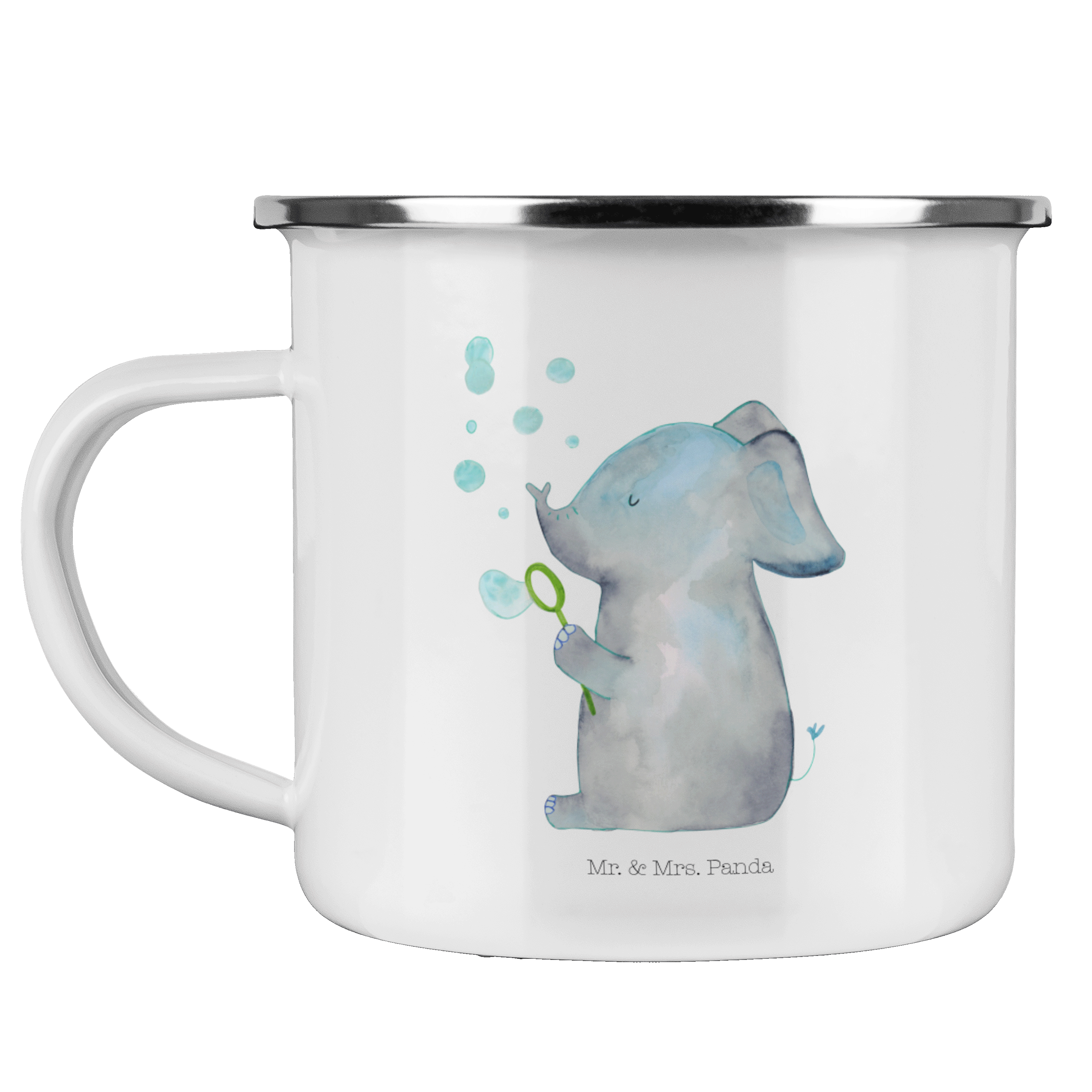 Camping Emaille Tasse Elefant Seifenblasen - mit Spruch - Weiß