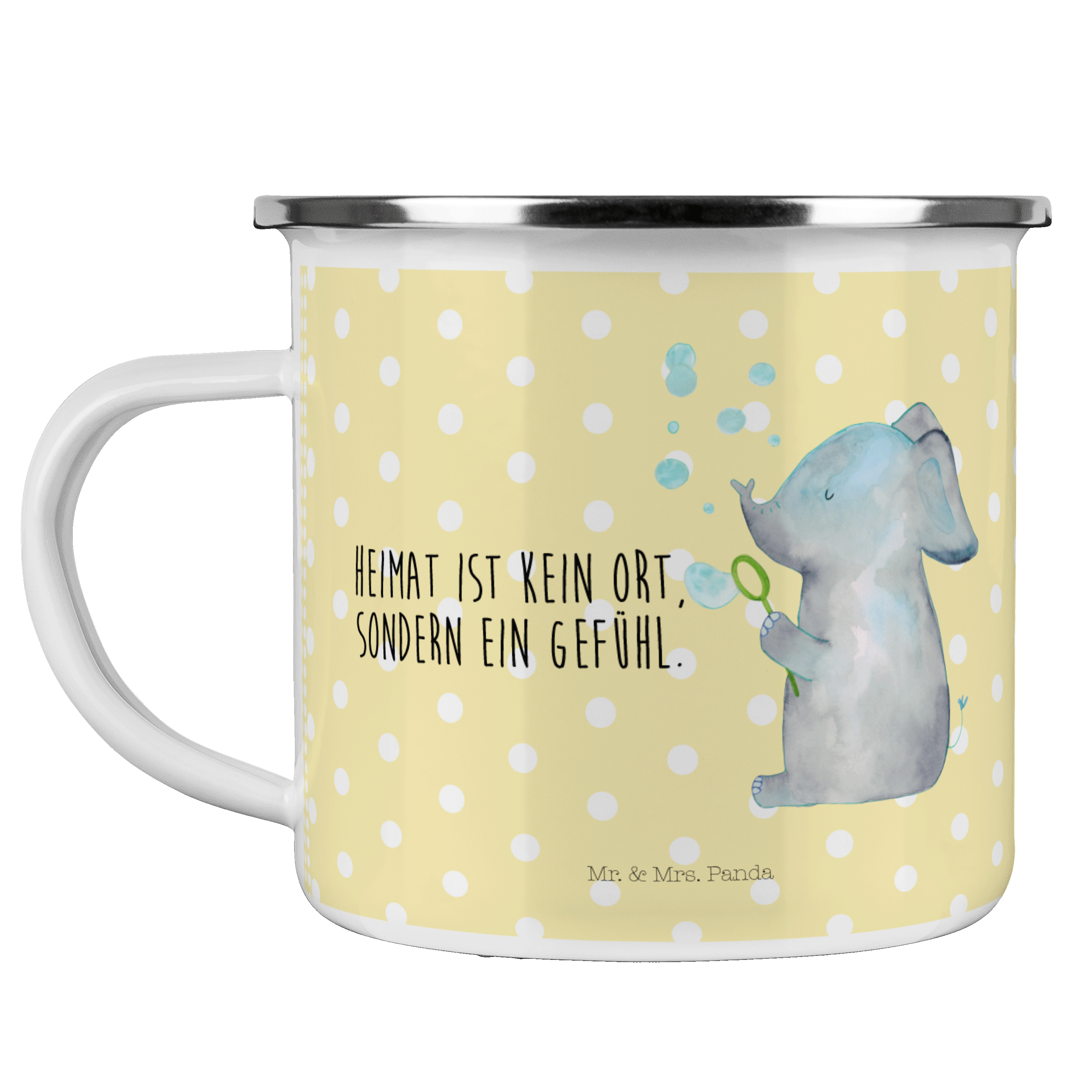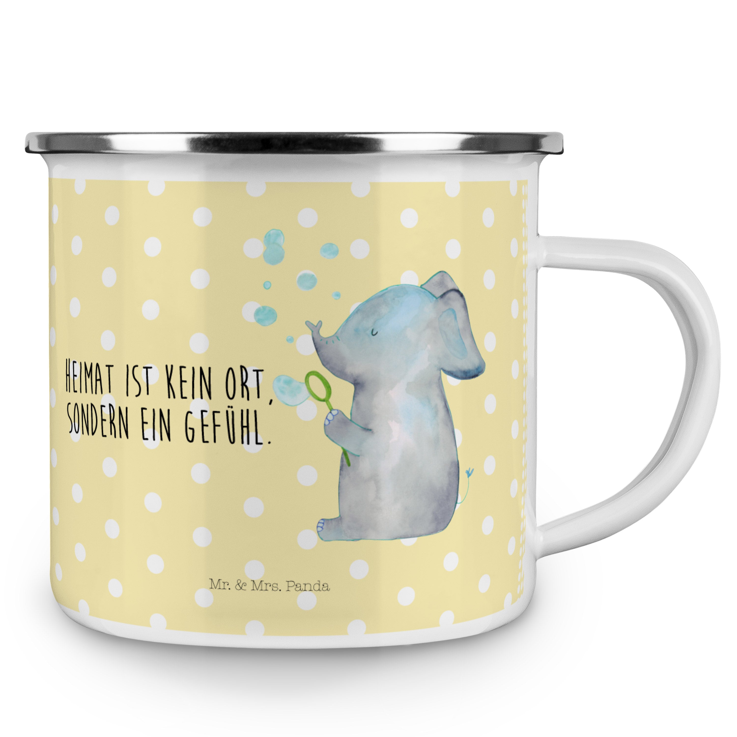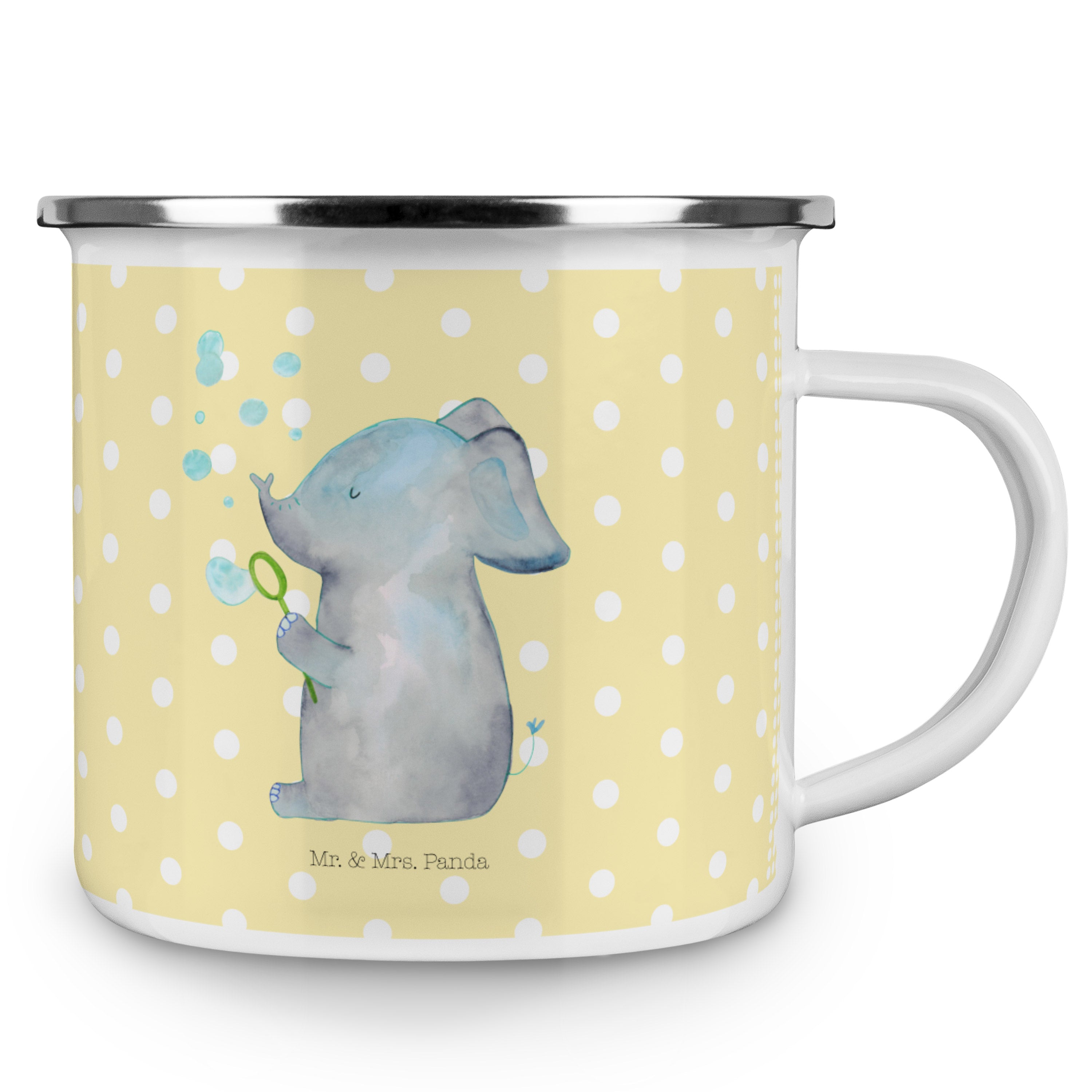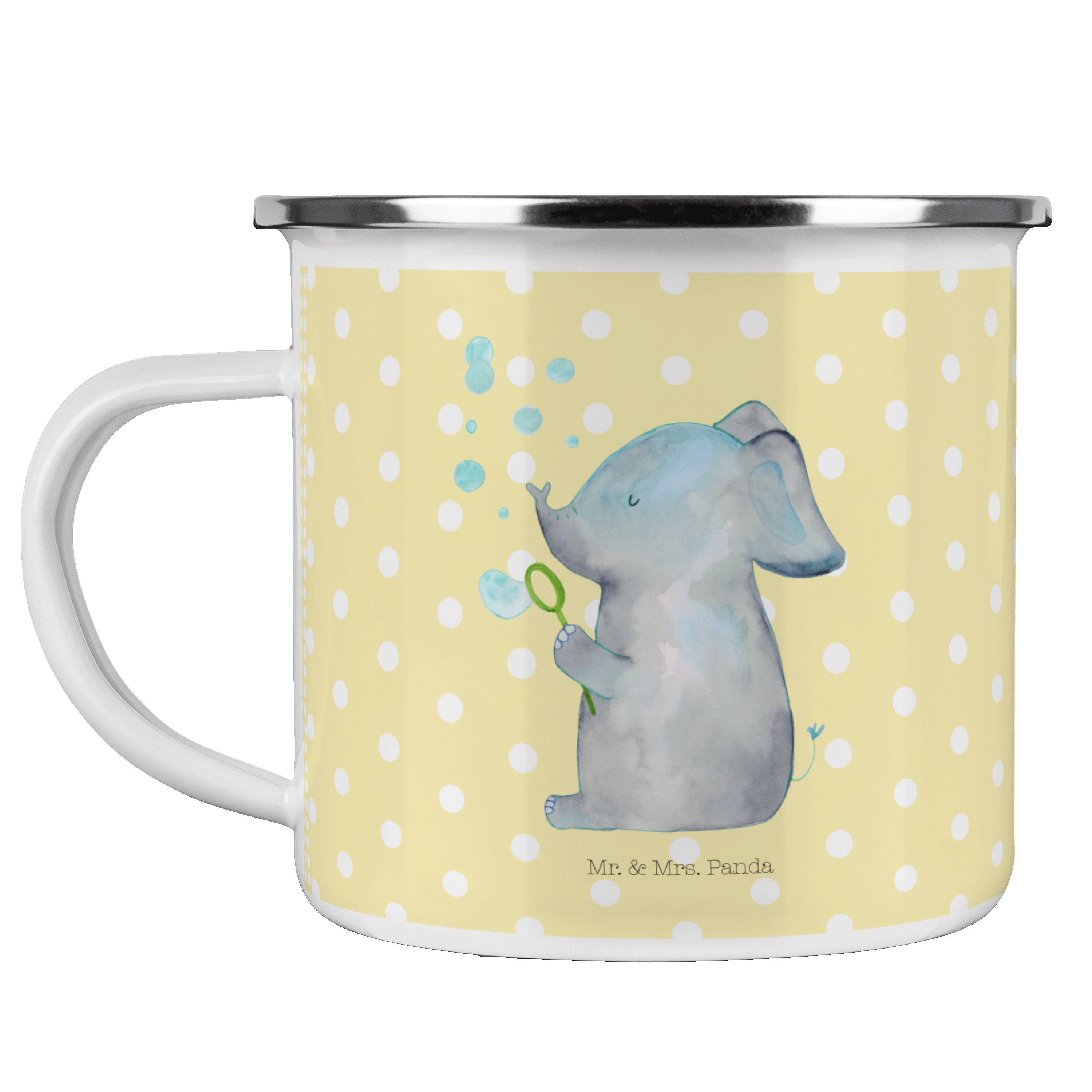 Camping Emaille Tasse Elefant Seifenblasen - mit Spruch - Weiß