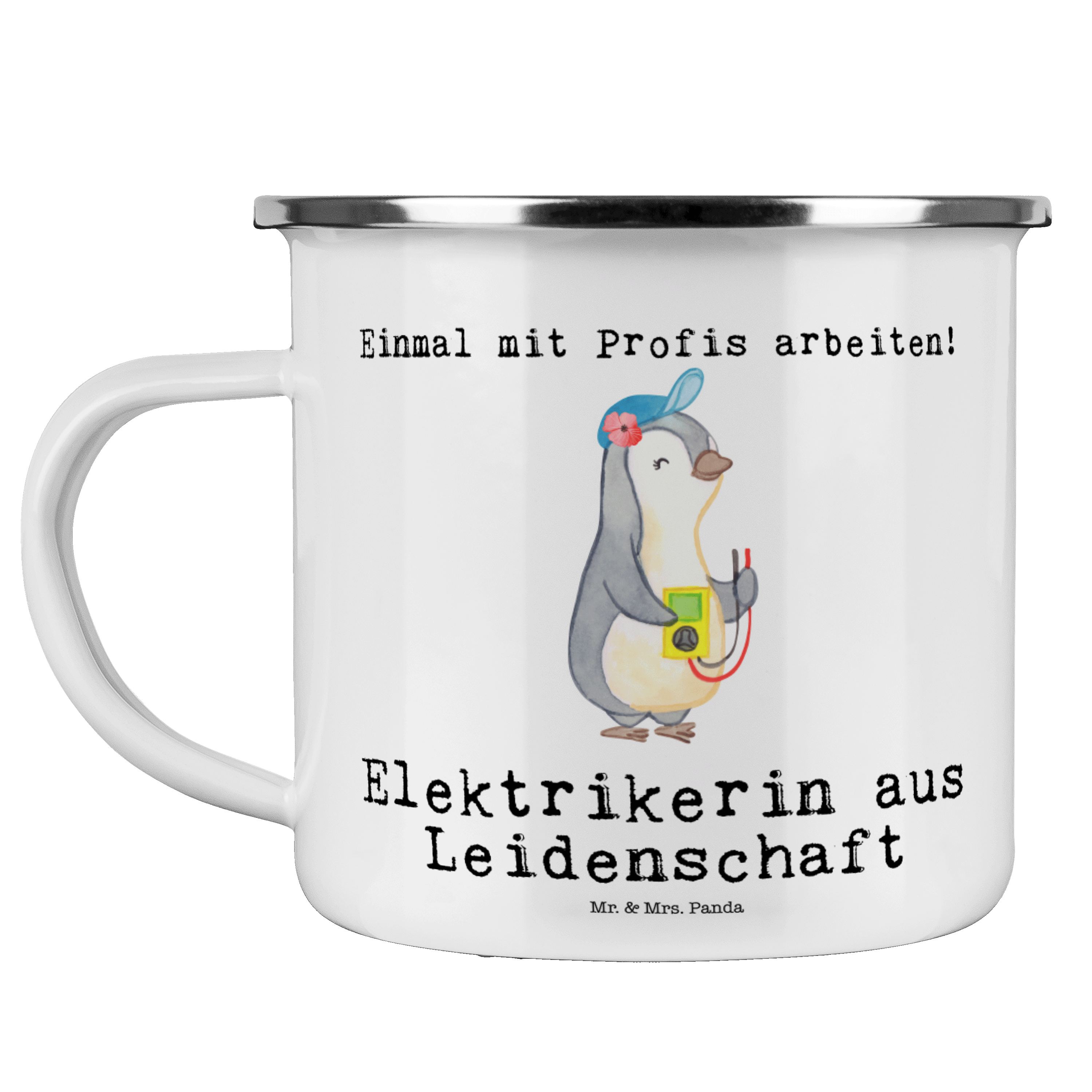 Camping Emaille Tasse Elektrikerin aus Leidenschaft