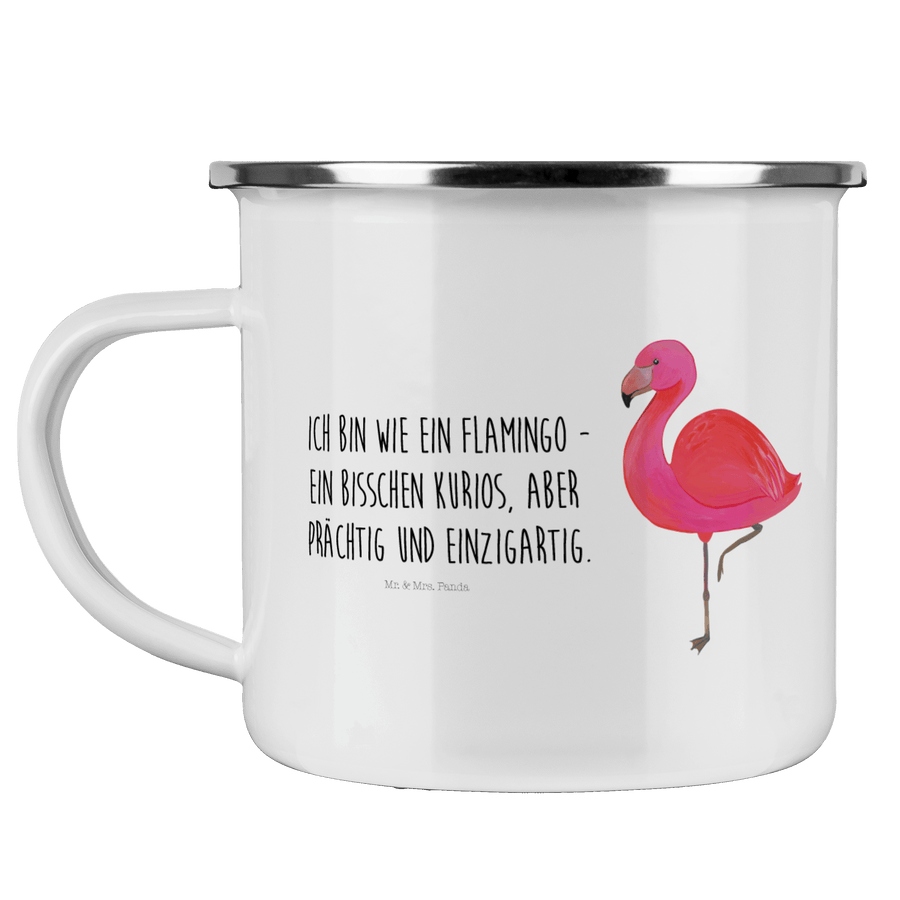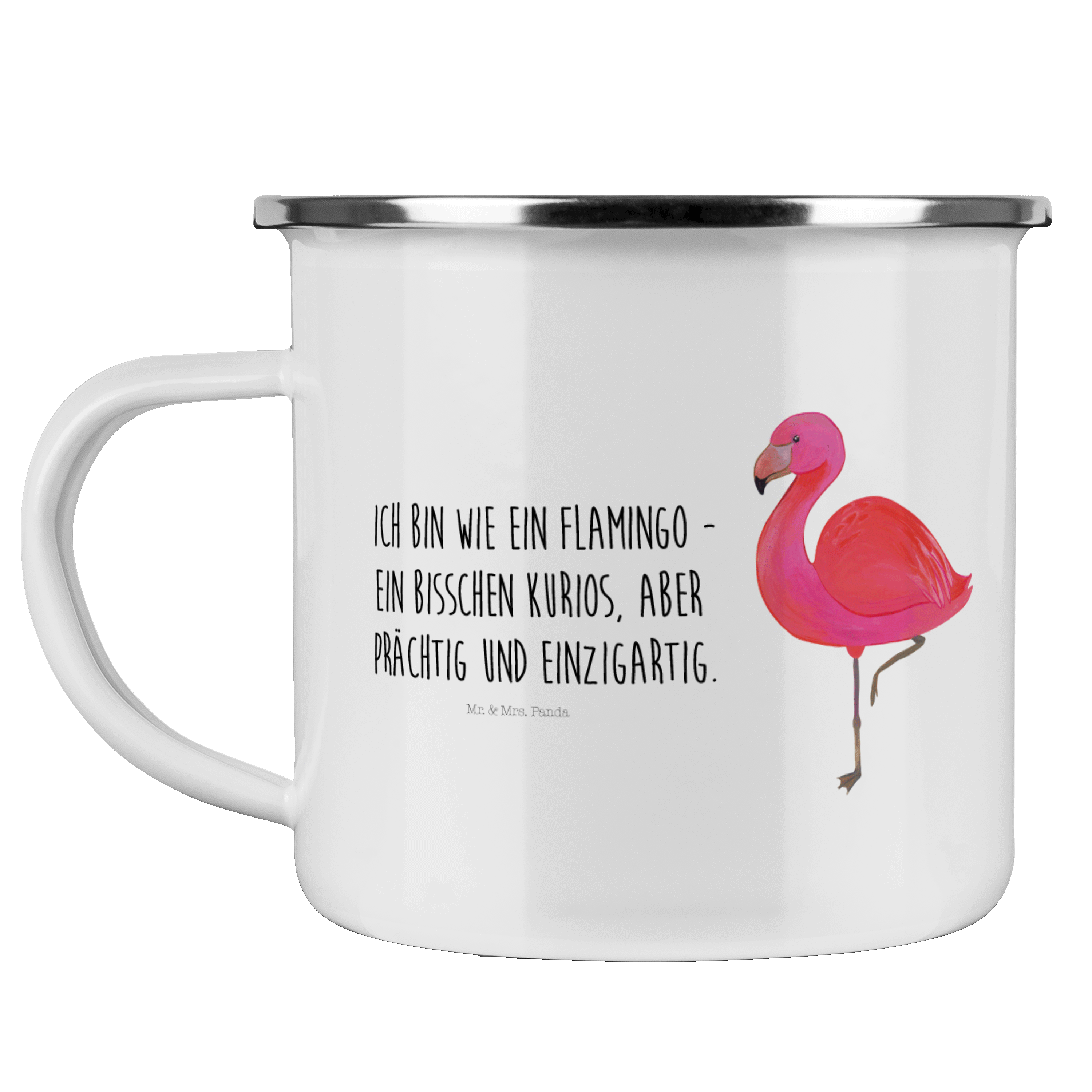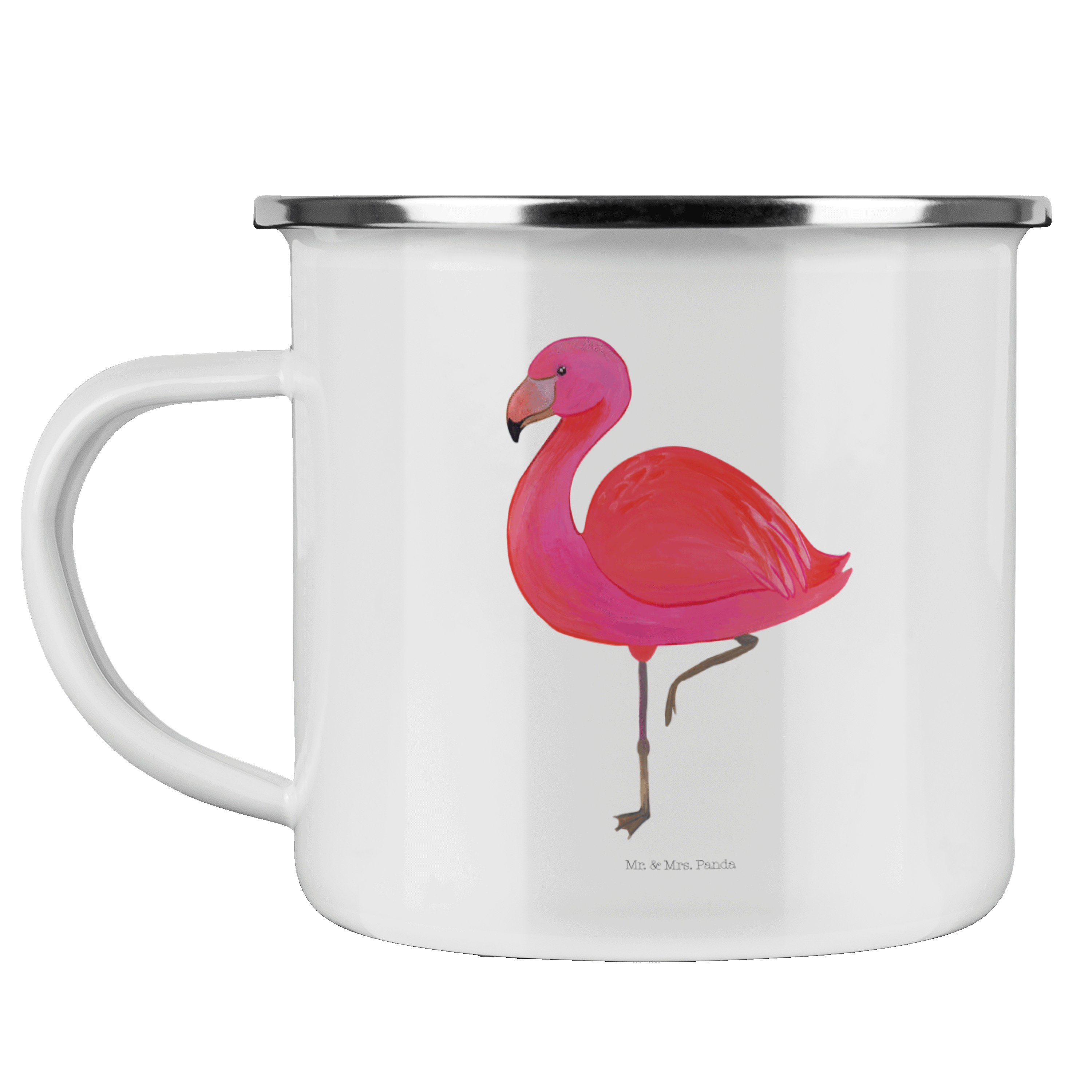 Camping Emaille Tasse Flamingo classic - mit Spruch - Weiß